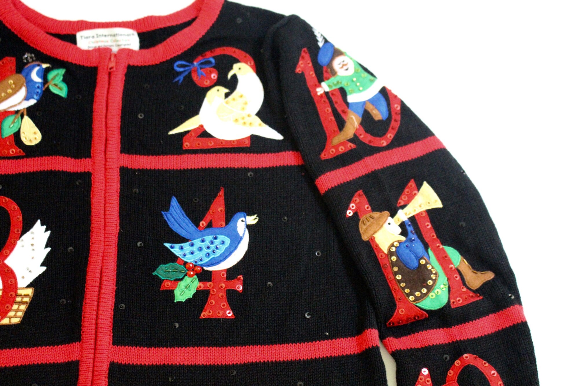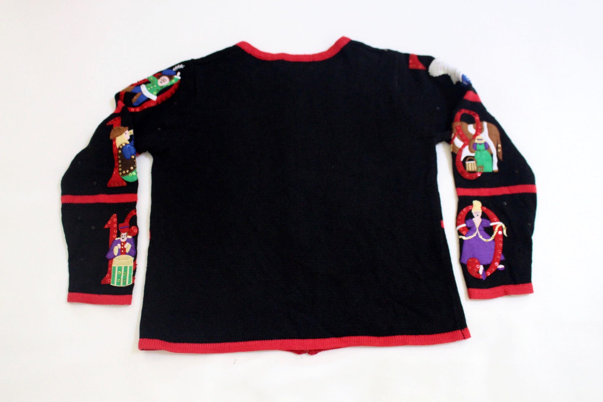 12 Days of Xmas! Large Vintage Ugly Christmas Sweater Black #1372