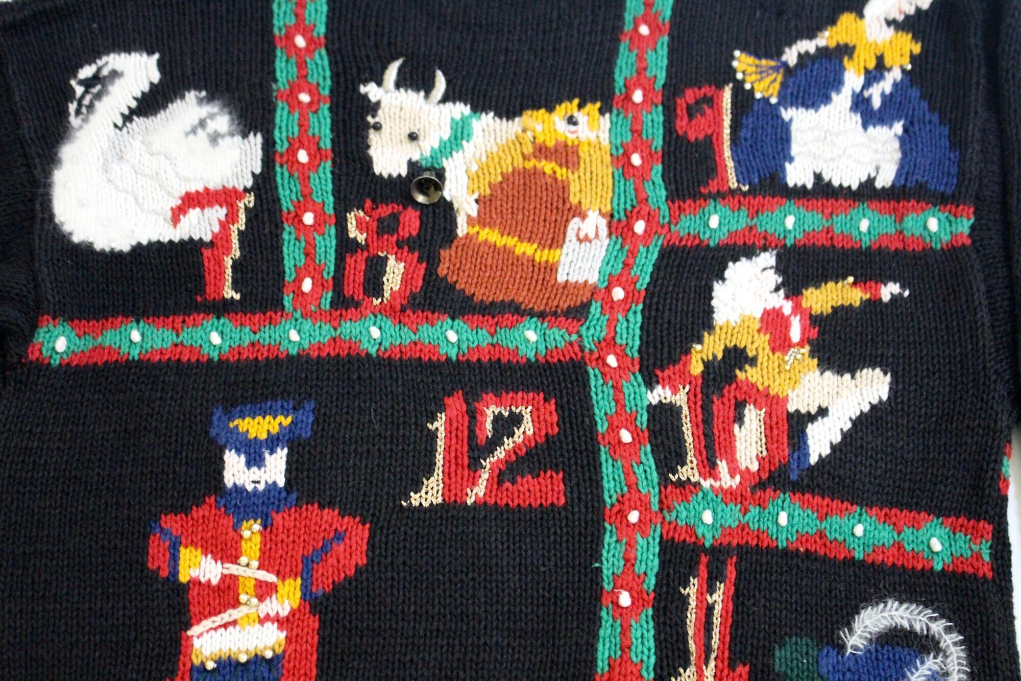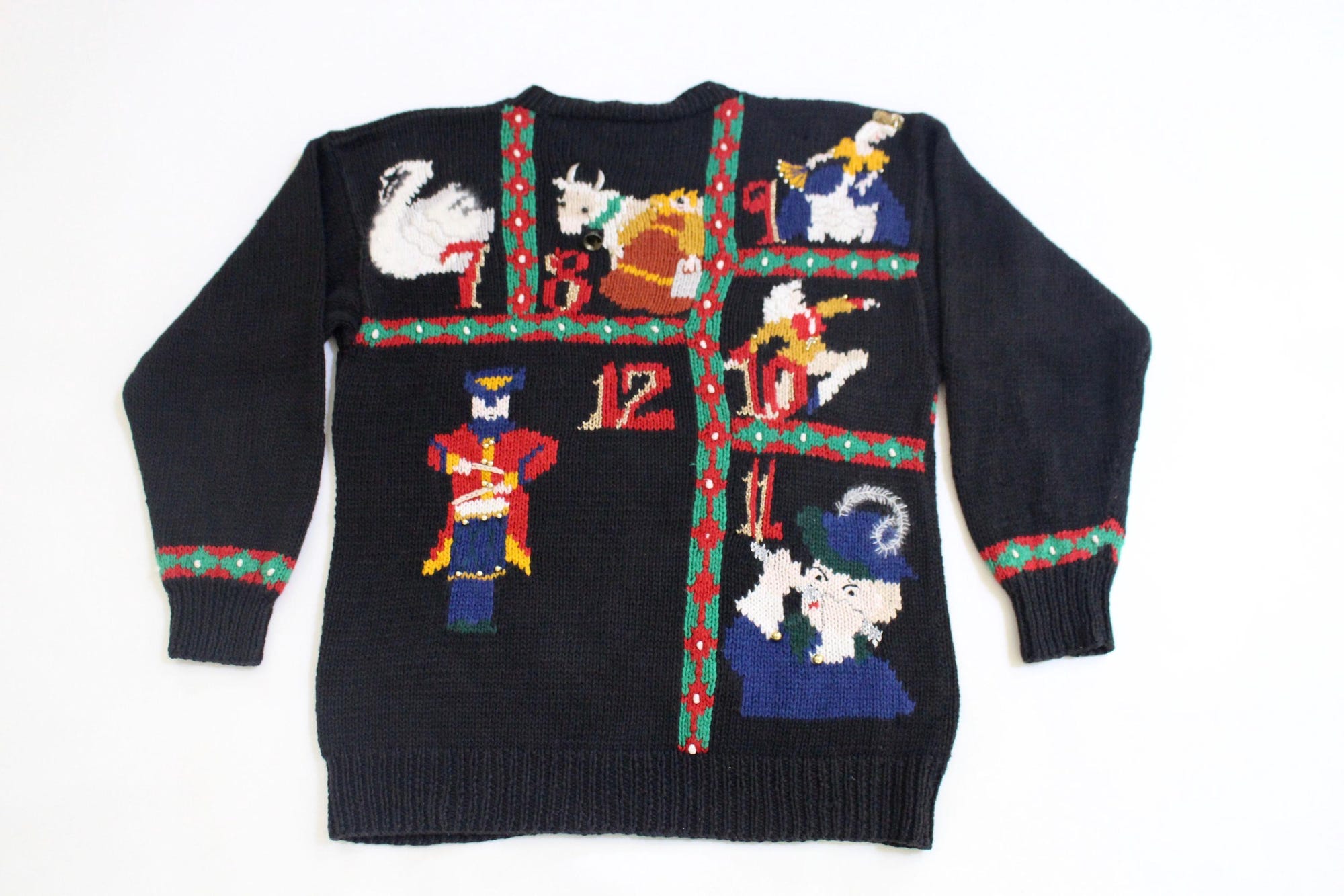 12 Days of Xmas! Small Vintage Ugly Christmas Sweater Black #1371