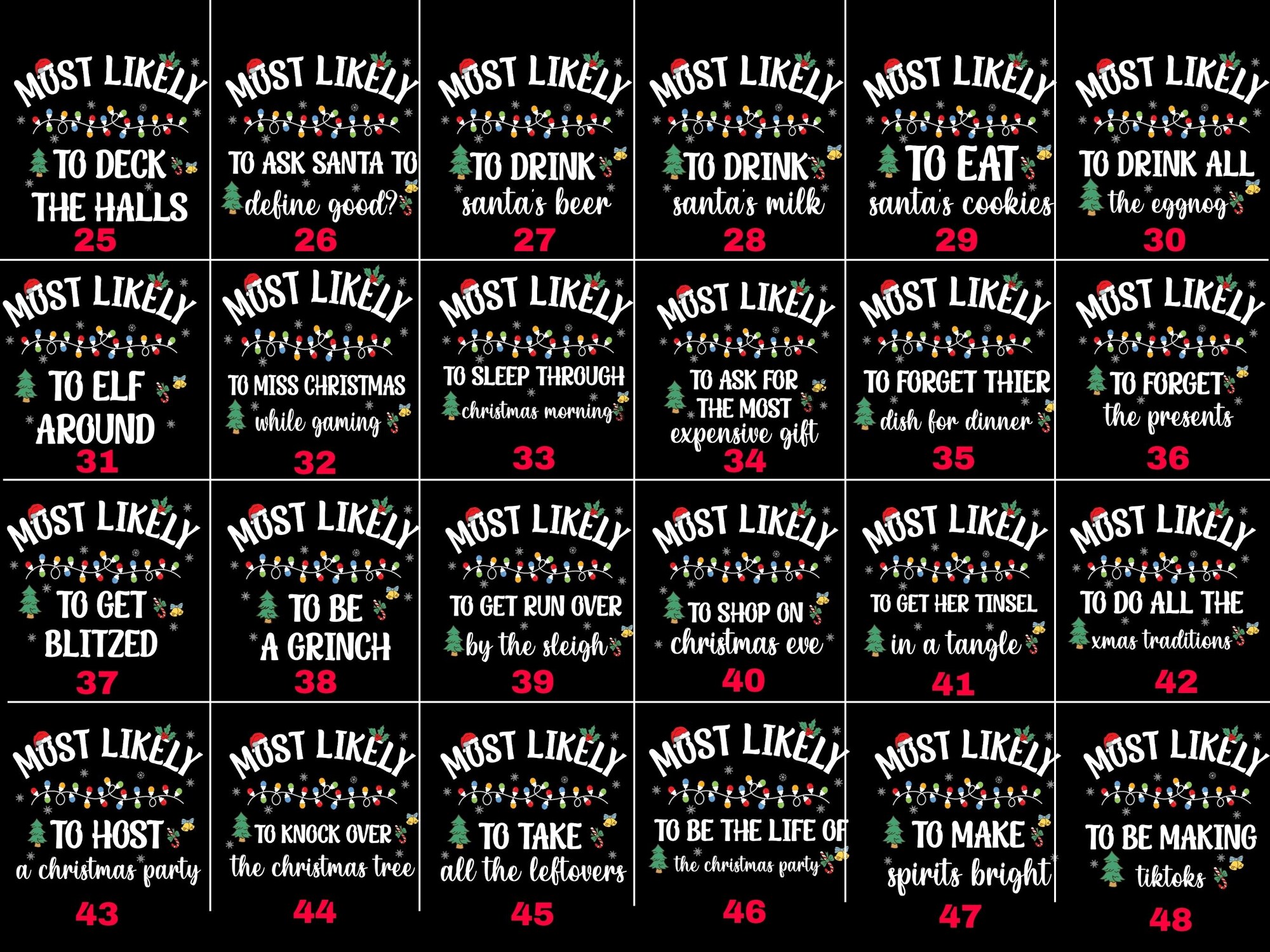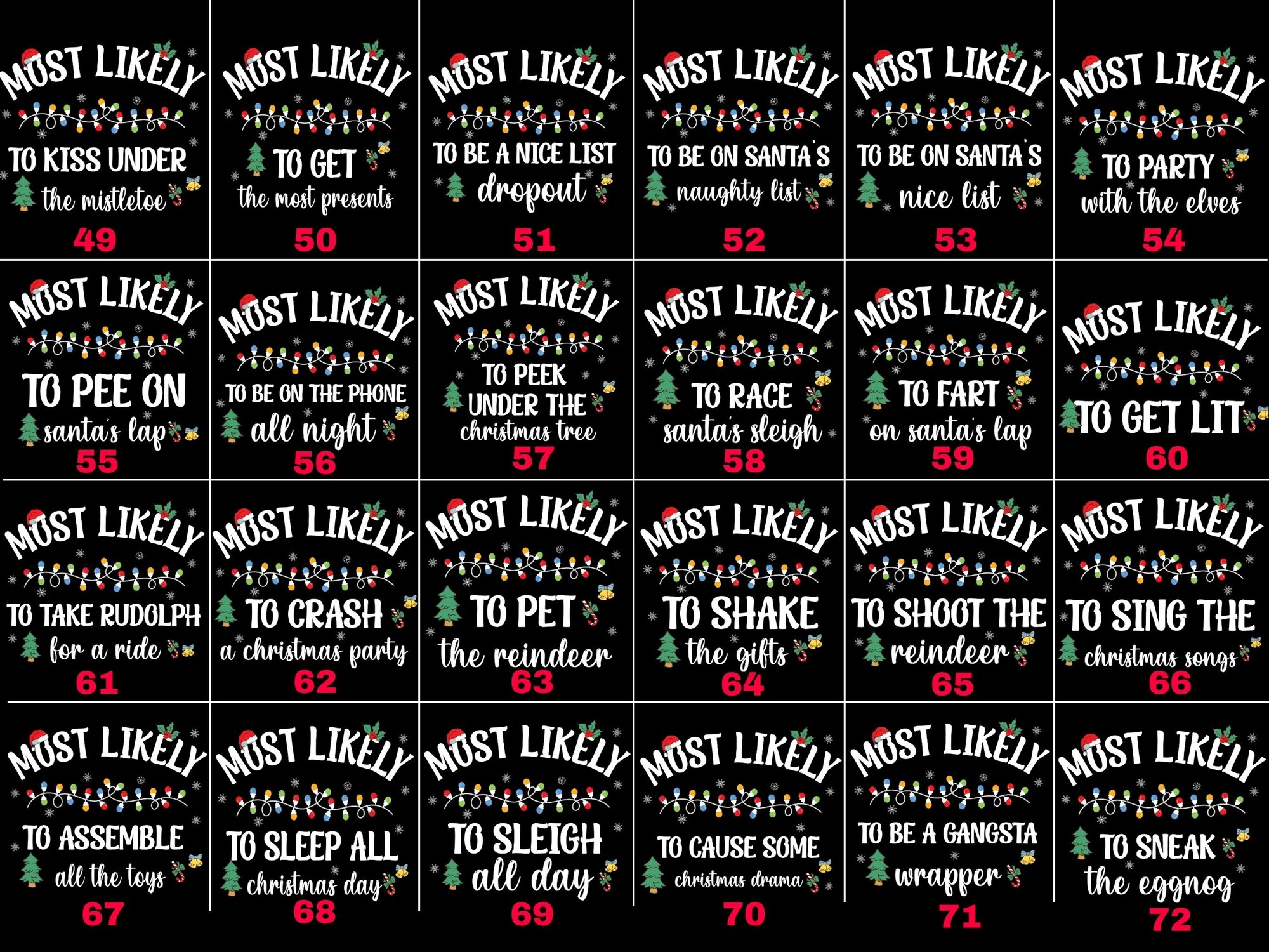 140 Quotes Most Likely to Christmas Shirts, Funny Christmas T-Shirts, Matching Family Christmas Shirt, Xmas Gift Family Pajamas