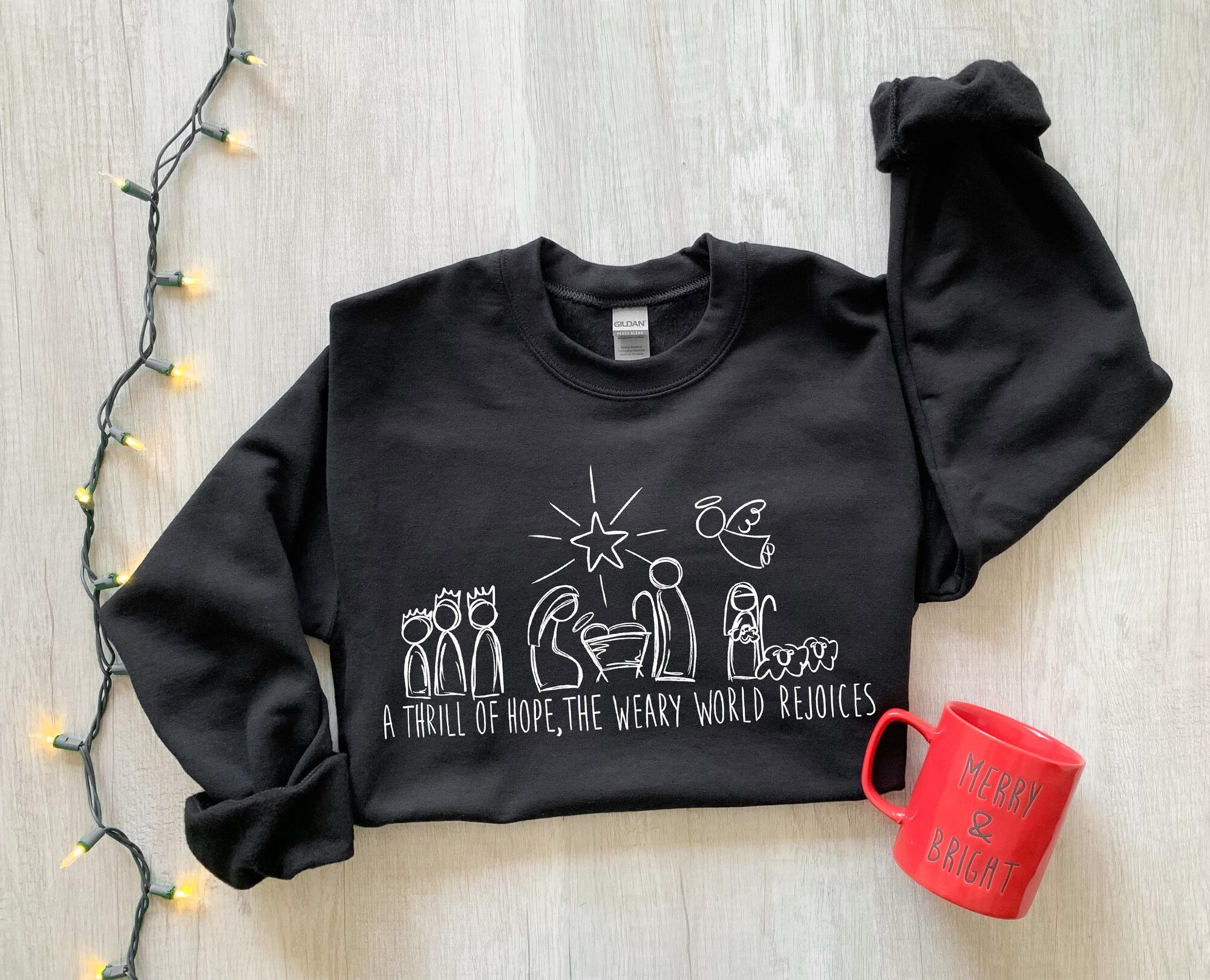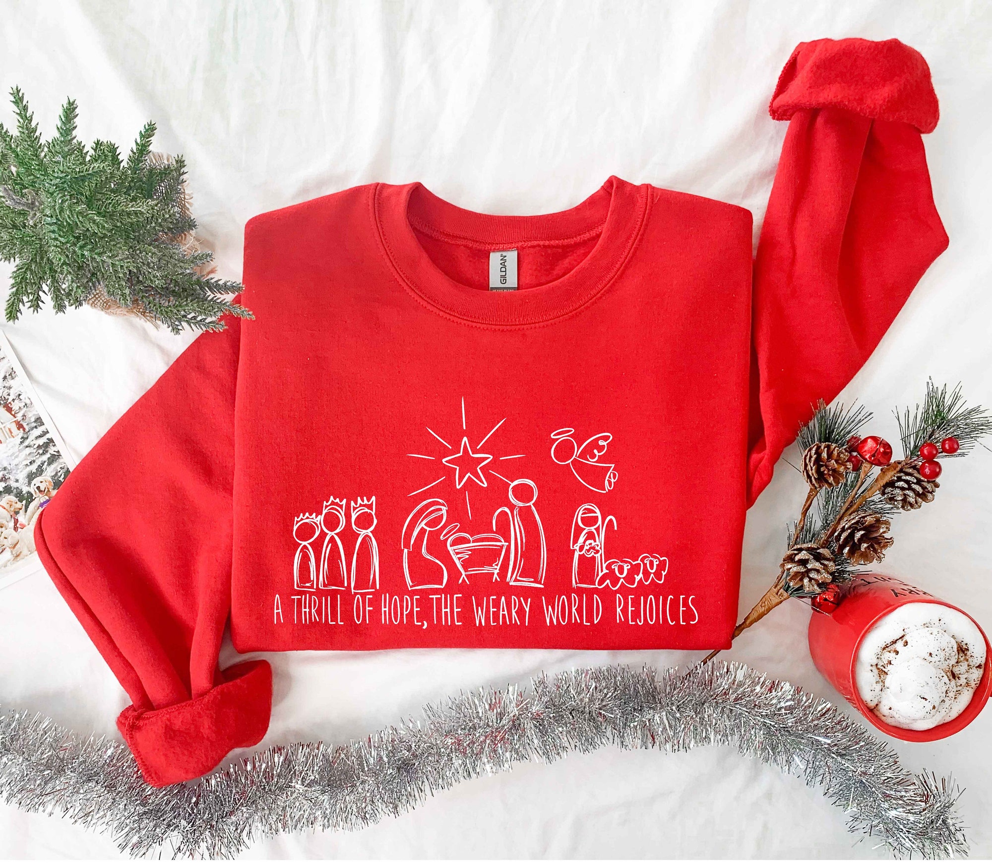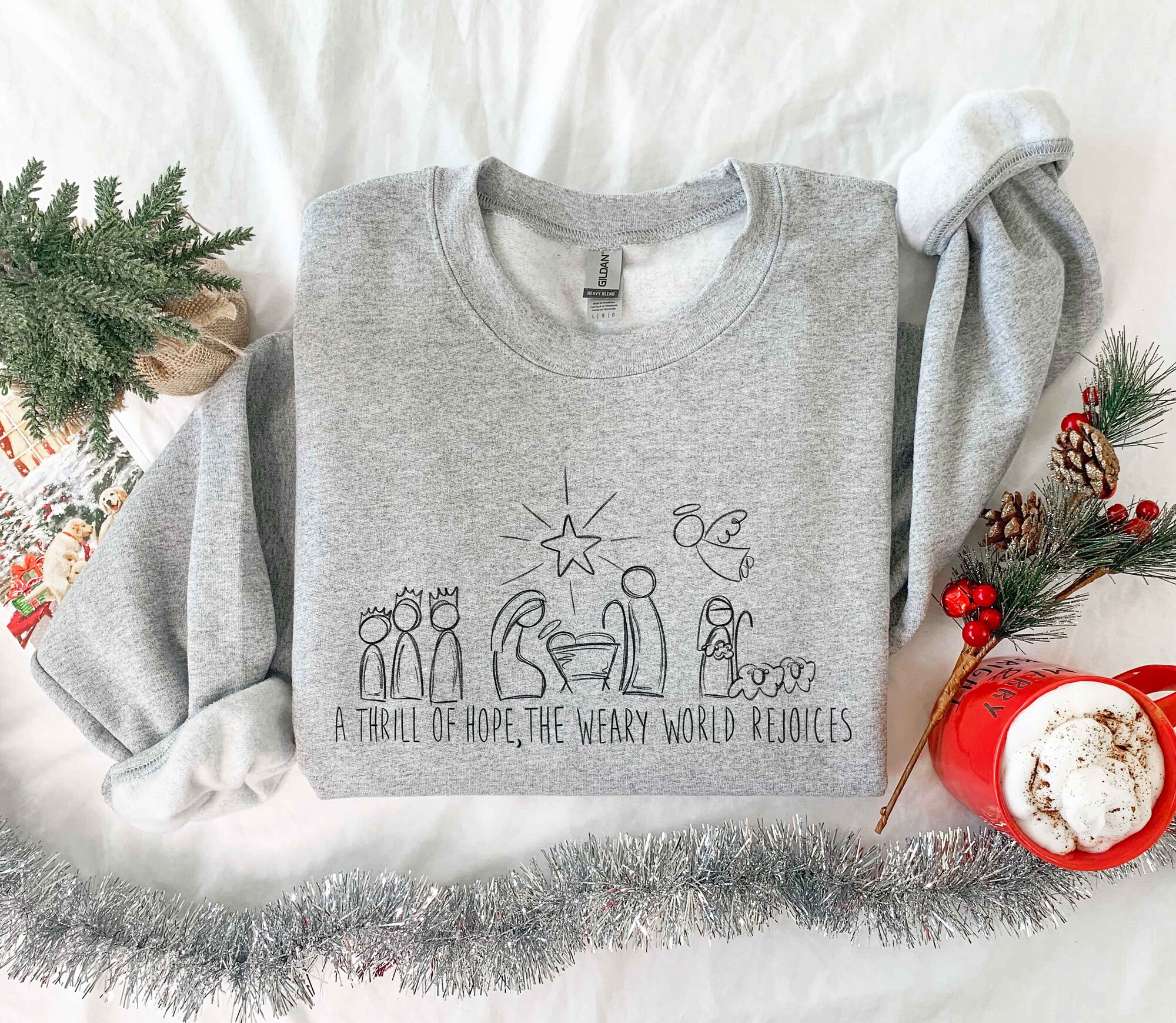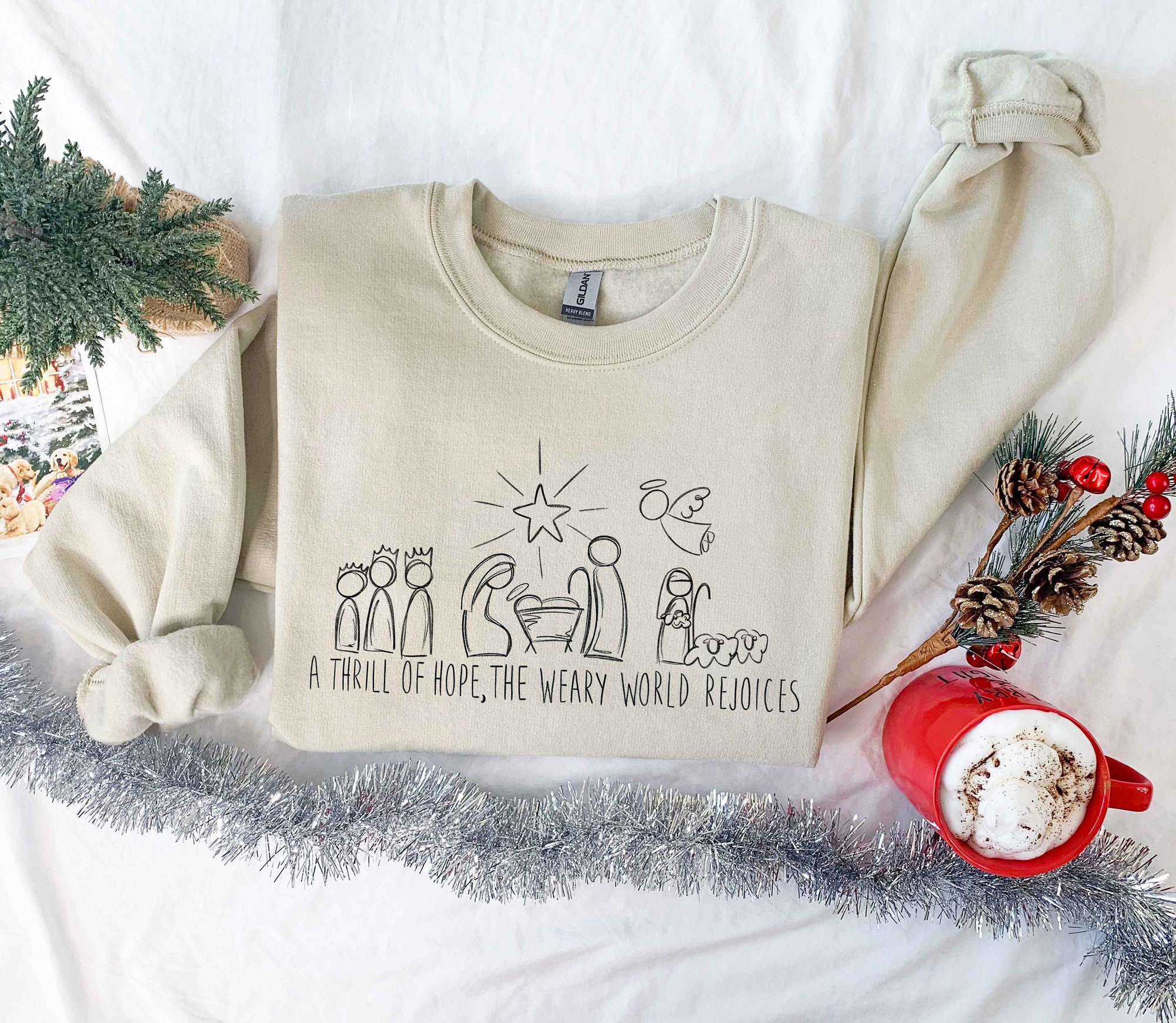 A Thrill Of Hope The Weary World Rejoices Sweatshirt Gift For Christians, Religious Christmas Gift, Nativity Hoodie,Jesus Is The Reason Gift
