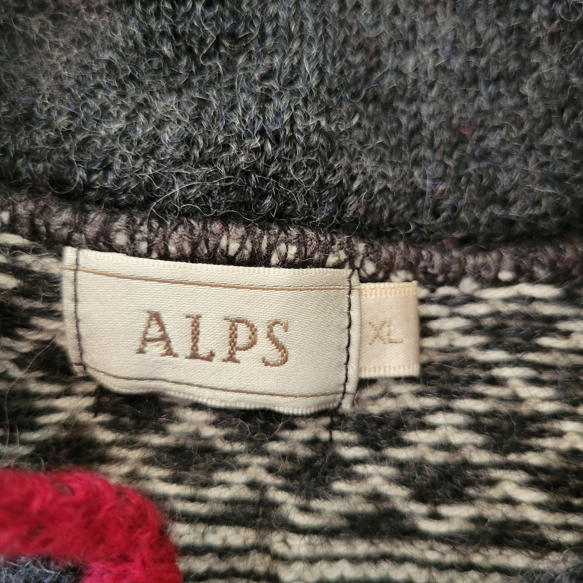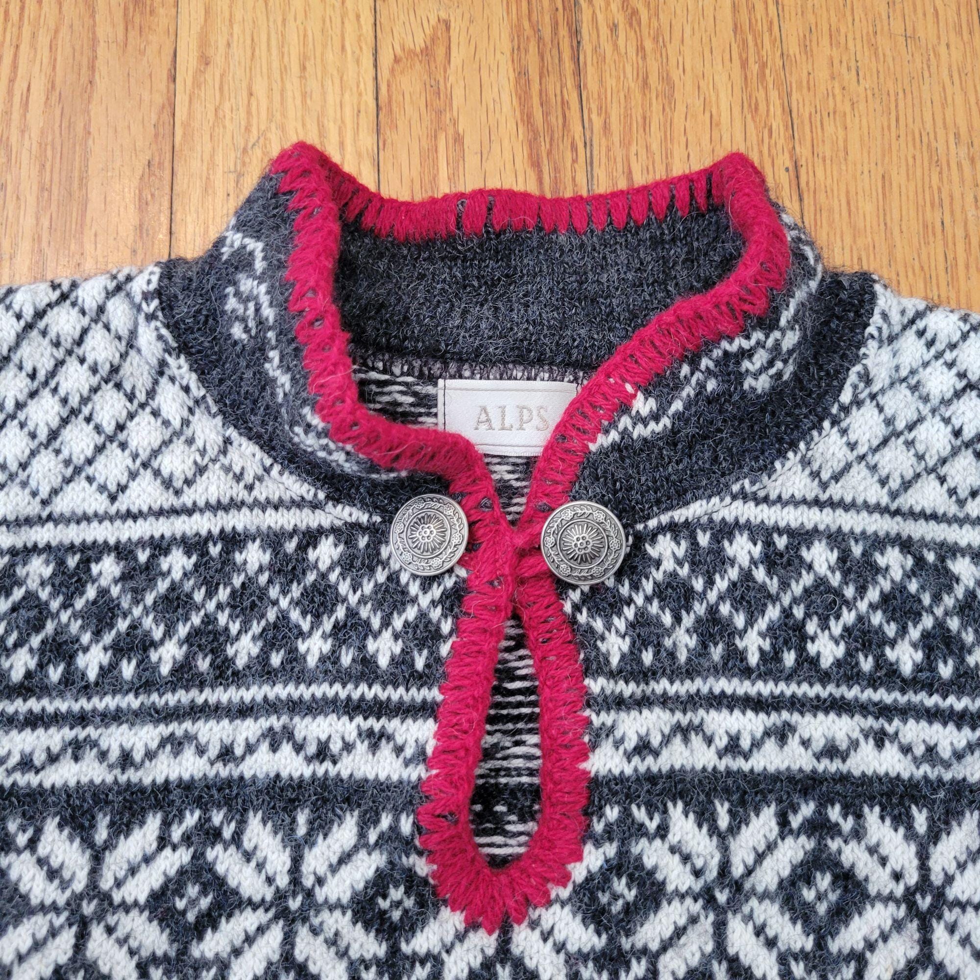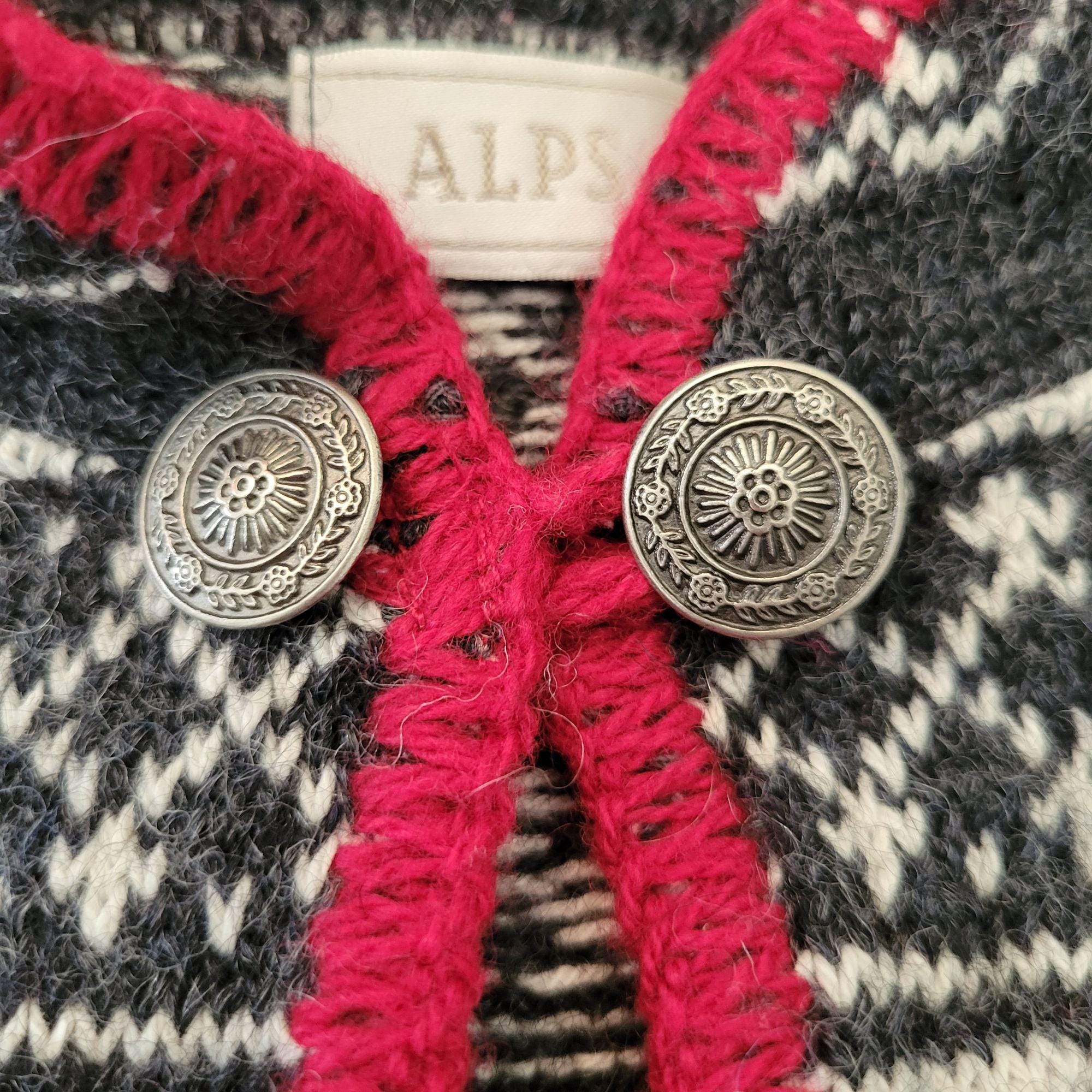 Alps XL Wool Nordic Sweater Metal Buttons Black White Gray Red Y2K 90s