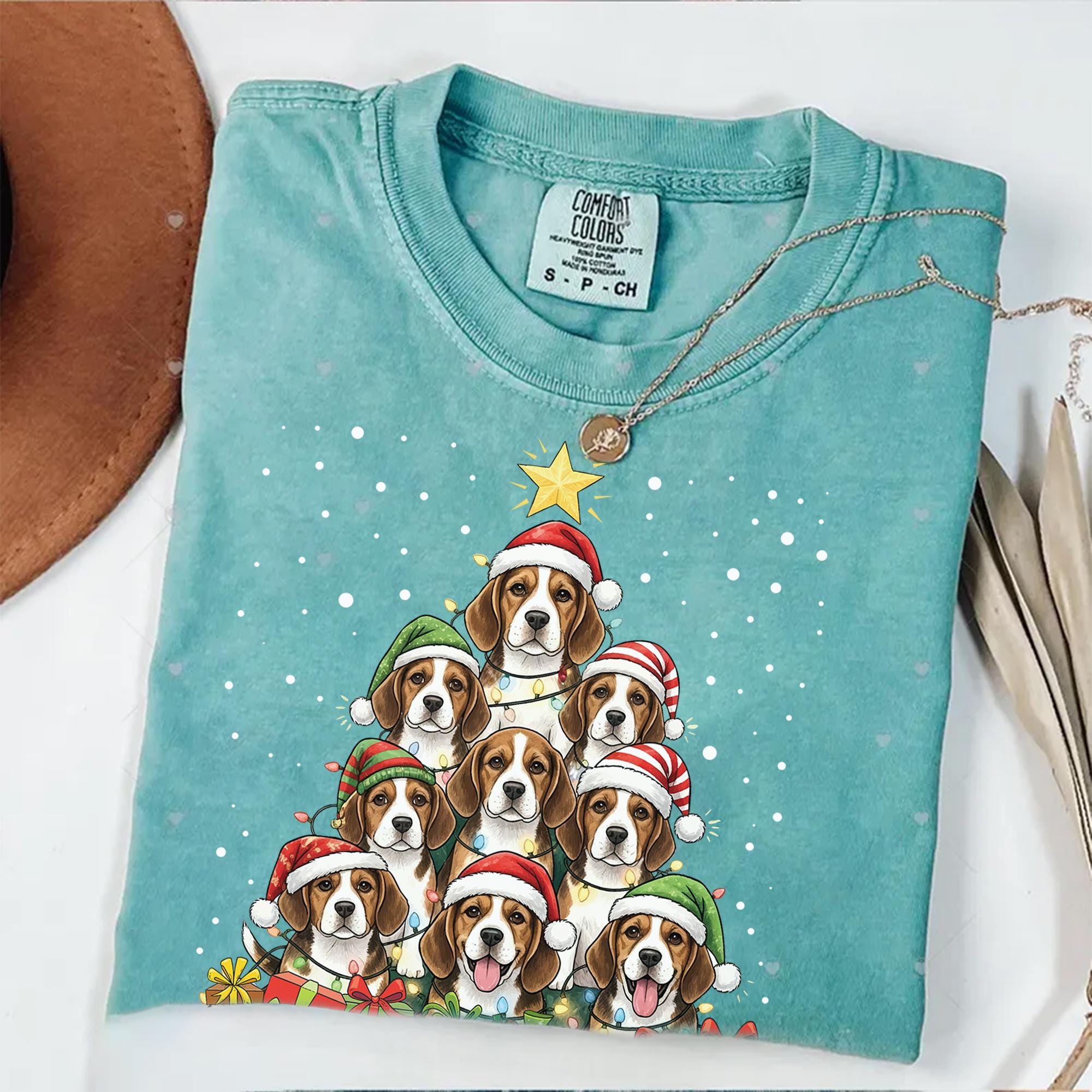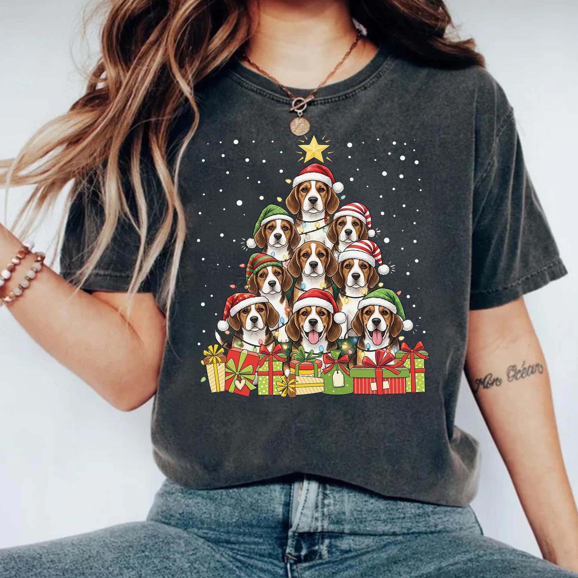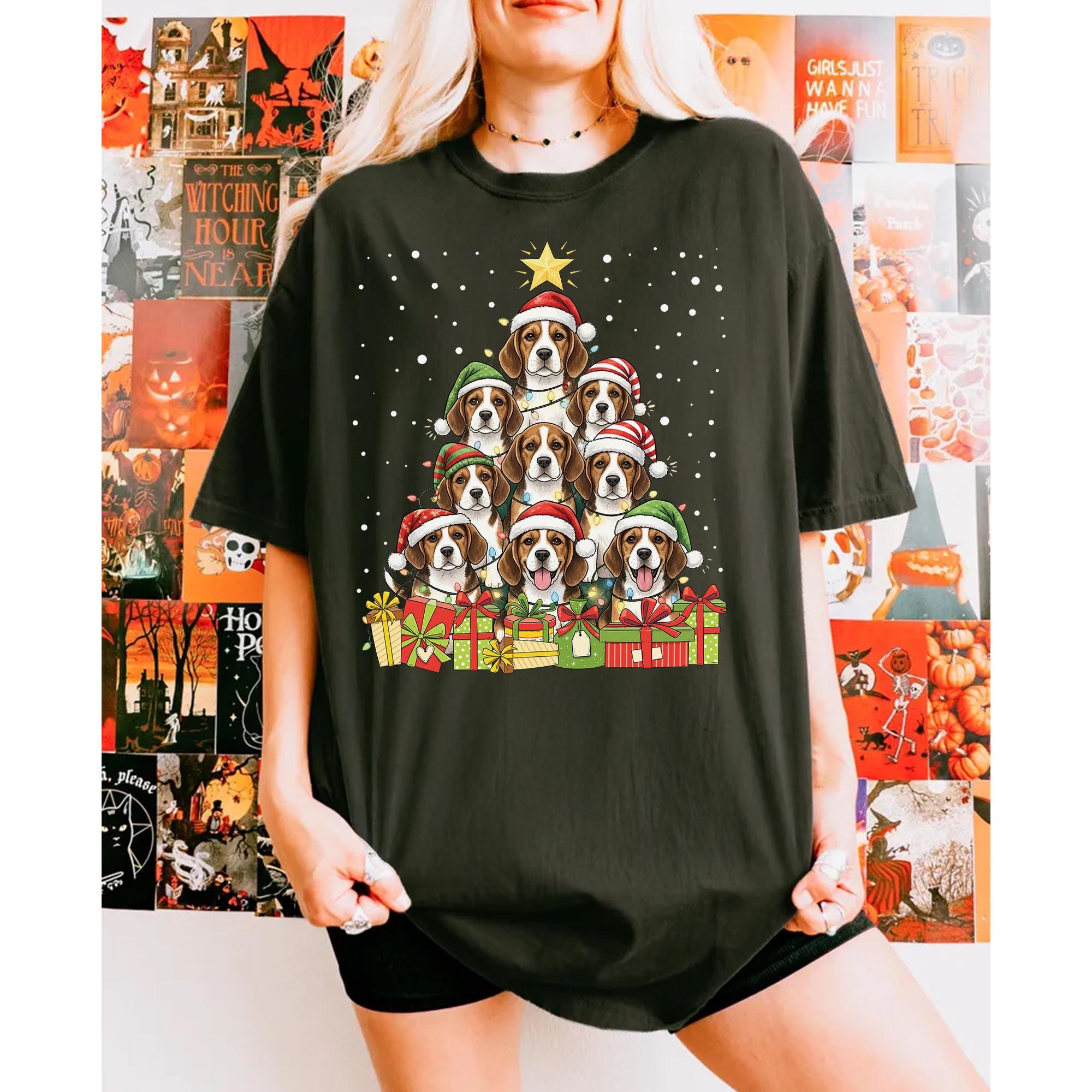 Beagle Christmas Tree Shirt, Beagle With Santa Hat Tees, Beagle Mom Shirt, Christmas Dogs Shirt, Merry Christmas Shirt Gift For Beagle Lover