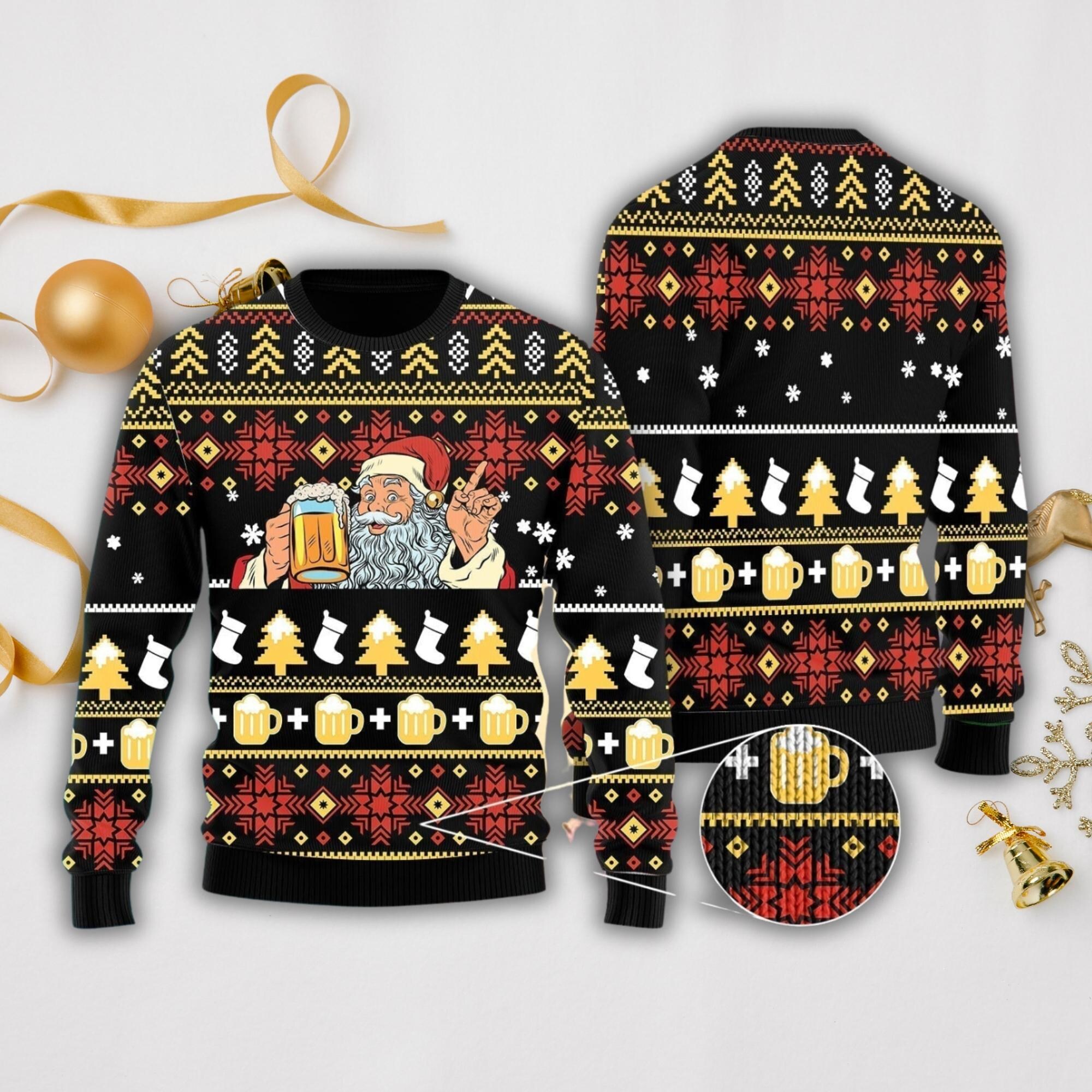 Beer Christmas Ugly Sweater, Funny Santa Holiday Sweater, Drinking Ugly Xmas Sweater, Dad Christmas Gift, Beer Sweater For Party