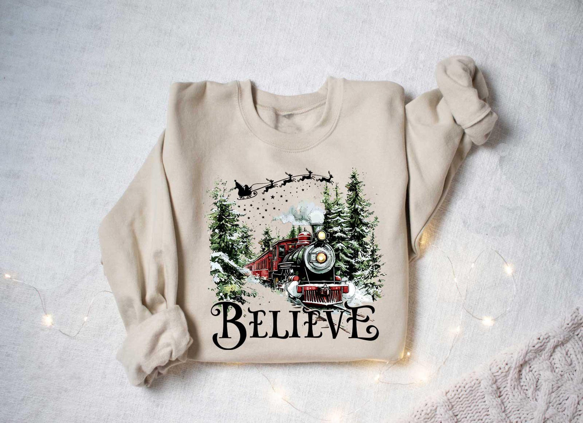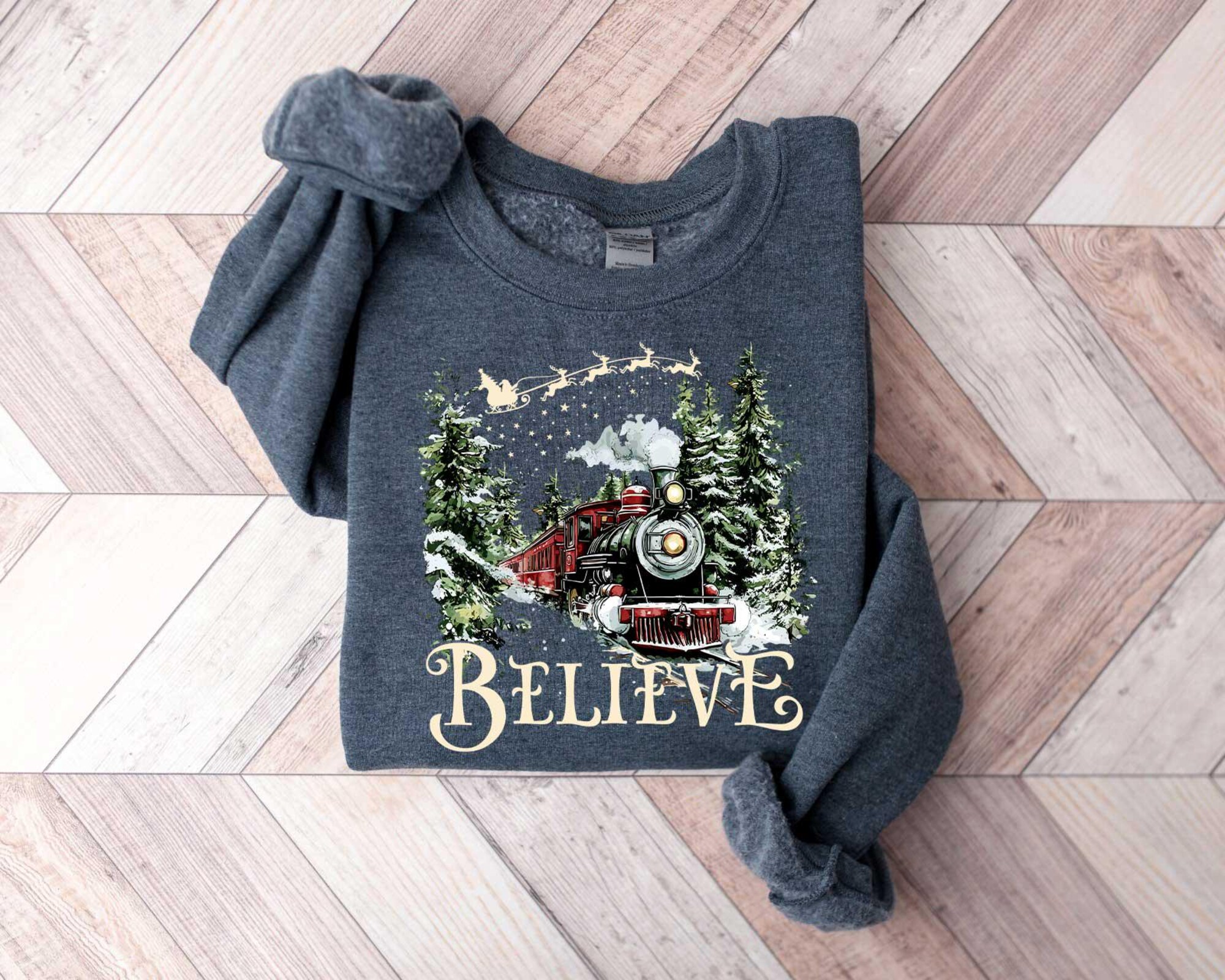 Believe North Pole Train Sweatshirt, Christmas Train To North Pole Sweatshirt, Christmas Believe Sweatshirt, Christmas Gift, Christmas Shirt