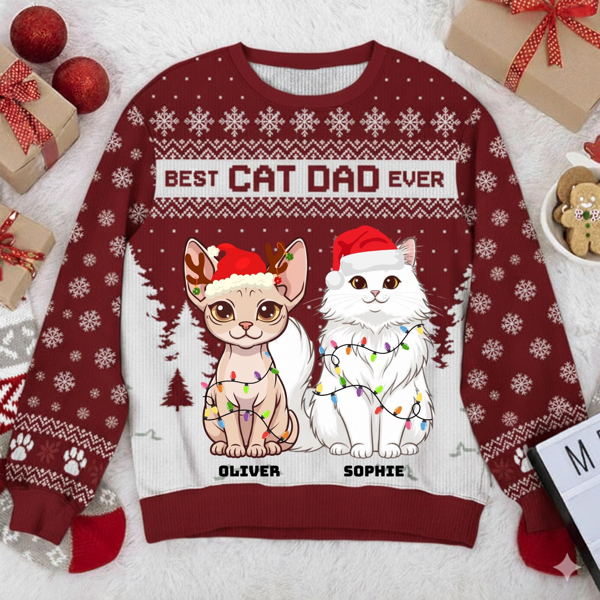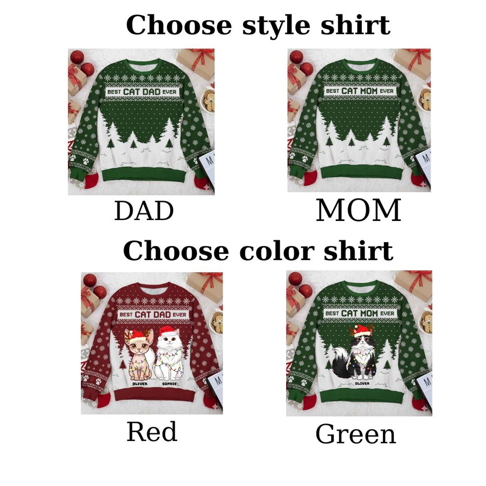 Best Cat Mom Dad Ever Ugly Christmas Sweater Personalized Pet Name Jumper Custom Cat Owner Gift Xmas Party Outfit Feline Lover Top