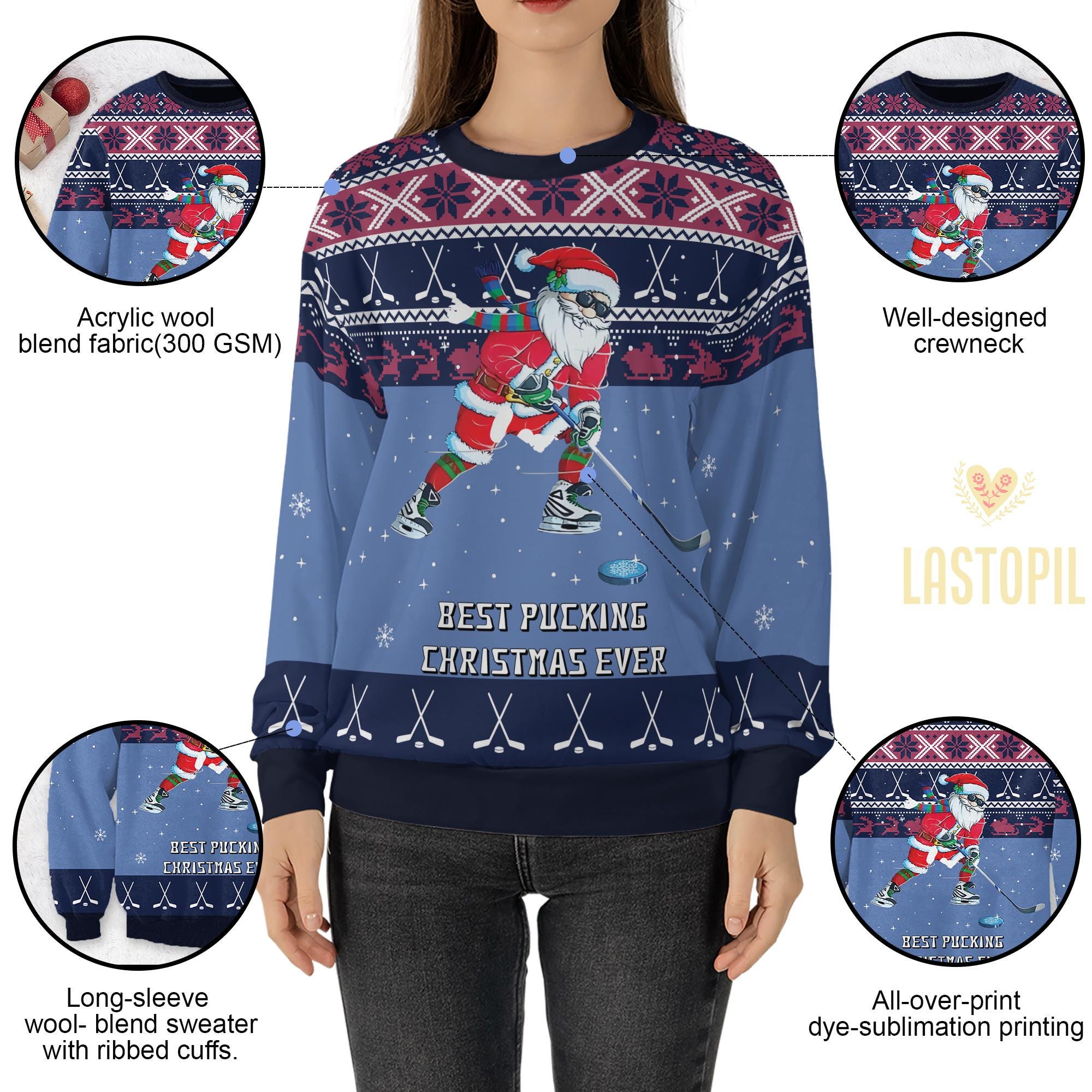Best Pucking Christmas Ever Ugly Sweater Santa Claus Ugly Christmas Sweater Hockey Sweater Hockey Player Pullover Merry Christmas Gift