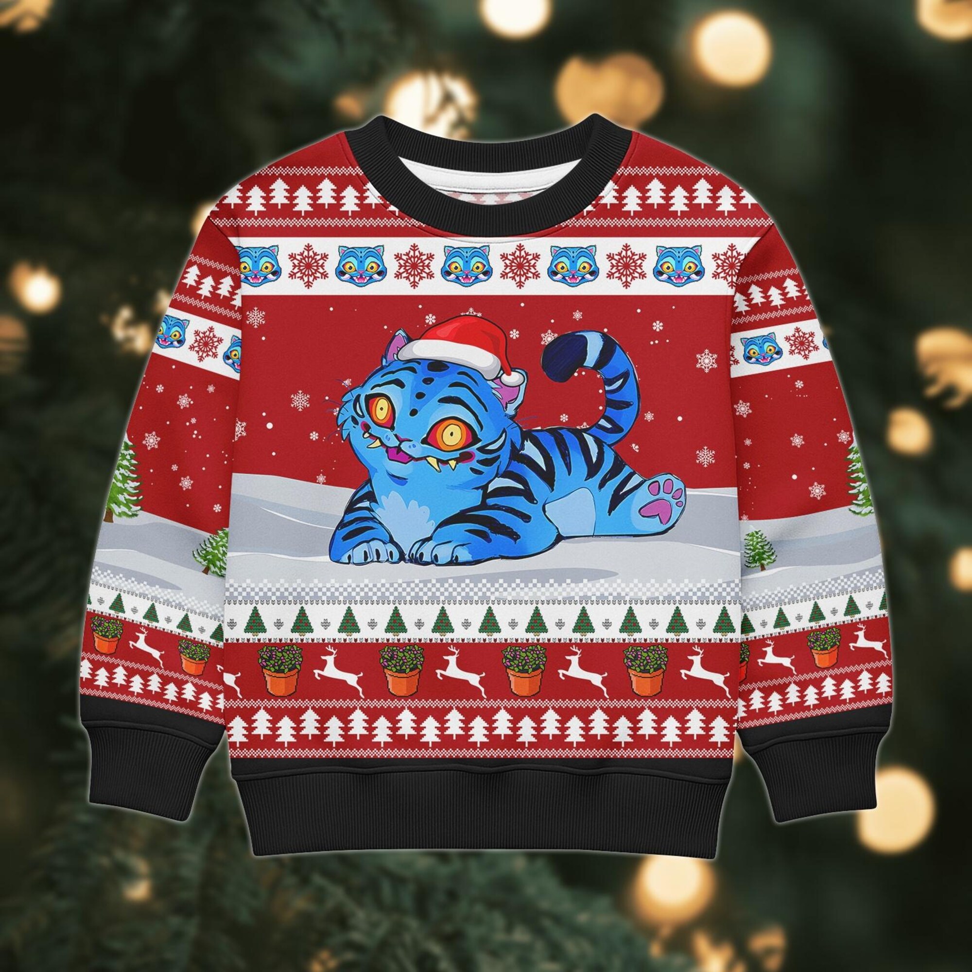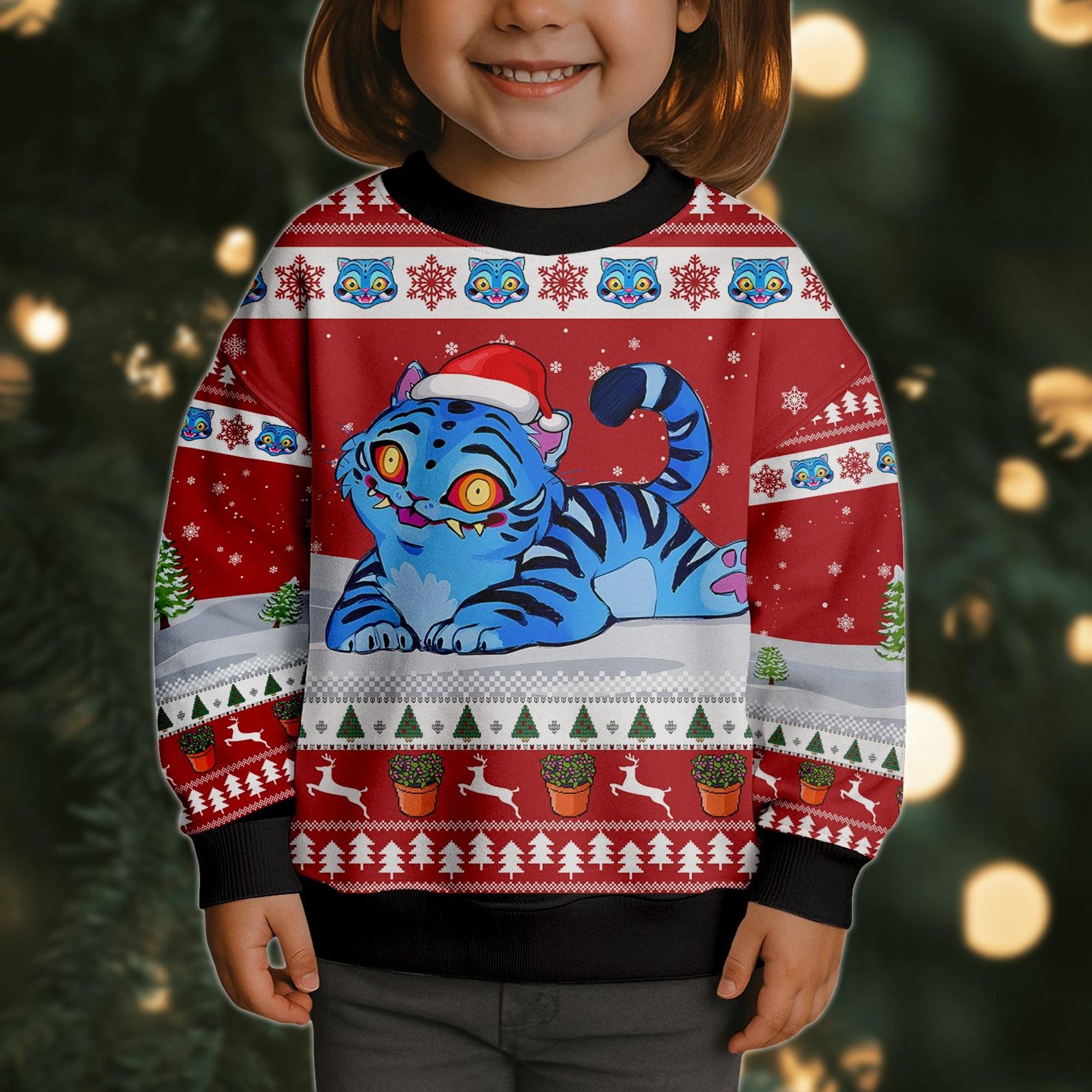 Blue Tiger Ugly Christmas Sweater, Kids Merry Christmas Sweater, Cute Kawaii Gift, Family Xmas Holiday Gift