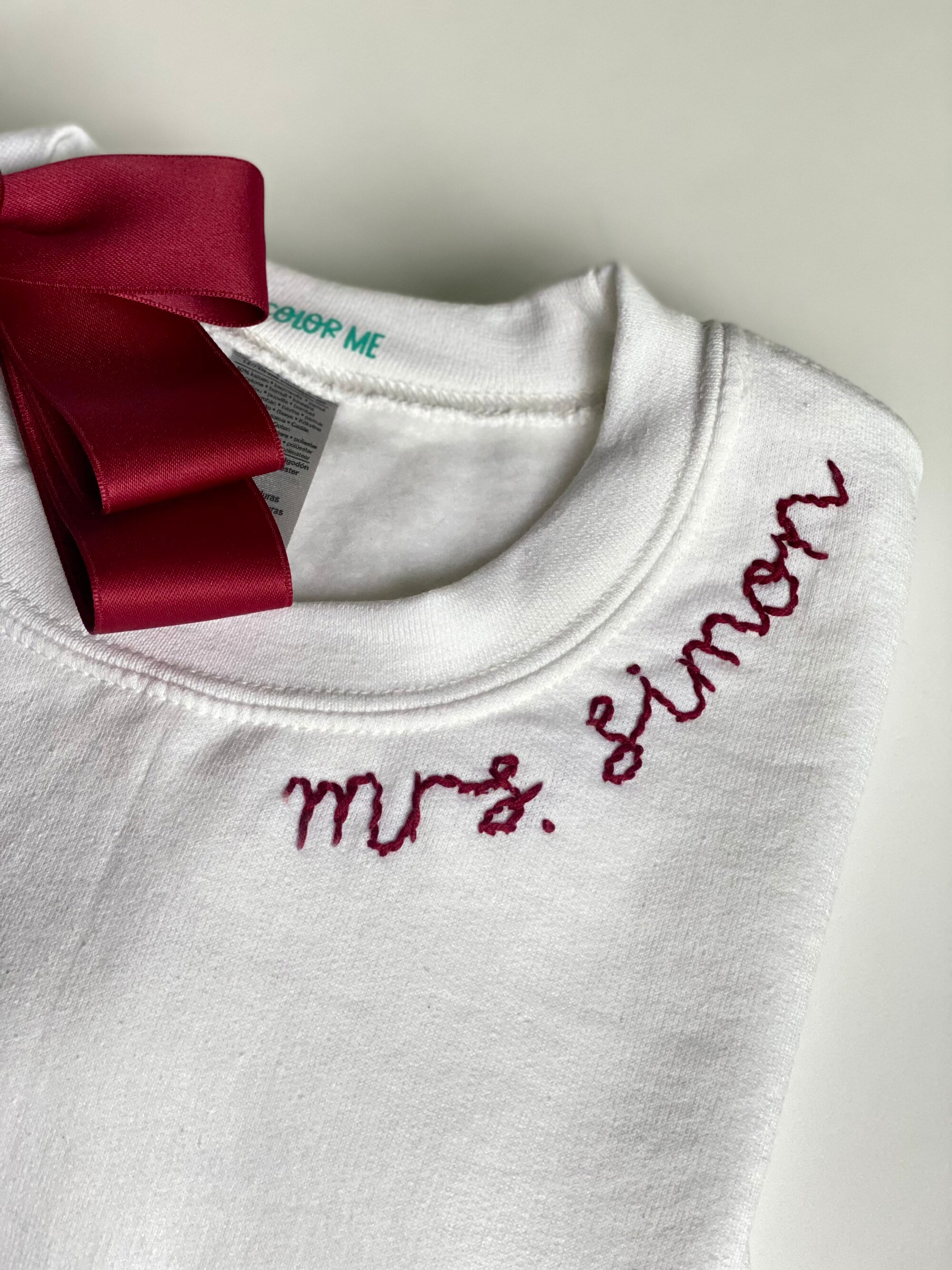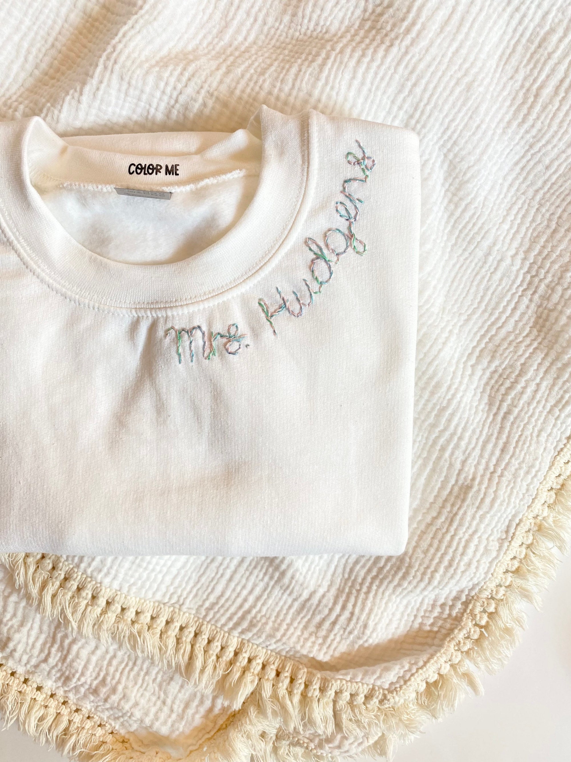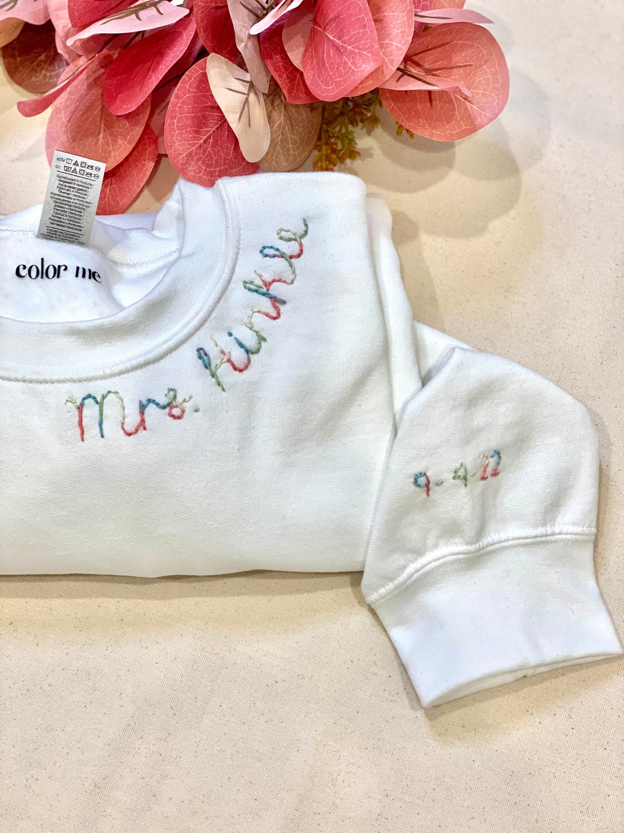 Bride Sweatshirt Hand Embroidered | Customize with the bride to be name and wedding date if you want- Best personalized gift