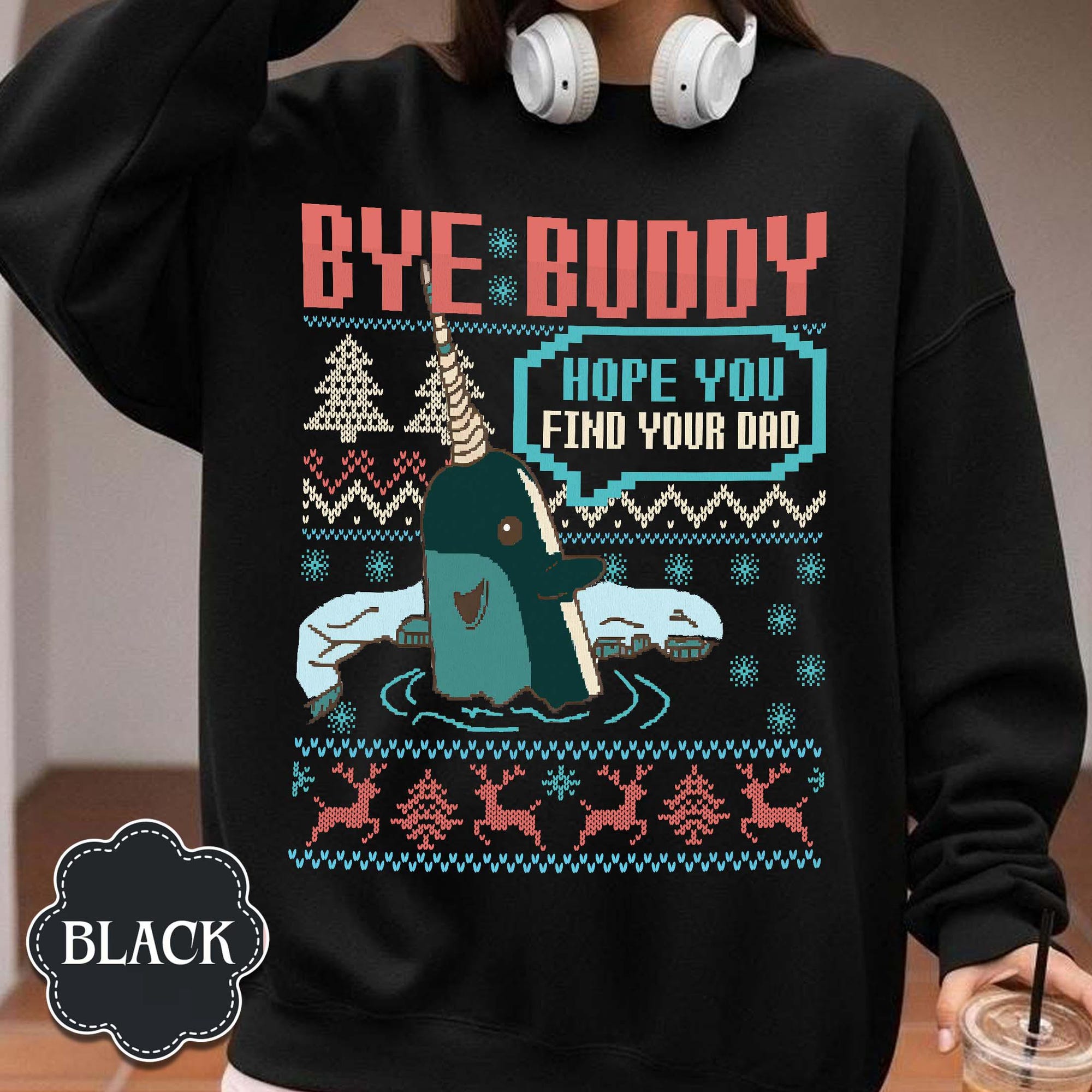 Bye Buddy Find Your Dad Ugly Christmas Sweatshirt: Narwhal Holiday Movie