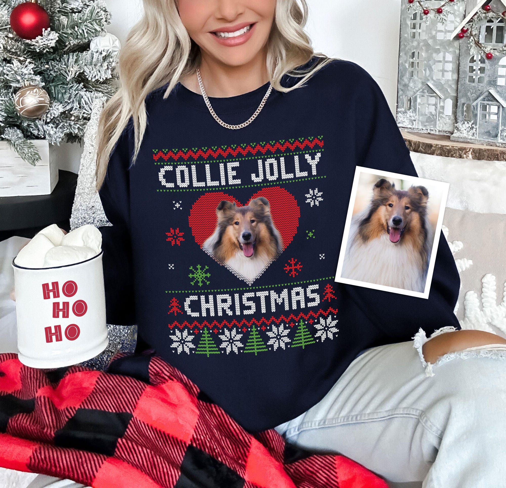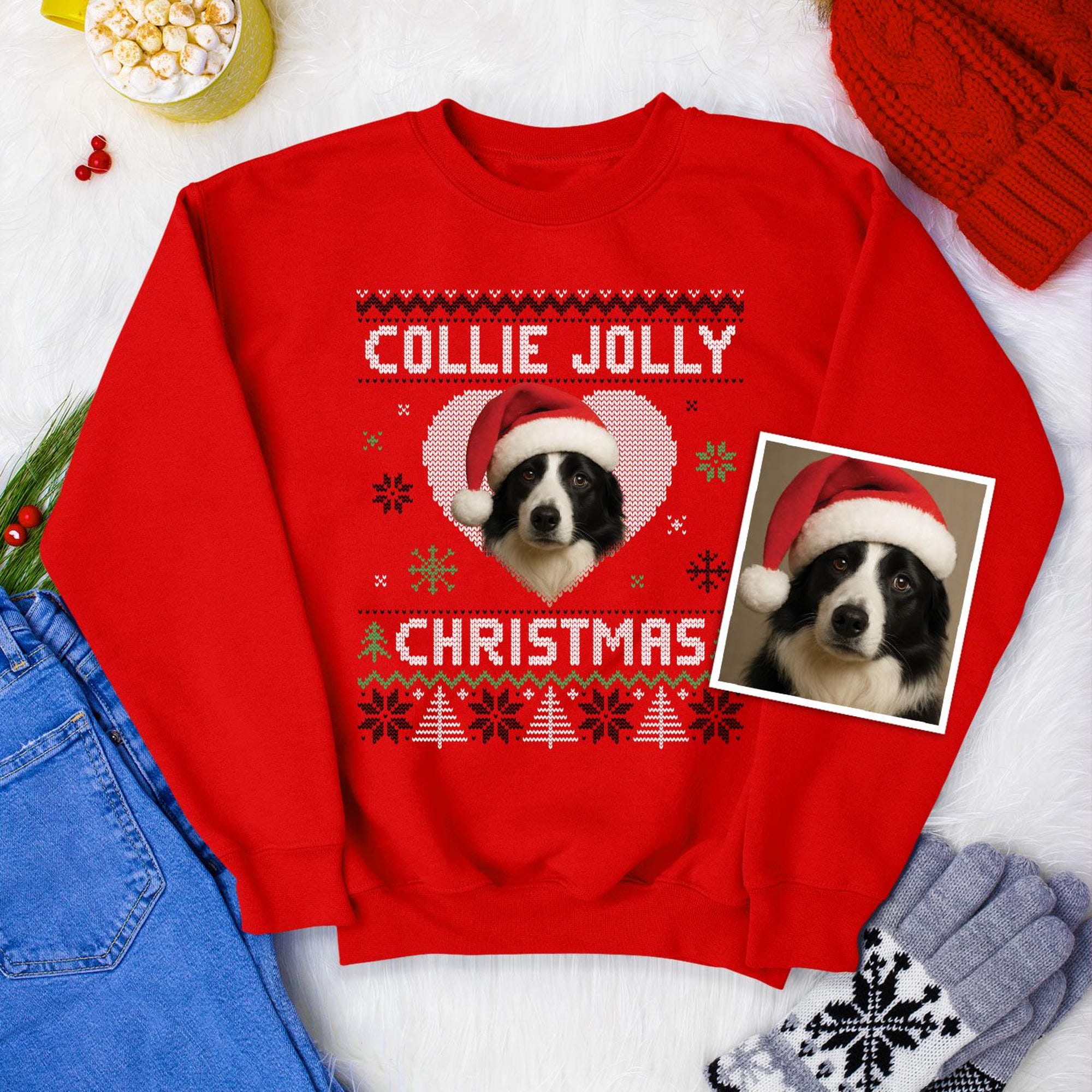 ???????????? ‘Collie Jolly Christmas’ fun personalised photo adorably ugly Christmas sweatshirt.
