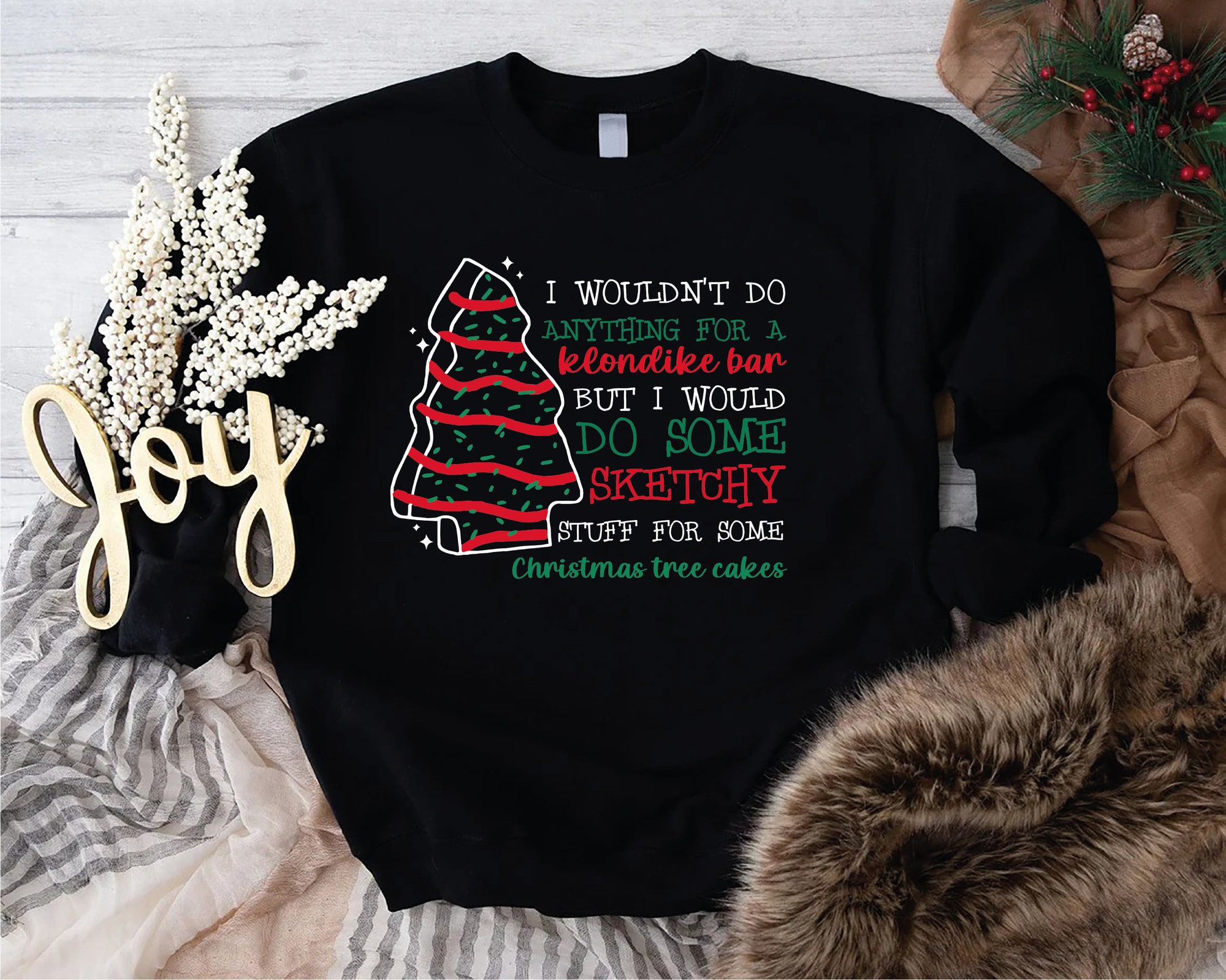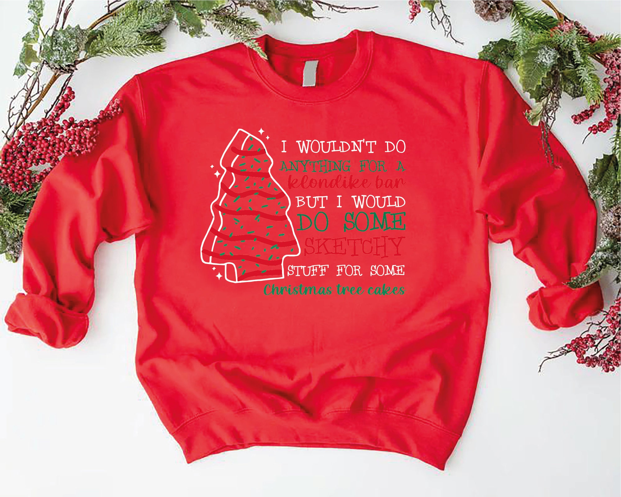 Christmas Tree Cake Sweatshirt, Christmas Cake Shirt, Funny Christmas Sweatshirt, Xmas Holiday Gifts, I Wouldn’t Do Anything For A Klondike