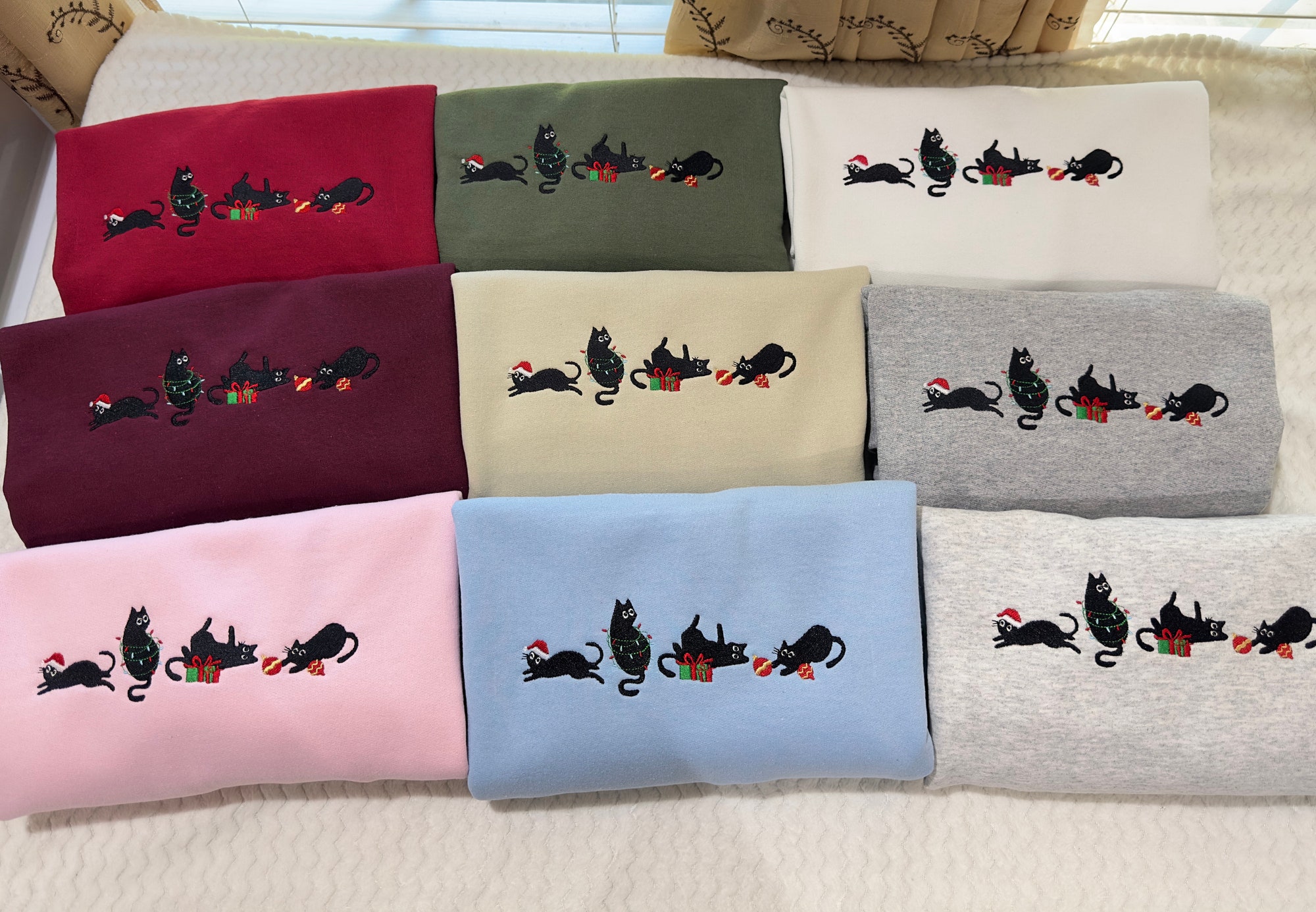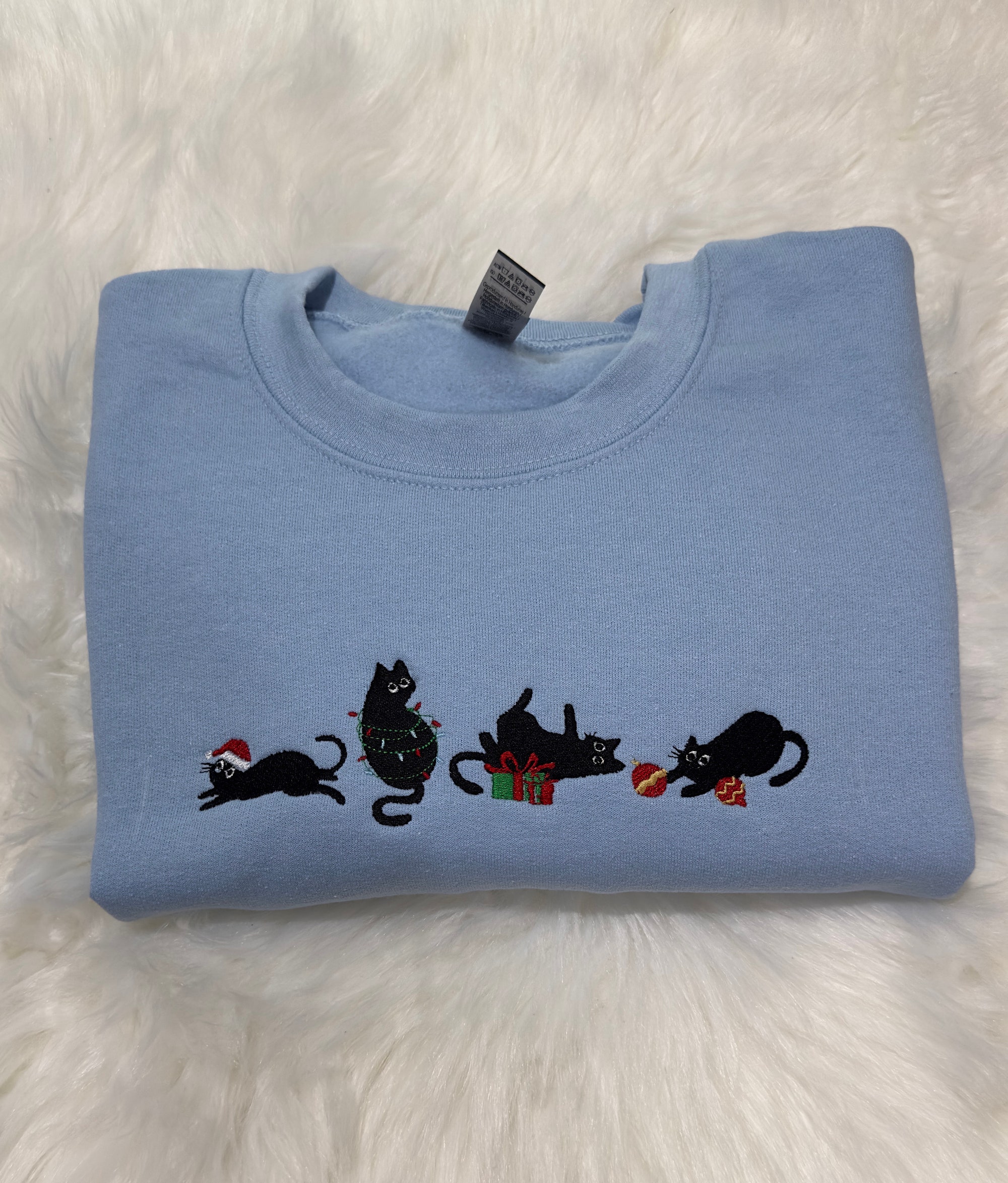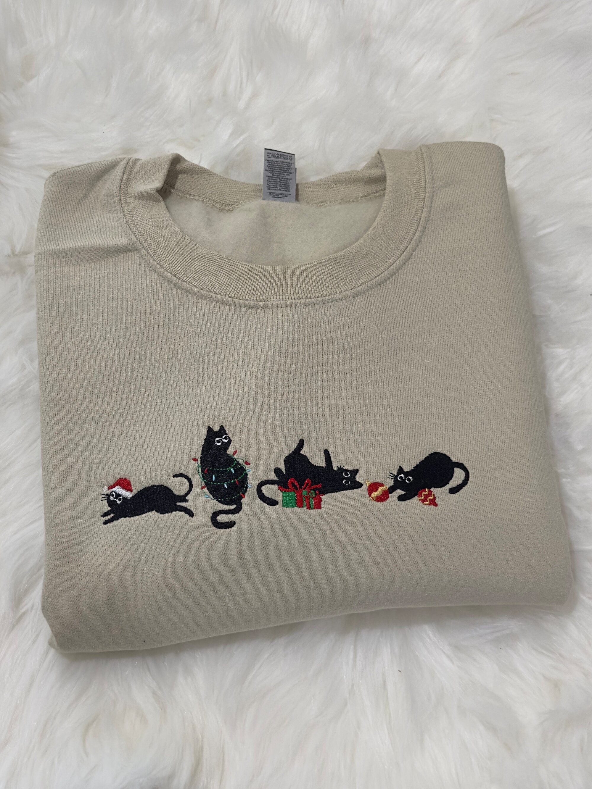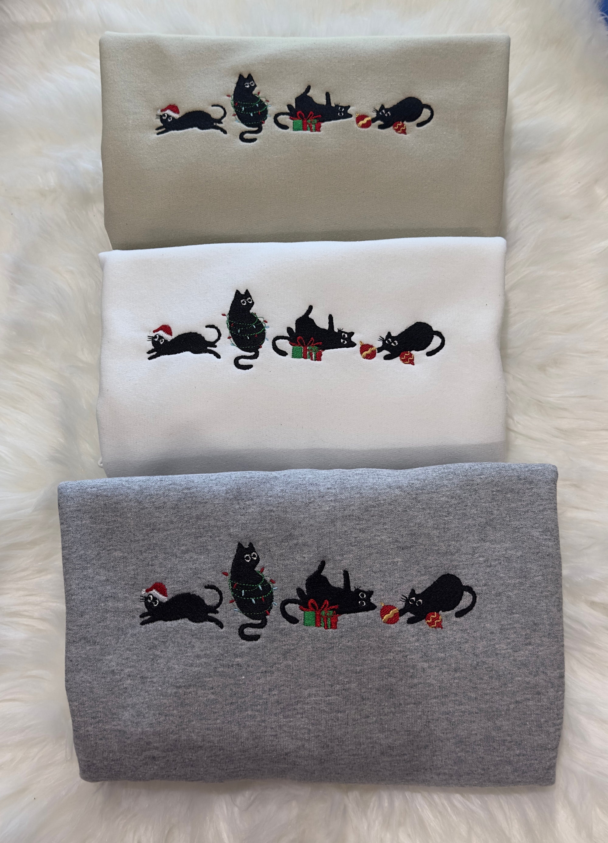 Christmas Cats Embroidered Sweatshirt/ Hoodie, Christmas embroidered sweatshirt