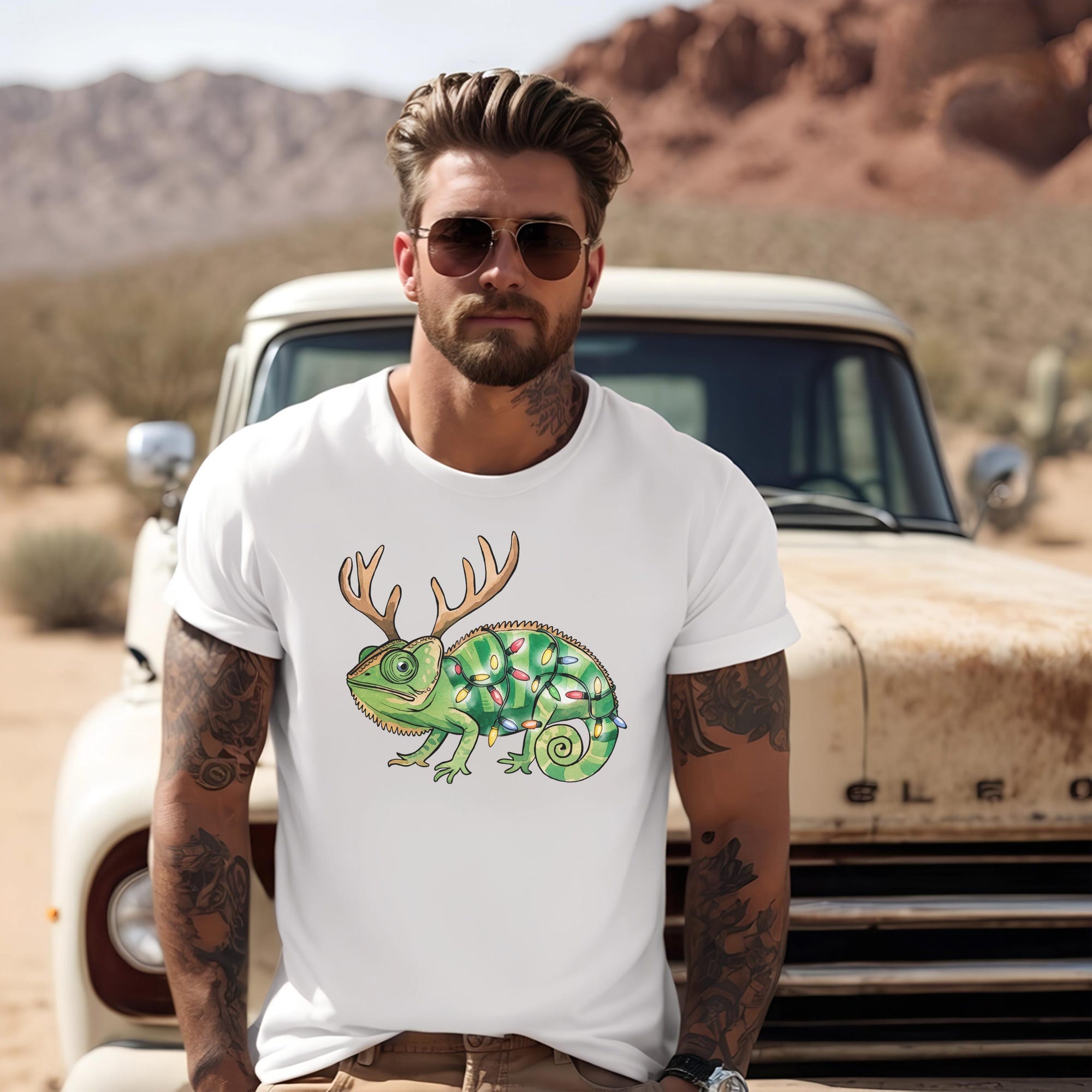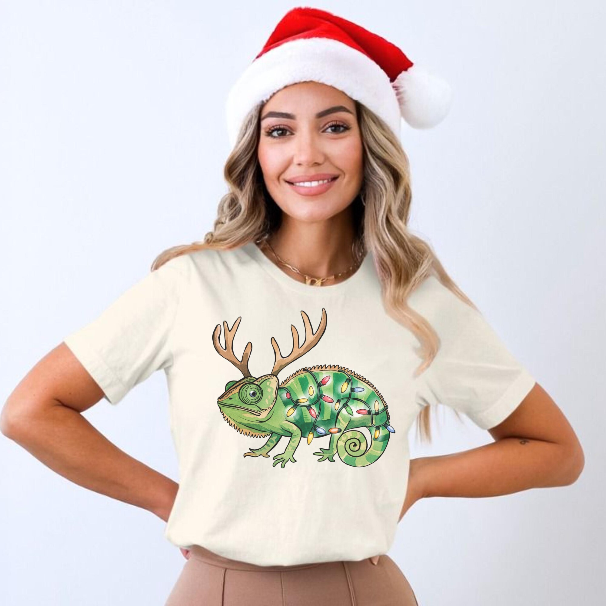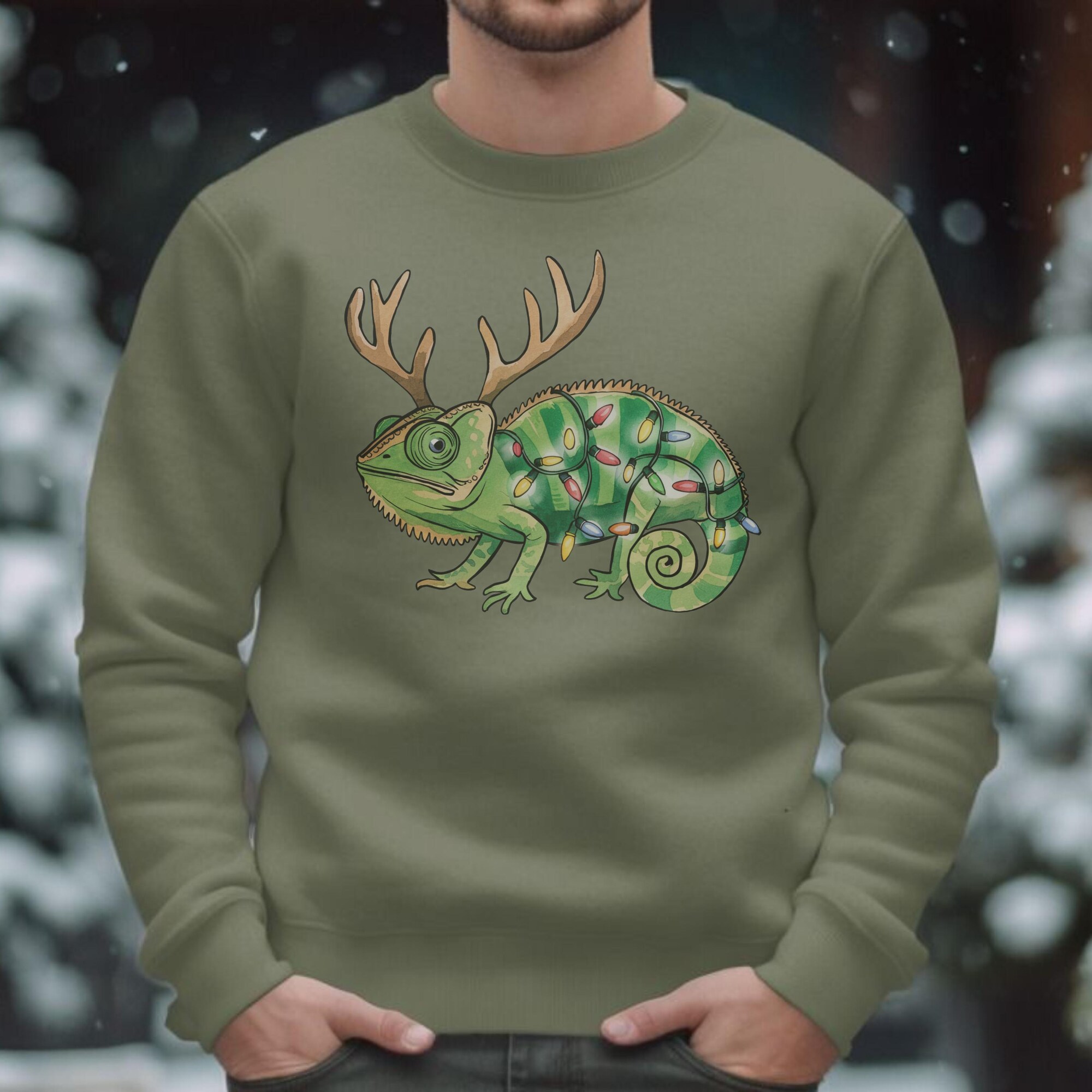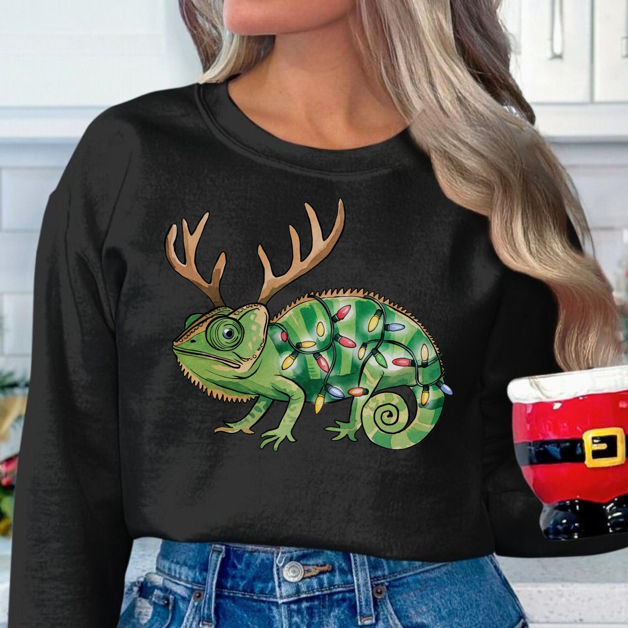 Christmas Chameleon Shirt, Antlers and Christmas Lights Lizard Lover Gift Sweatshirt