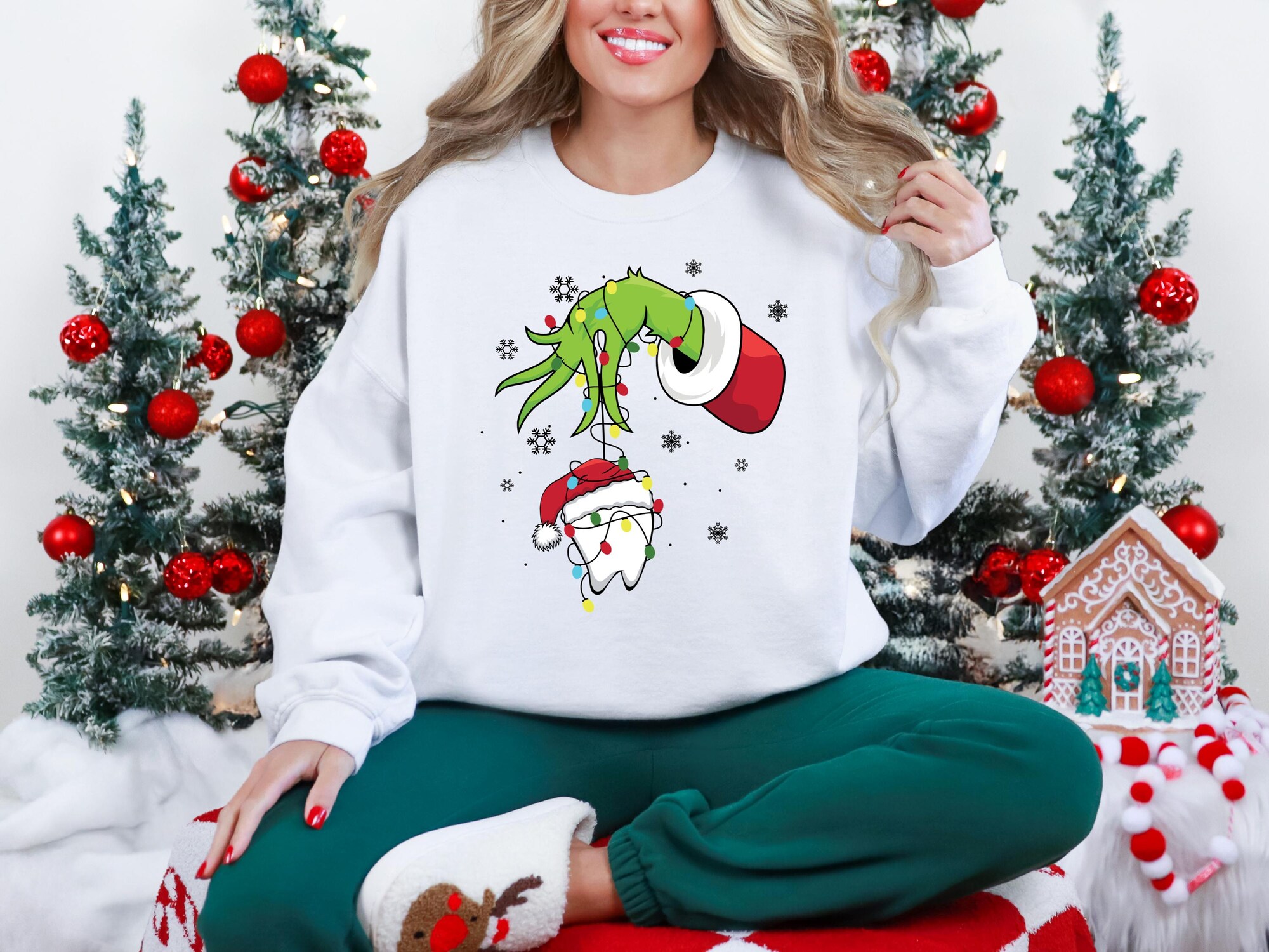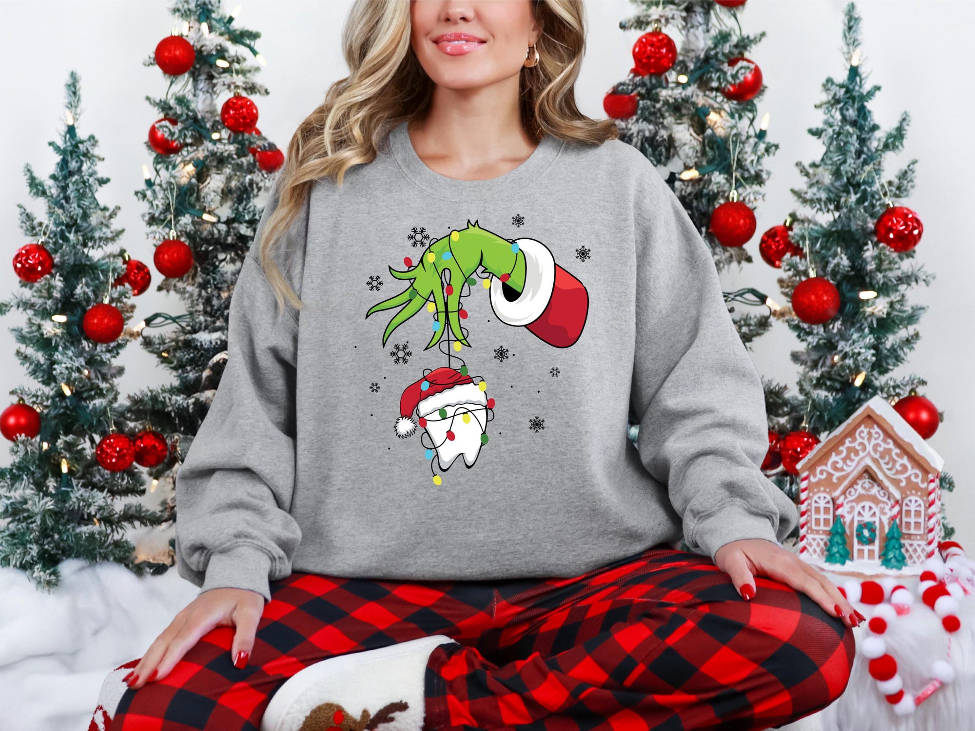 Christmas Dentist Sweatshirt, Grinch Christmas Lights Tooth Crewneck,Dental Squad Shirt for Christmas, Dental Assistant Gift,Xmas Dental Tee