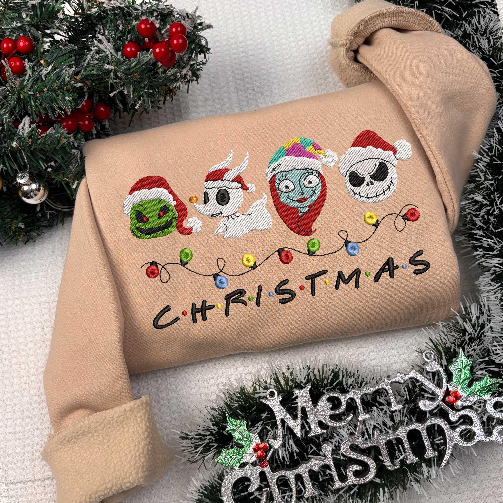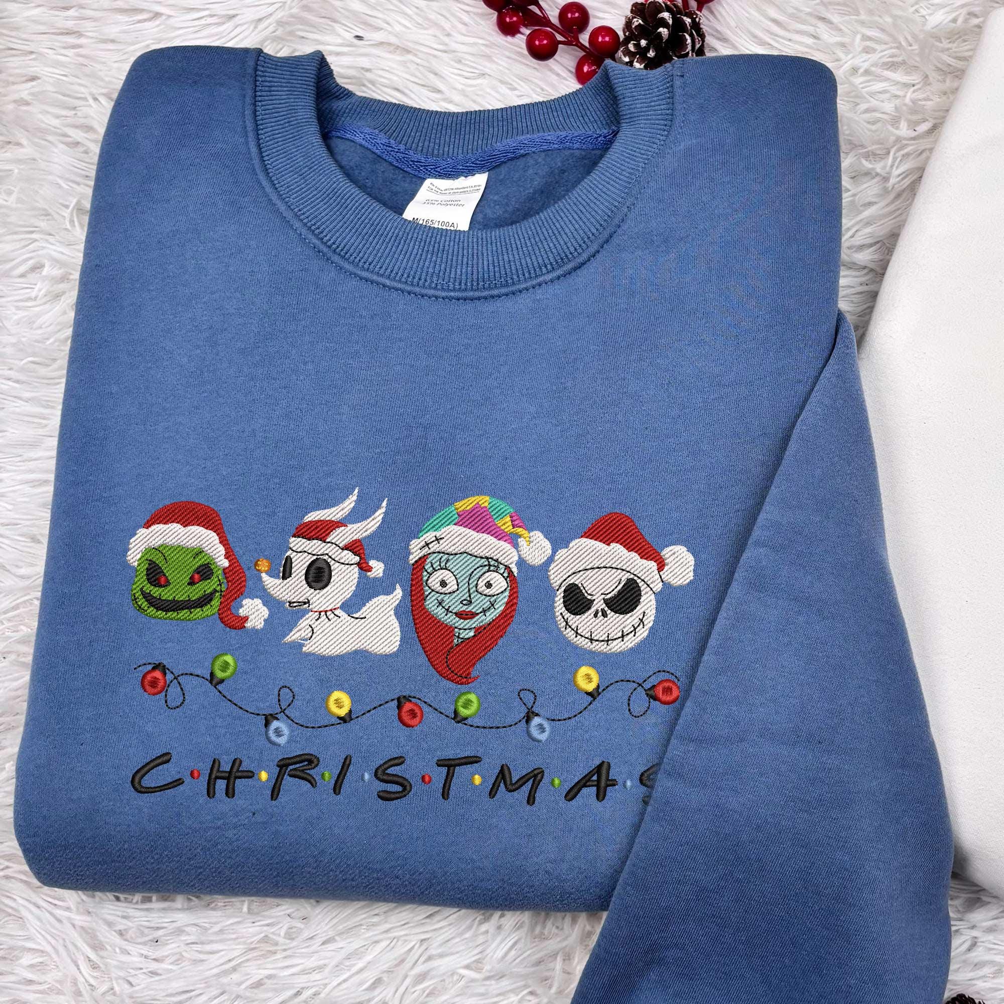 Christmas Embroidered Sweaters, Horror Friends Embroidered Jumper, Christmas Horror Movie Cartoon Embroidered Sweaters, Christmas Gift