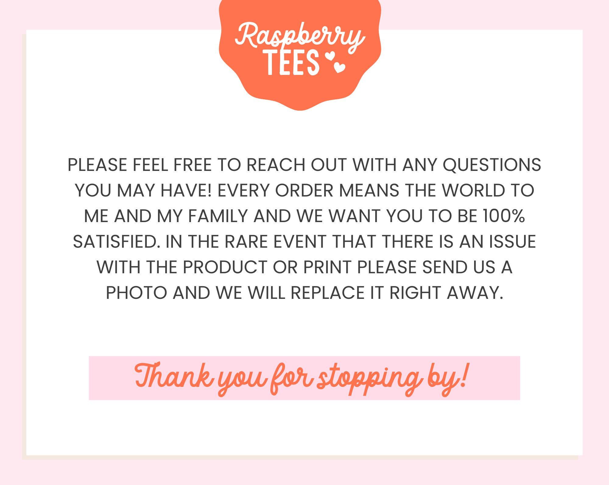 Please visit our shop for more great items: https://www.etsy.com/shop/RaspberryTeesbyLisa