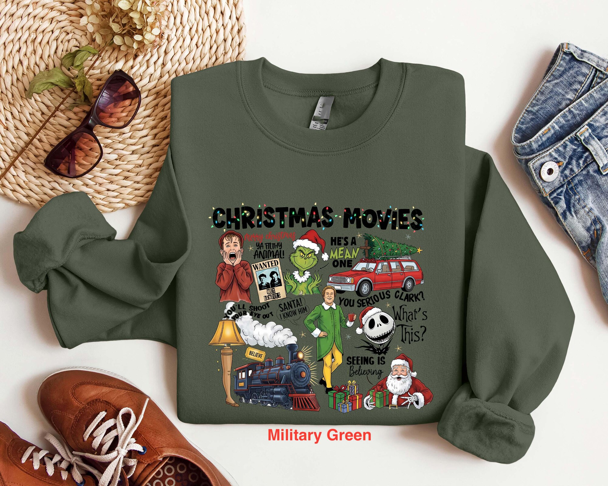 Christmas Movies Mashup Shirt sweatshirt Hoodie | Funny Holiday Movie Collage Tee | Classic Xmas Film Characters Graphic Top