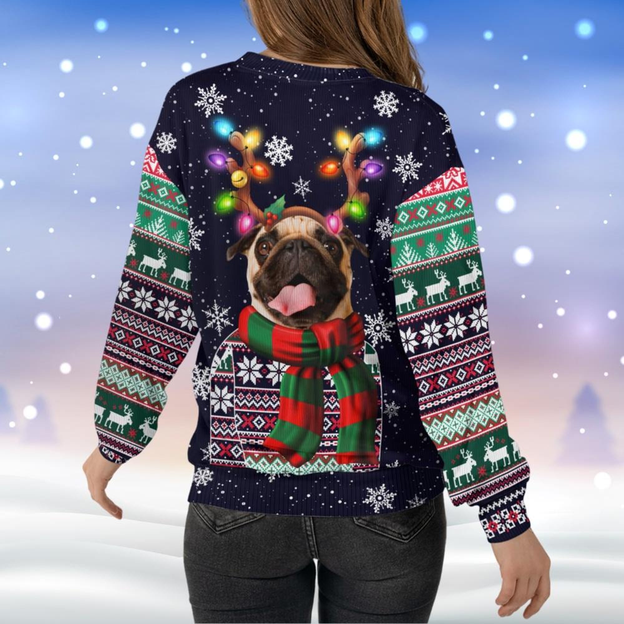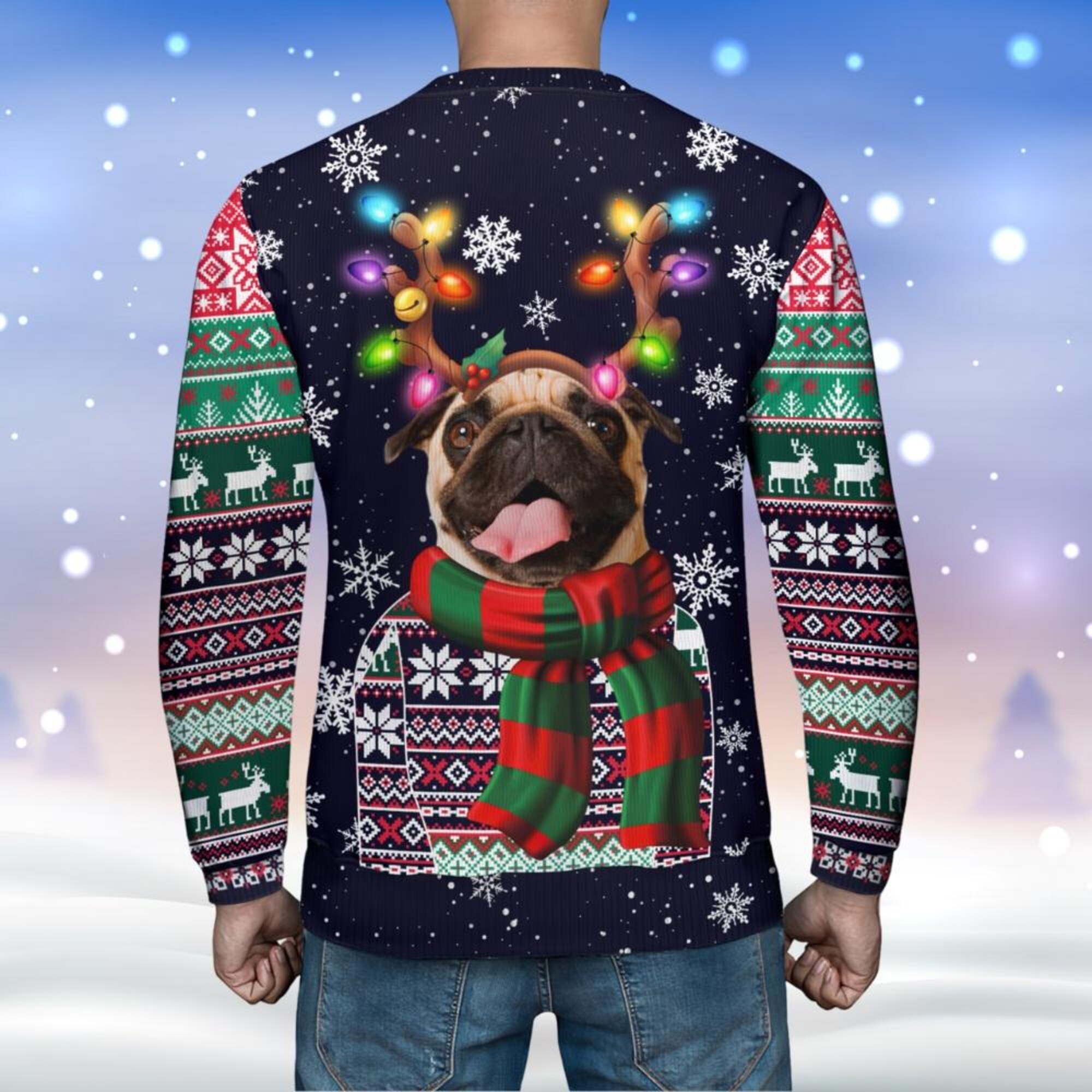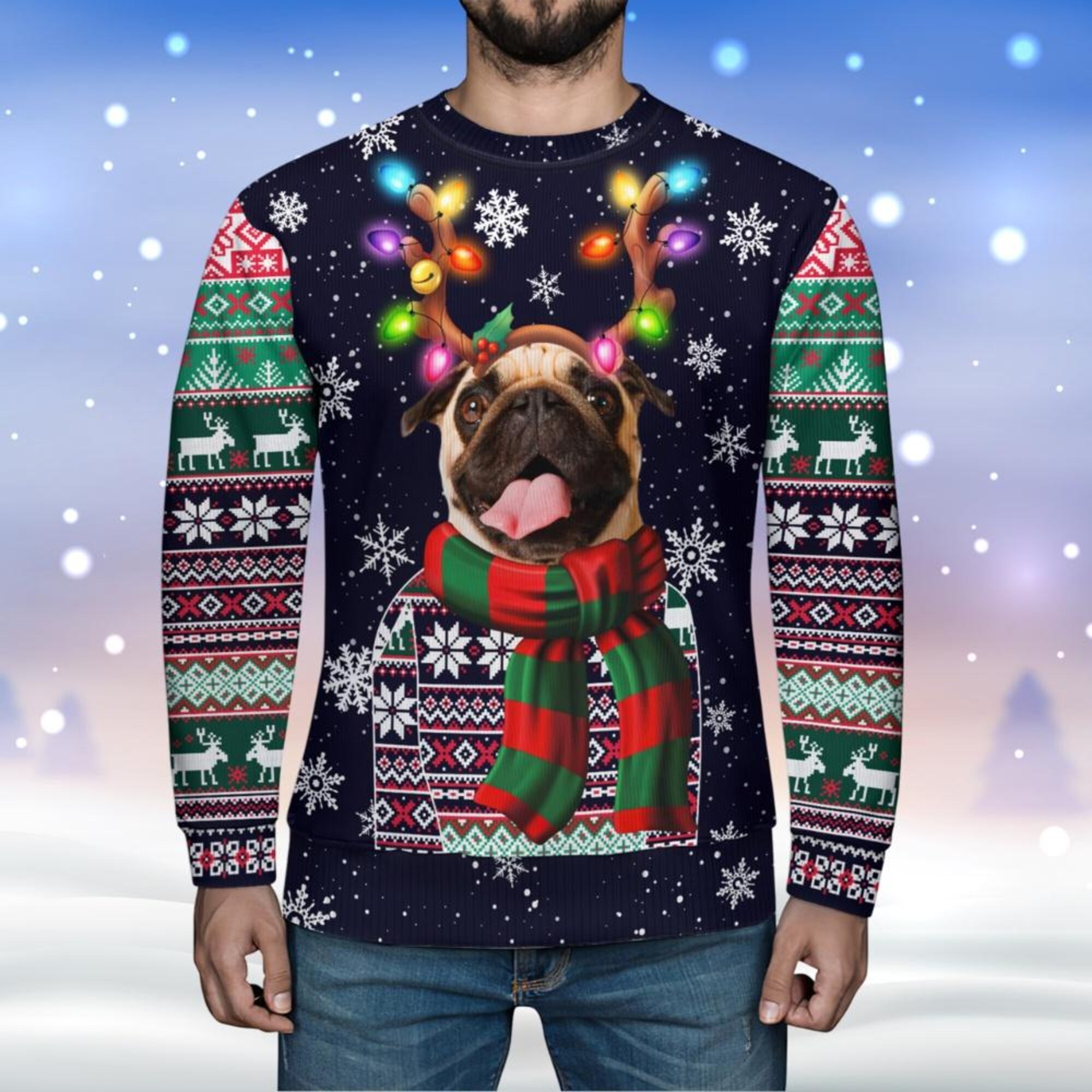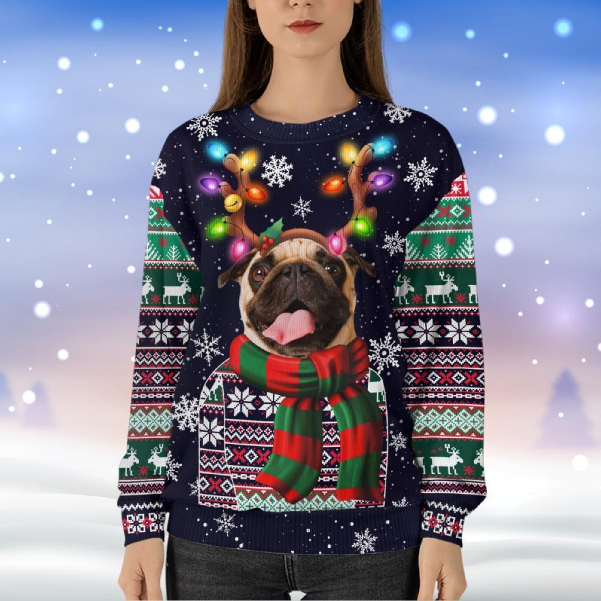 Christmas Pug Ugly Sweater, Pug Dog Holiday Sweater, Pug Santa Christmas Light Xmas Sweater, Pet Owner Family Sweater