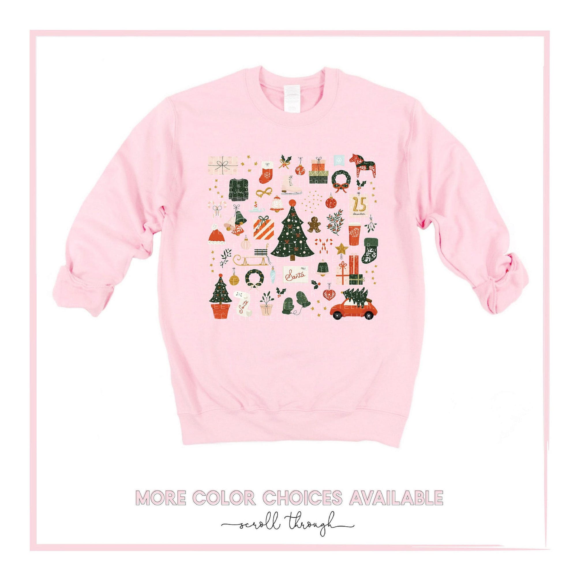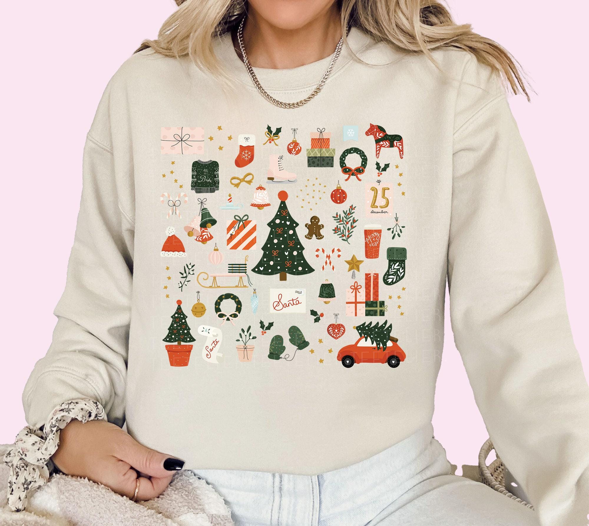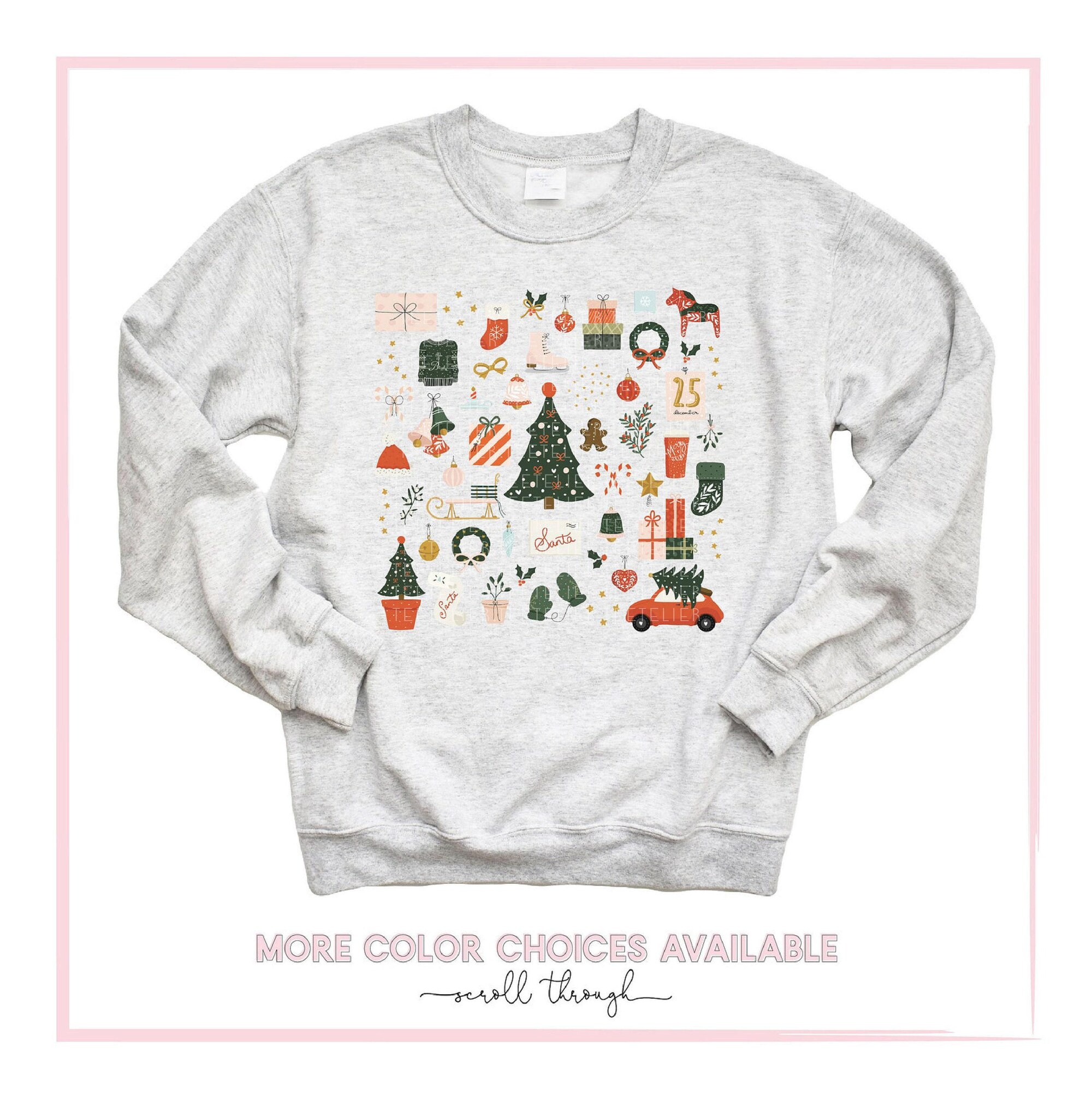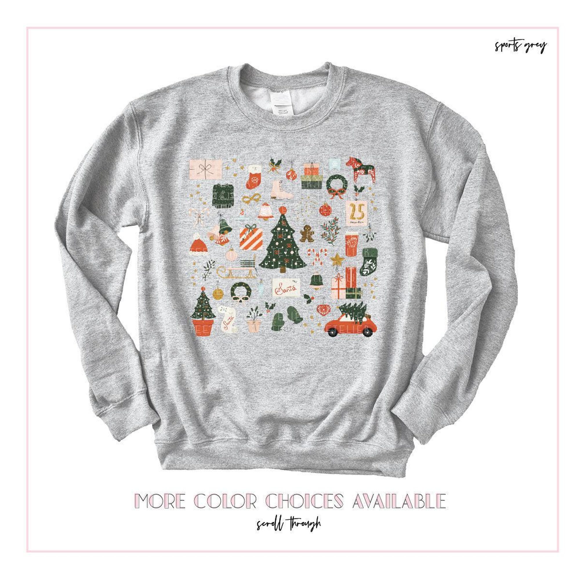 Christmas Sweatshirt, Holiday Sweatshirt Little Things Favorites Doodles, Xmas Crewneck Pullover Sweater Apparel Gift For Her, Plus Sizes Plus Sizes Christmas Sweatshirt For Women, Mom Sweatshirt, Womens Long Sleeve