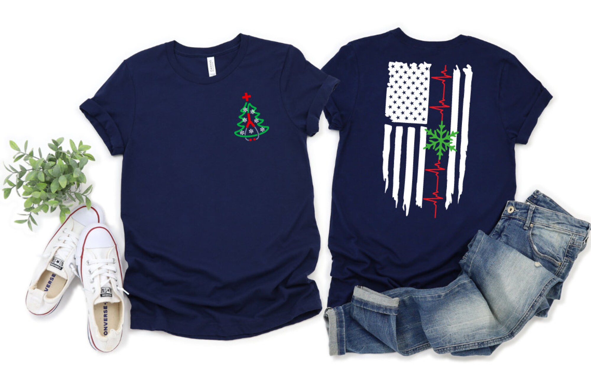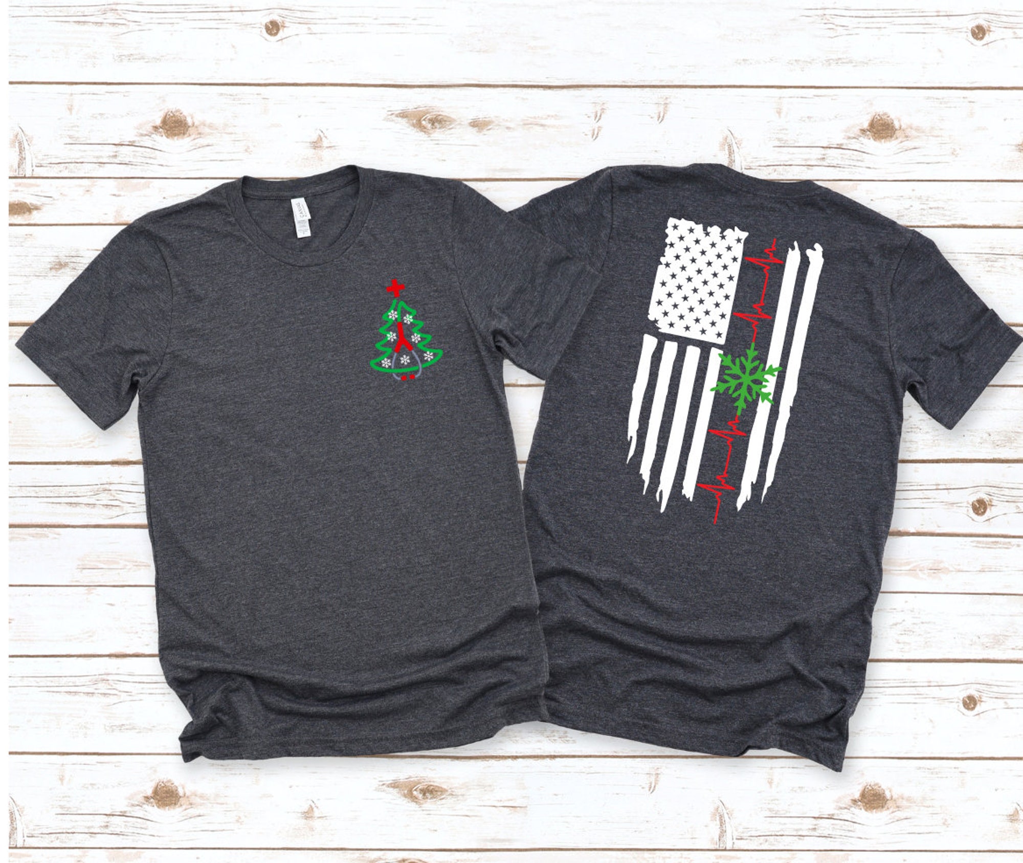 Christmas XMAS Holiday Snowflake RN Registered Nursing Nurse Healthcare EKG Flag T-shirt