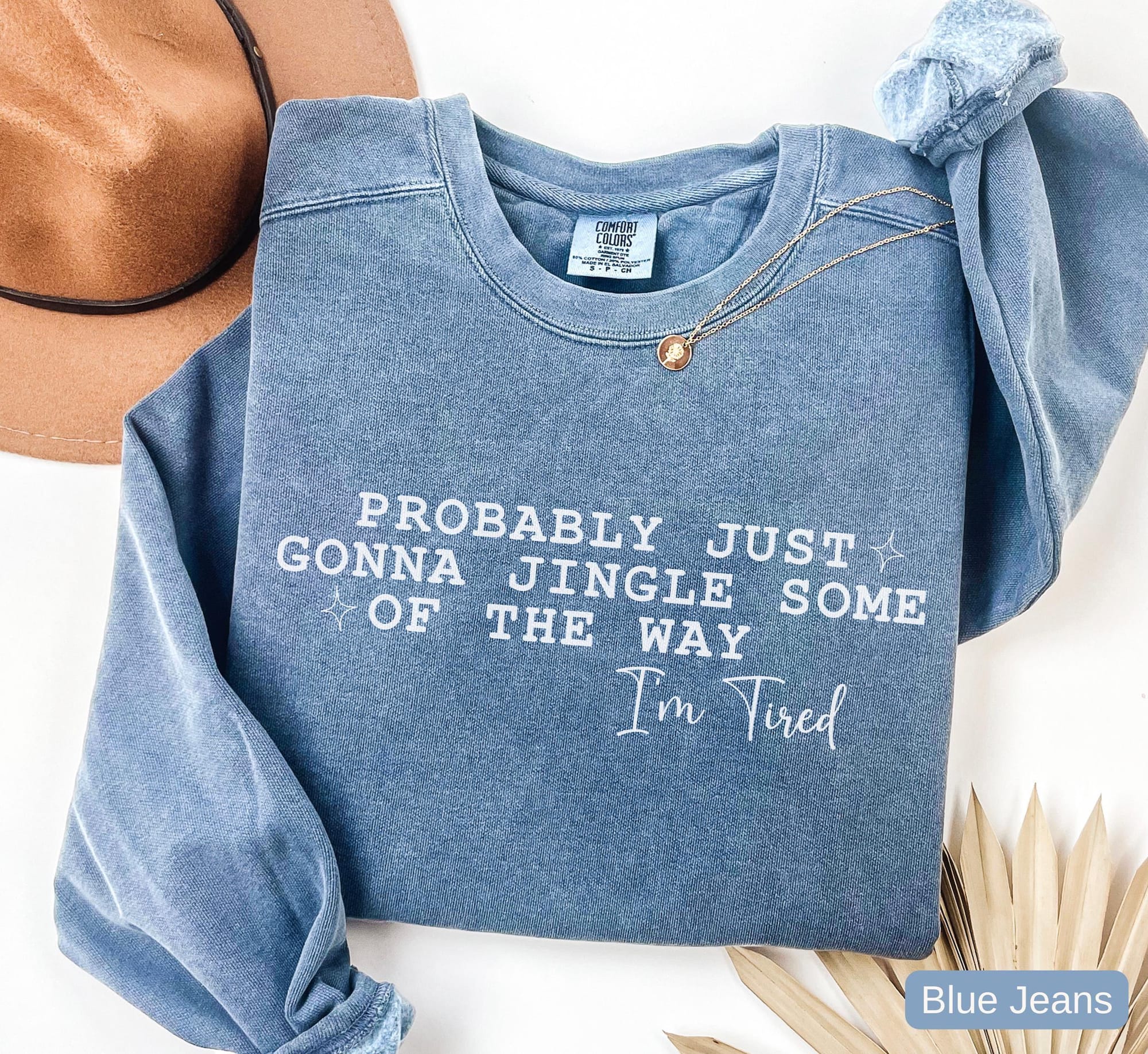 Spread laughs this season with a funny holiday sweatshirt that says “Probably Just Gonna Jingle Some Of The Way I’m Tired.” Cozy, stylish, and a perfect Christmas gift for women who love humor.