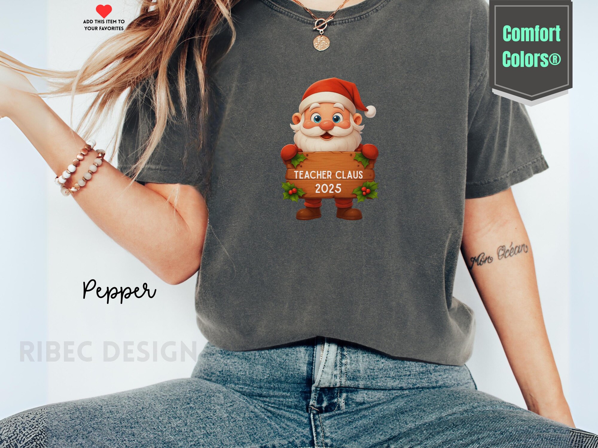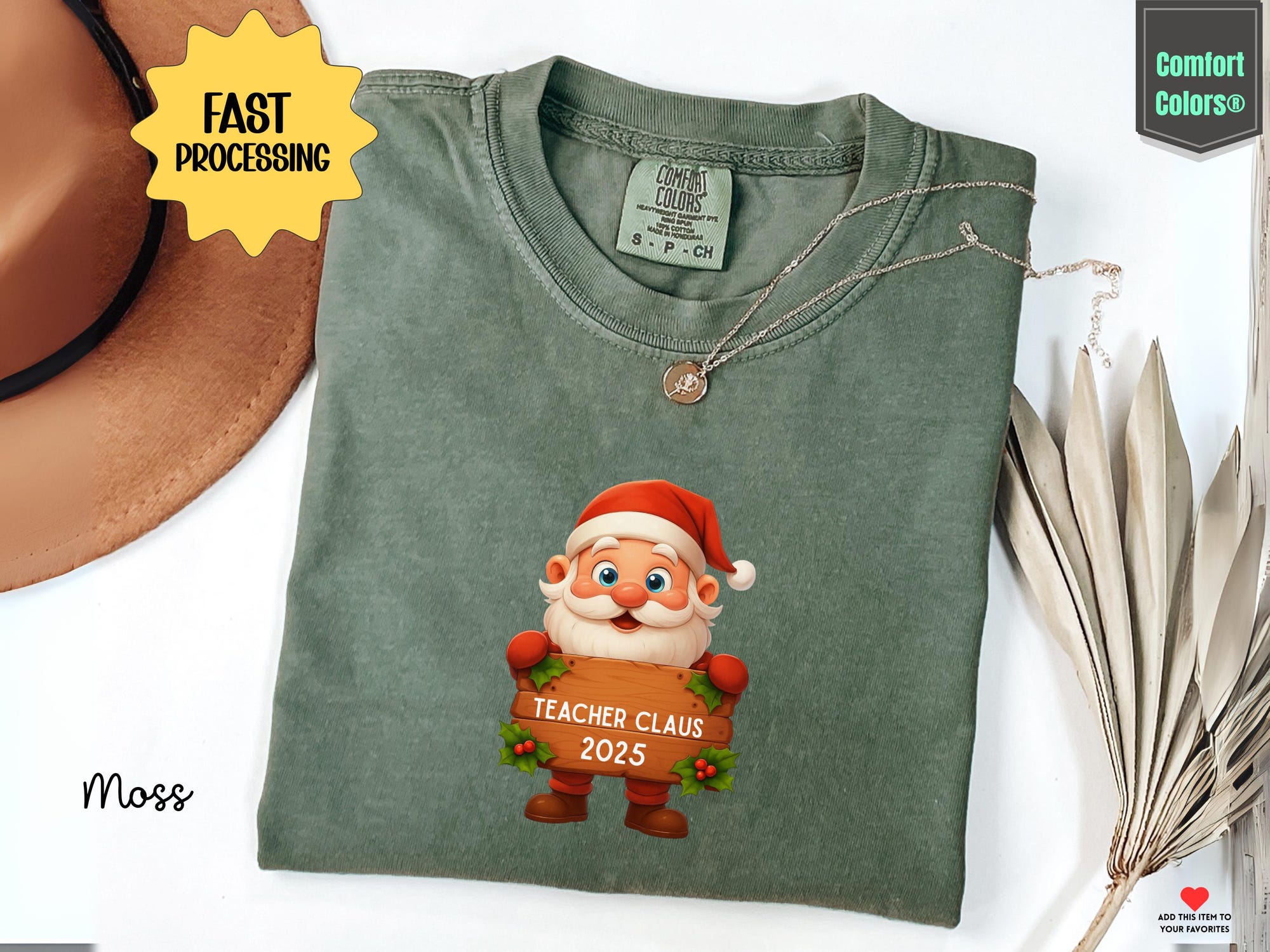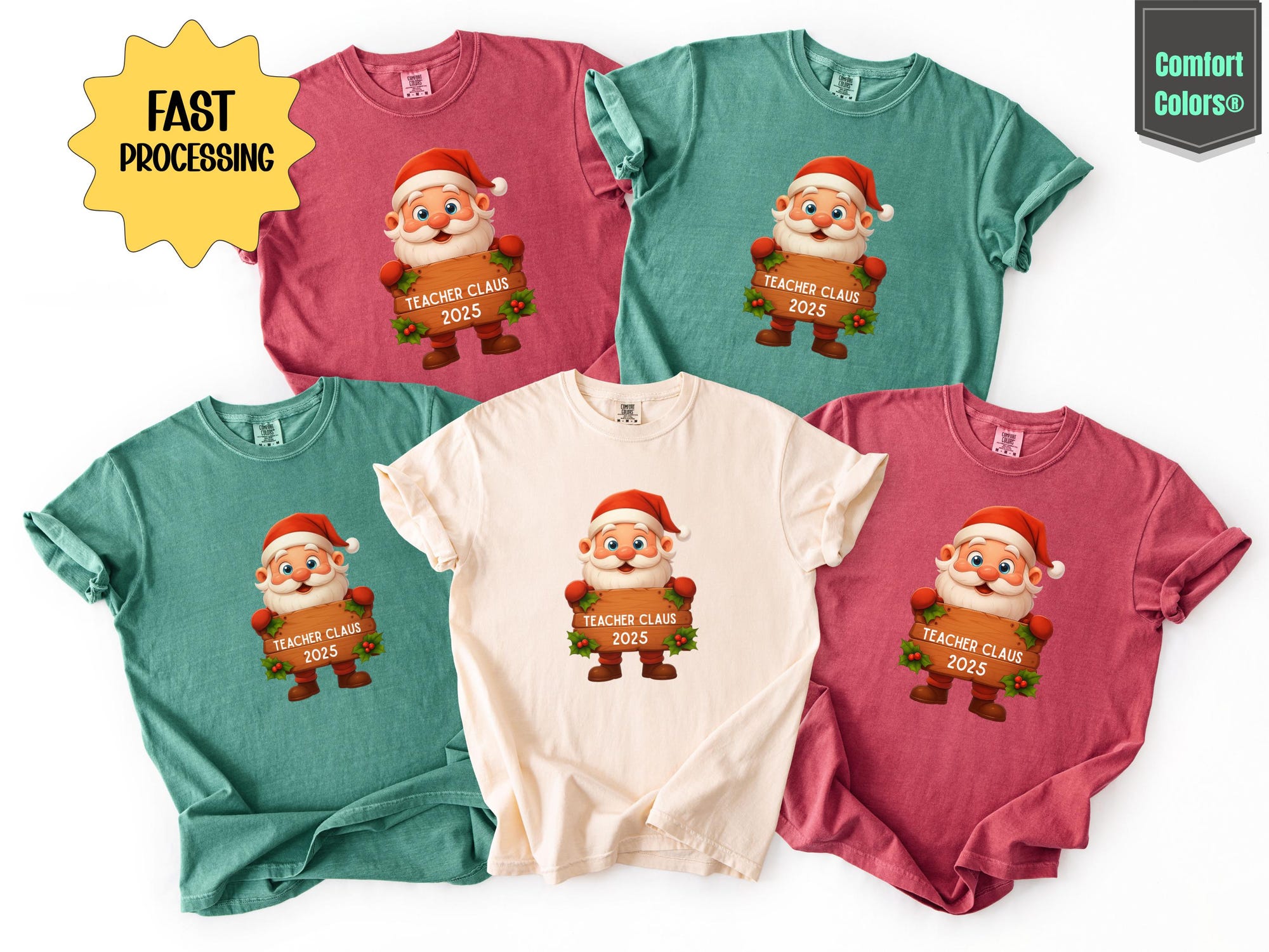 Comfort Colors® Teacher Claus Shirt, Christmas Teacher Gift 2025, Cute Santa Graphic Tee, Holiday School Outfit, Matching Staff Top