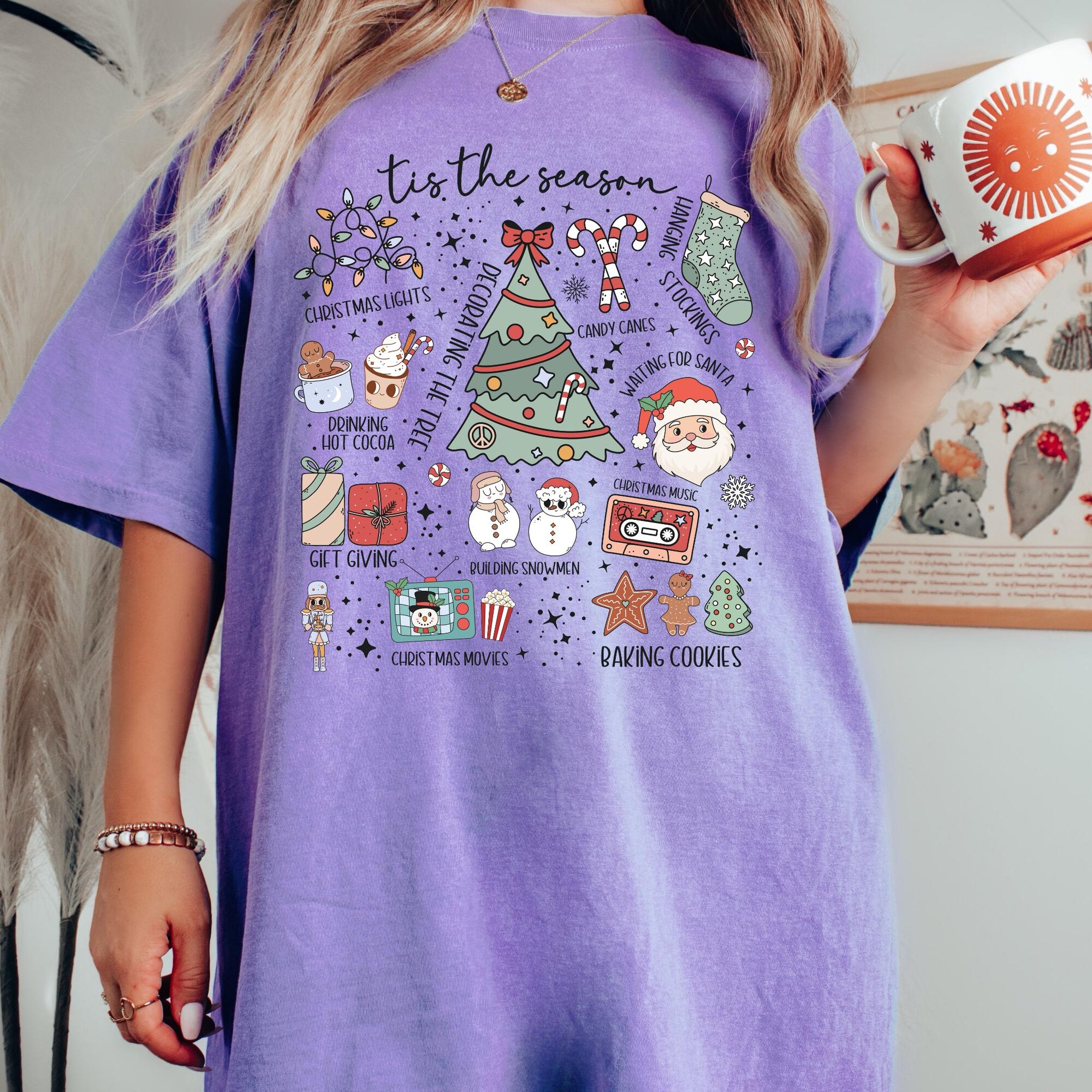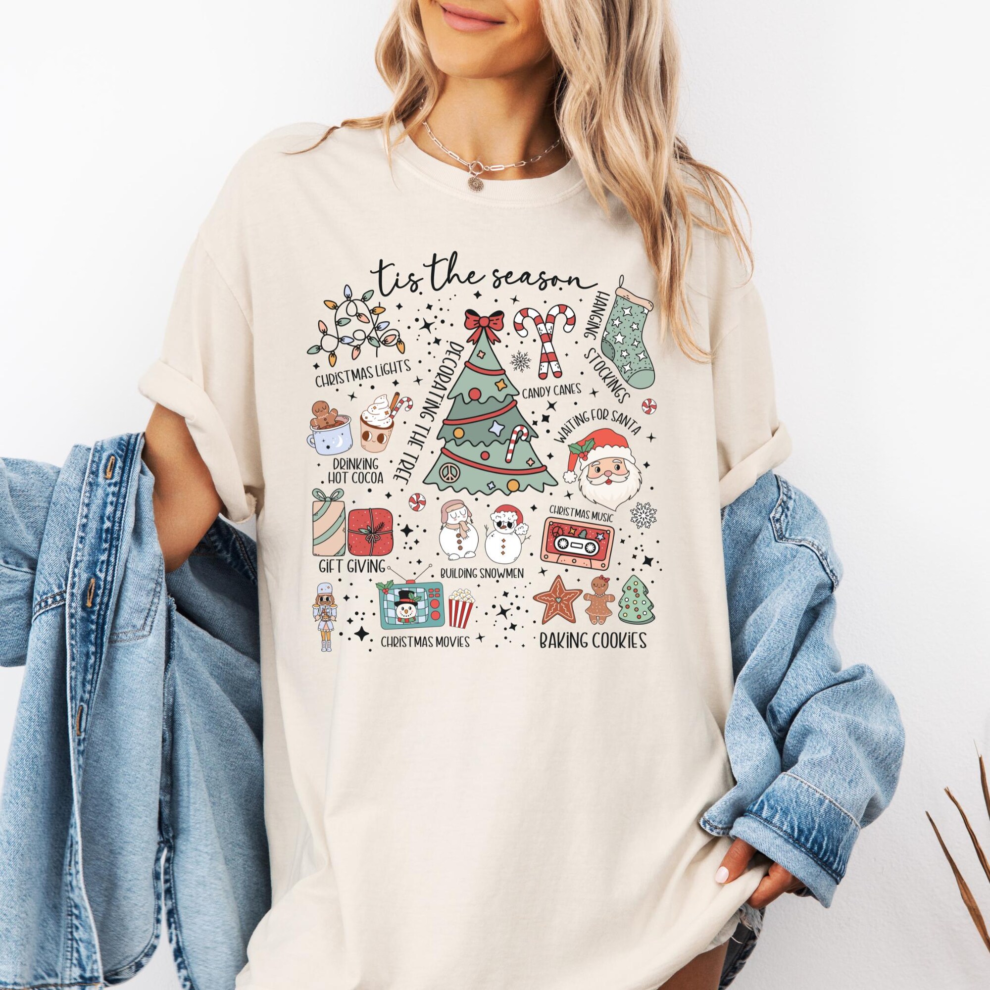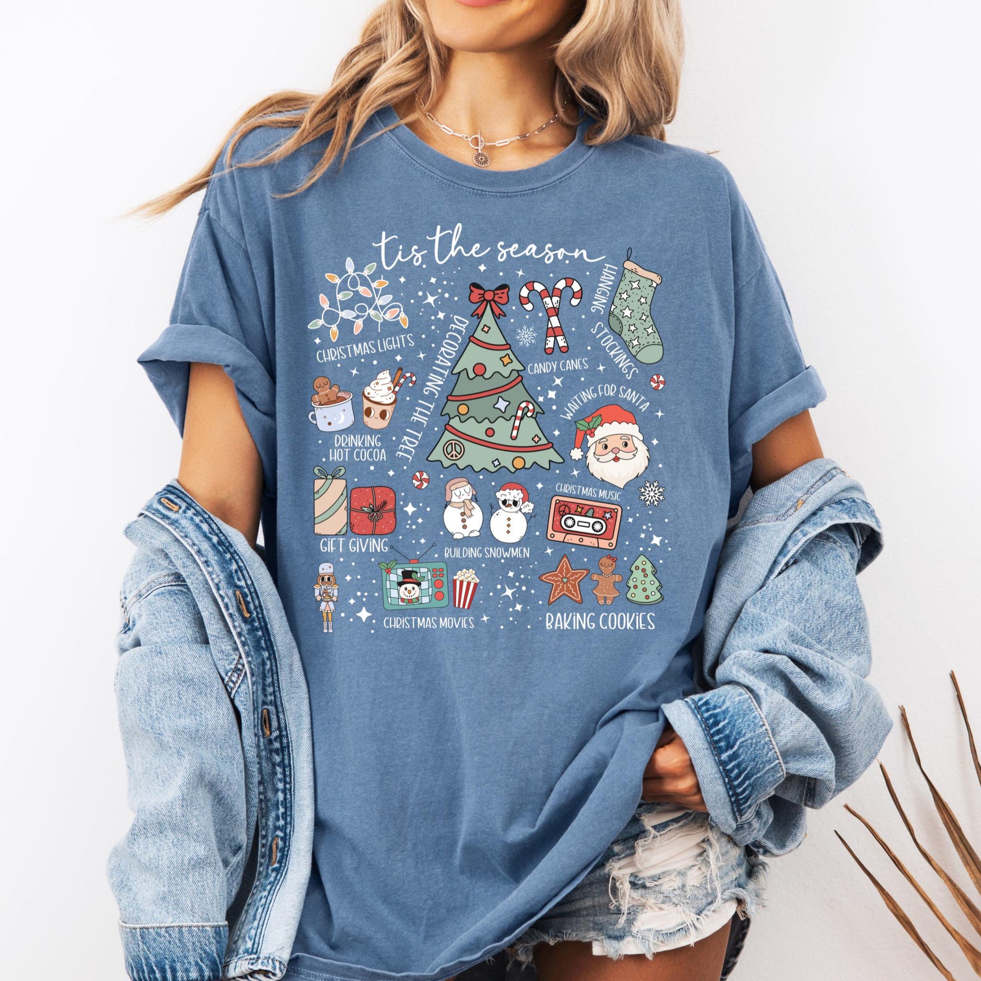 Comfort Colors® Tis’ the Season, Retro Christmas Aesthetic, Women’s Christmas Shirt, Santa Snowman Graphic Tee, Xmas Gift, Xmas Bundle tee