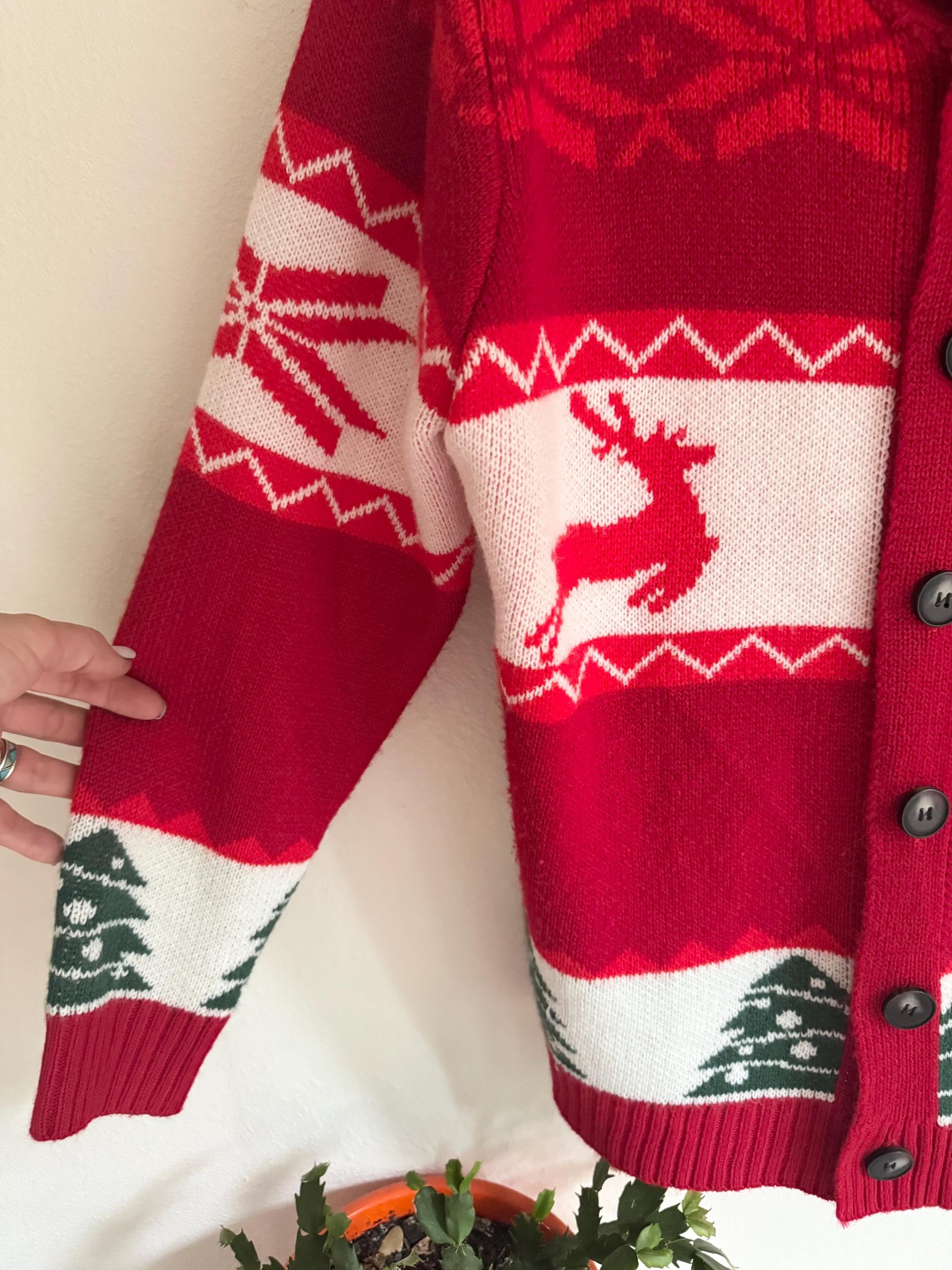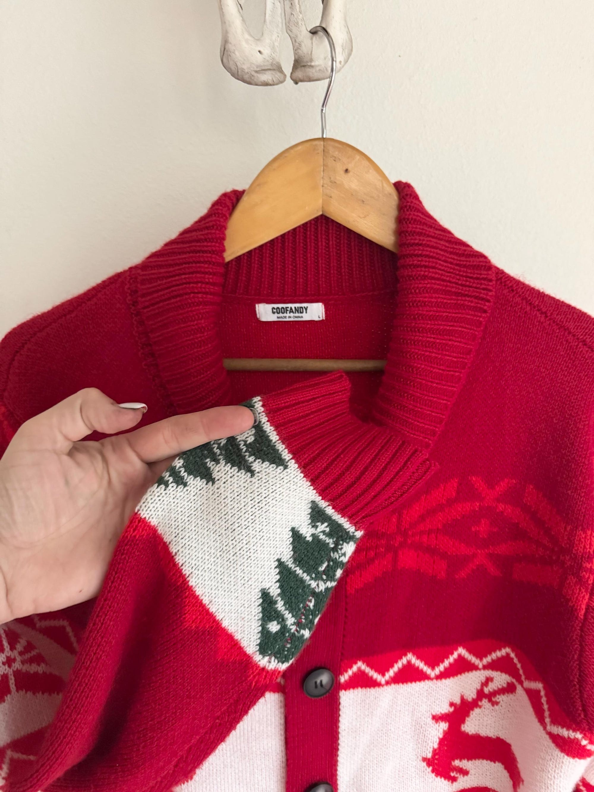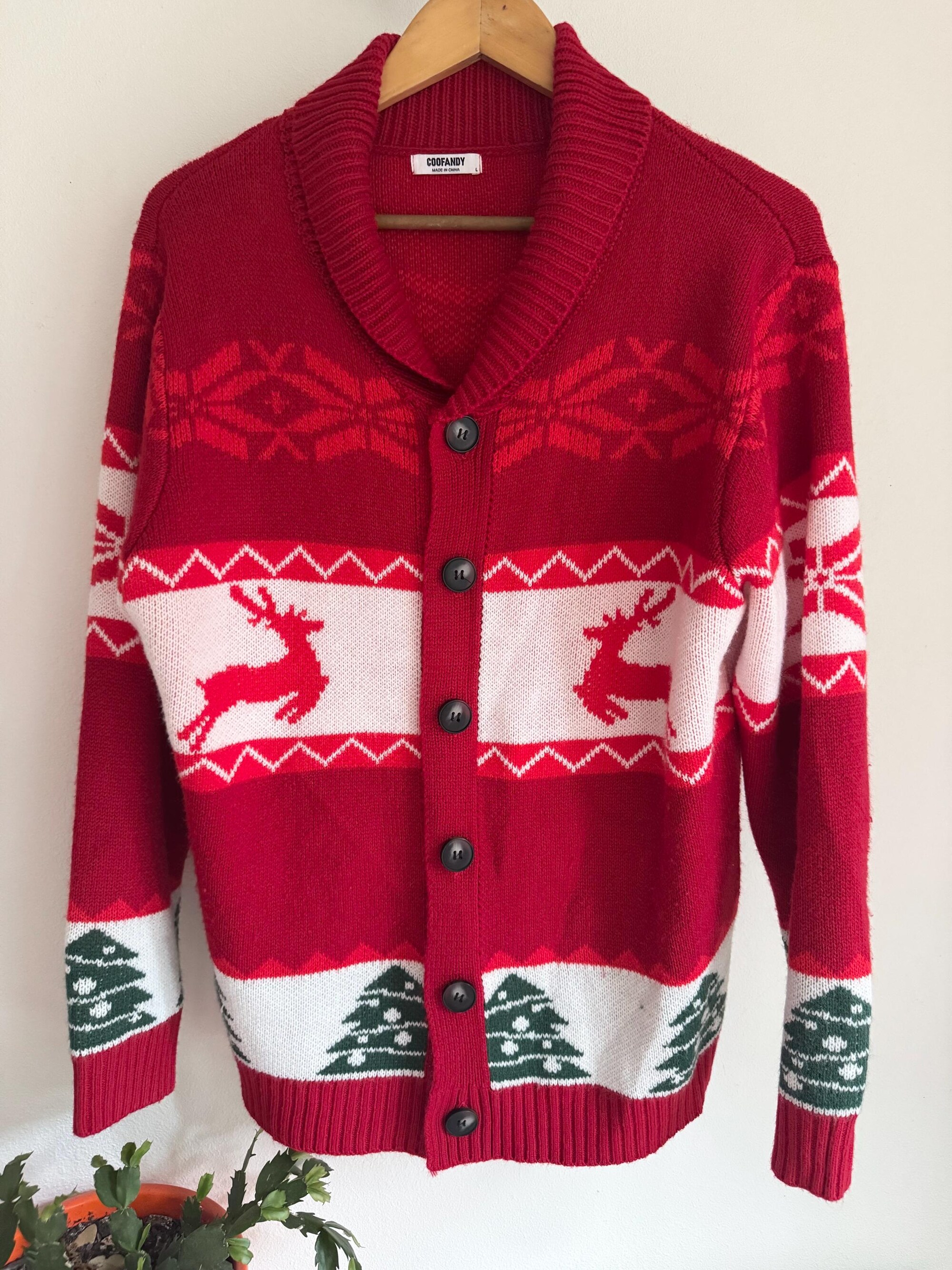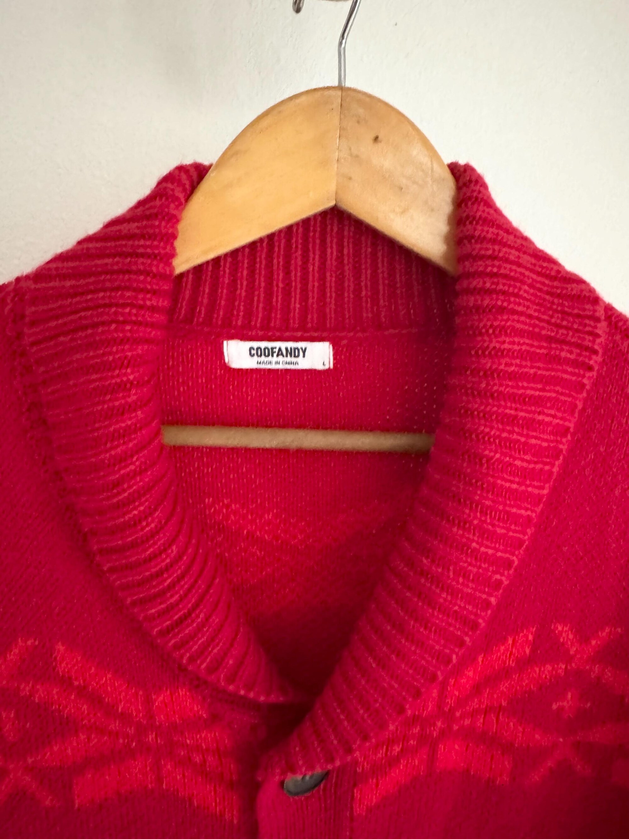 COOFANDY Men’s Cardigan Christmas Sweater Christmas V Neck Knitted Comfortable Warm Winter Men Cardigan Sweater Red L. Not vintage.