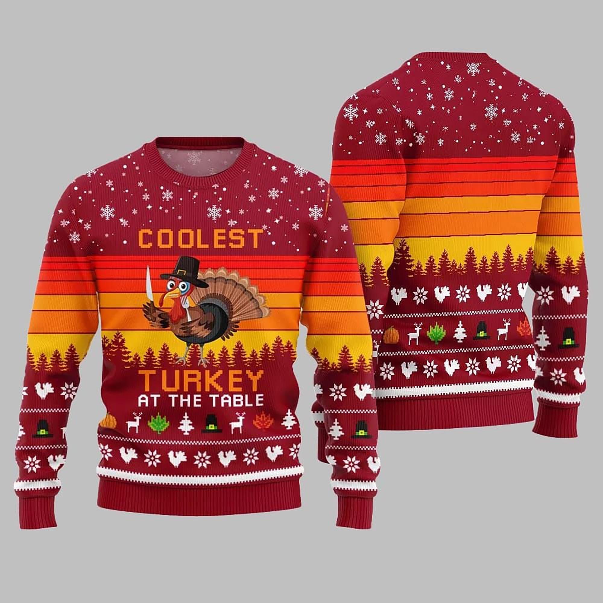 Coolest Turkey At The Table Ugly Christmas Sweater, Funny Thanksgiving Turkey Pullover, Holiday Party Outfit & Gift for Men and Women