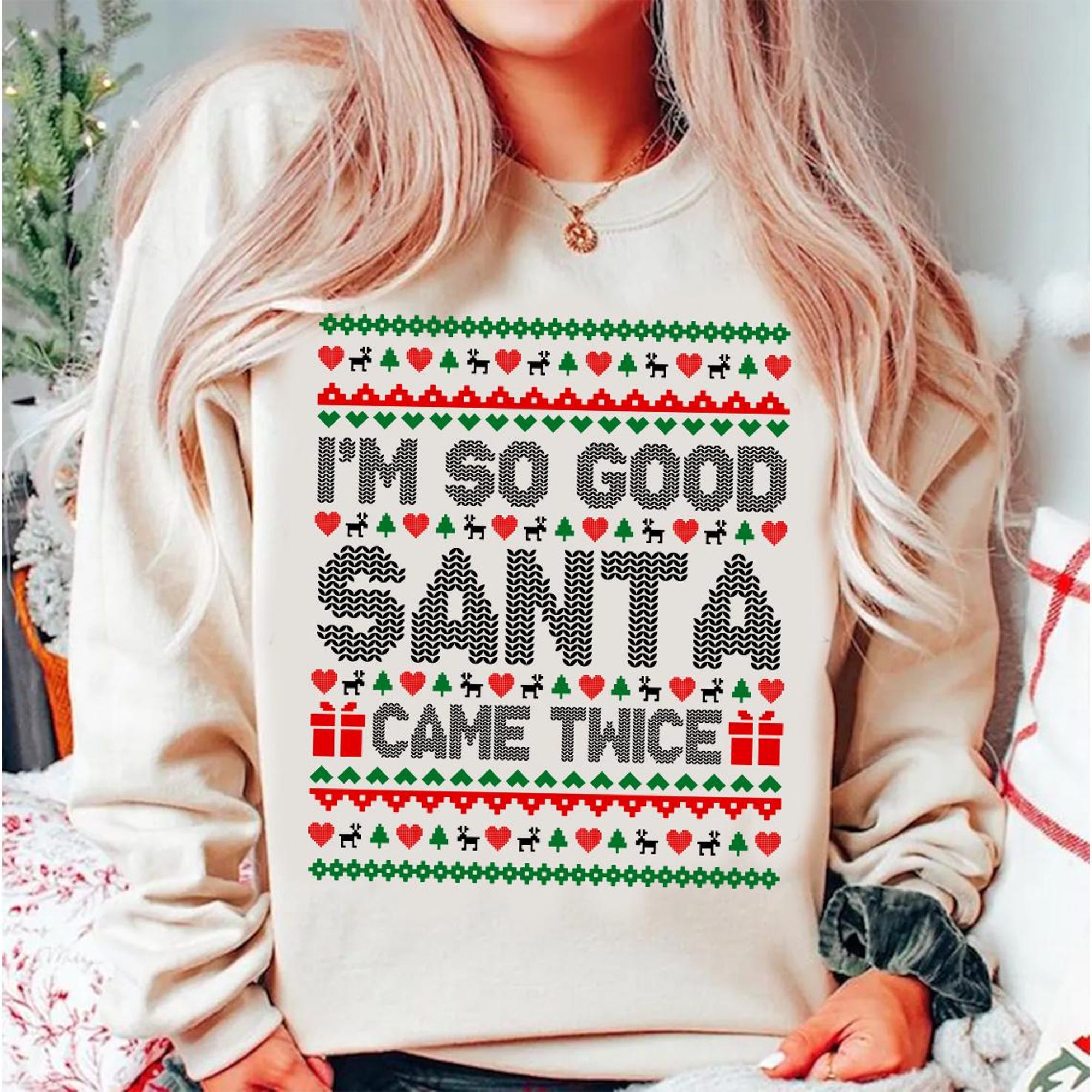 Couples Matching Ugly Christmas Sweater, I’m So Good Santa Came Twice Sweater, Ugly Sweater Party, Ugly Xmas Adult Humor Holiday Sweater