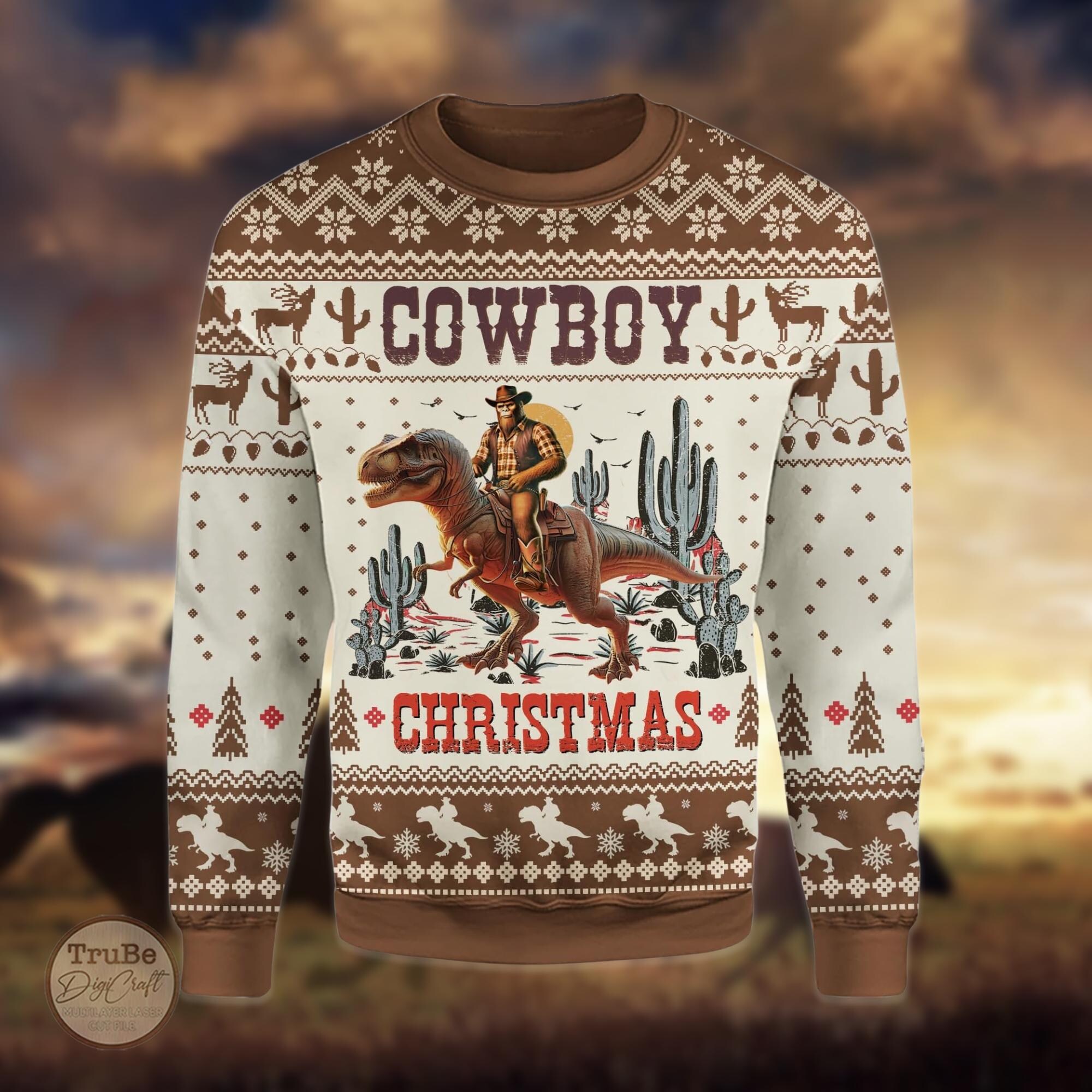 Cowboy Bigfoot Ugly Sweater, Funny Cowboy Christmas Sweater, Howdy Cowdy Sweater, Western Style Outfit, Cowboy Lovers Gift,Holiday Eve
