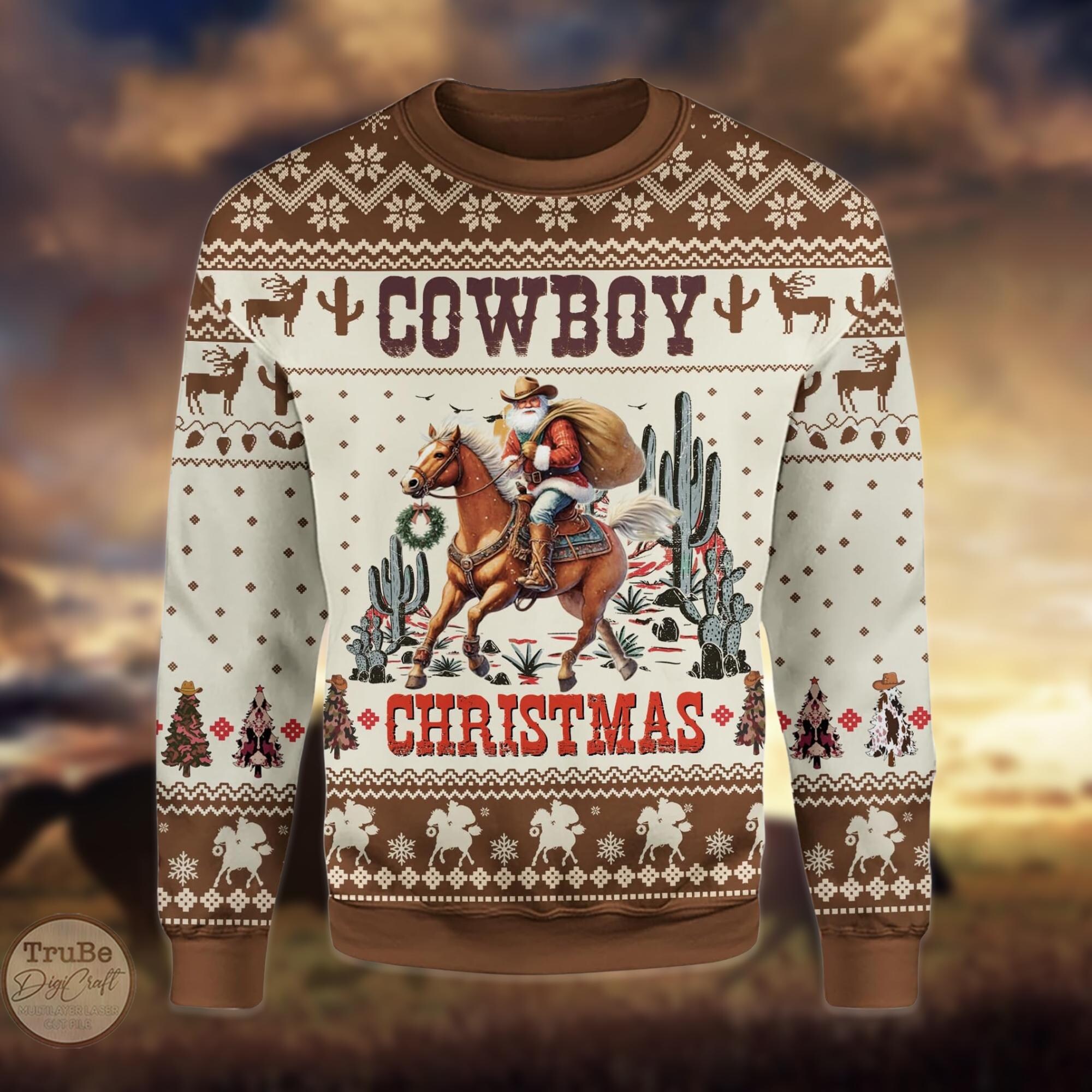 Cowboy Santa Ugly Sweater, Funny Cowboy Christmas Sweater, Howdy Cowdy Sweater, Western Style Outfit, Cowboy Lovers Gift,Holiday Eve Sweater