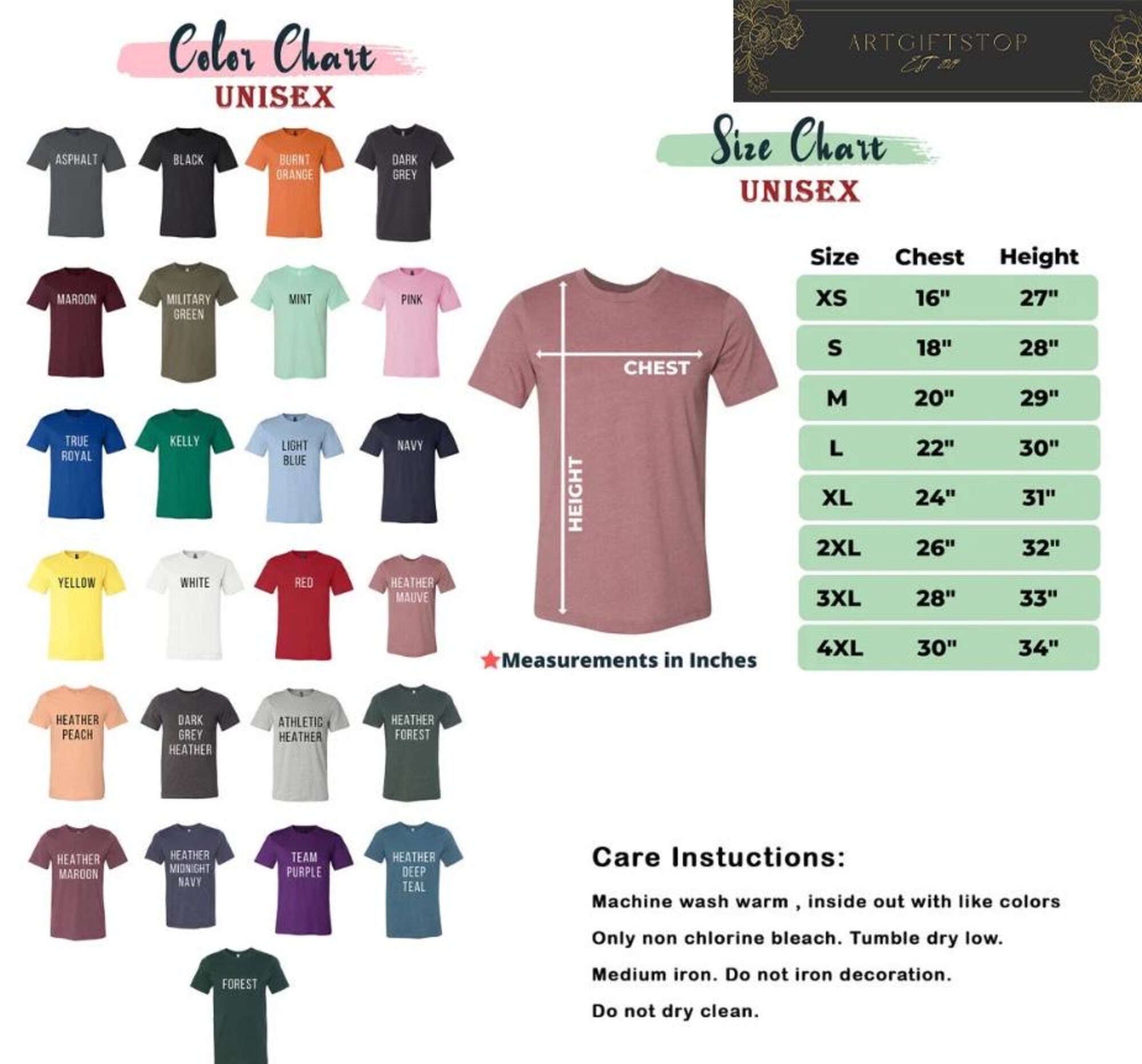--> Our shirts are made to order specially for you. Because of that reason we don’t accept returns or exchanges. Please check our color and size charts before you place your order. If you have any questions please send us a message to clarify sizing or colors.