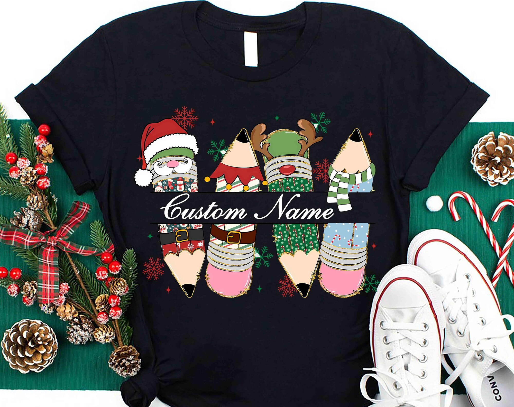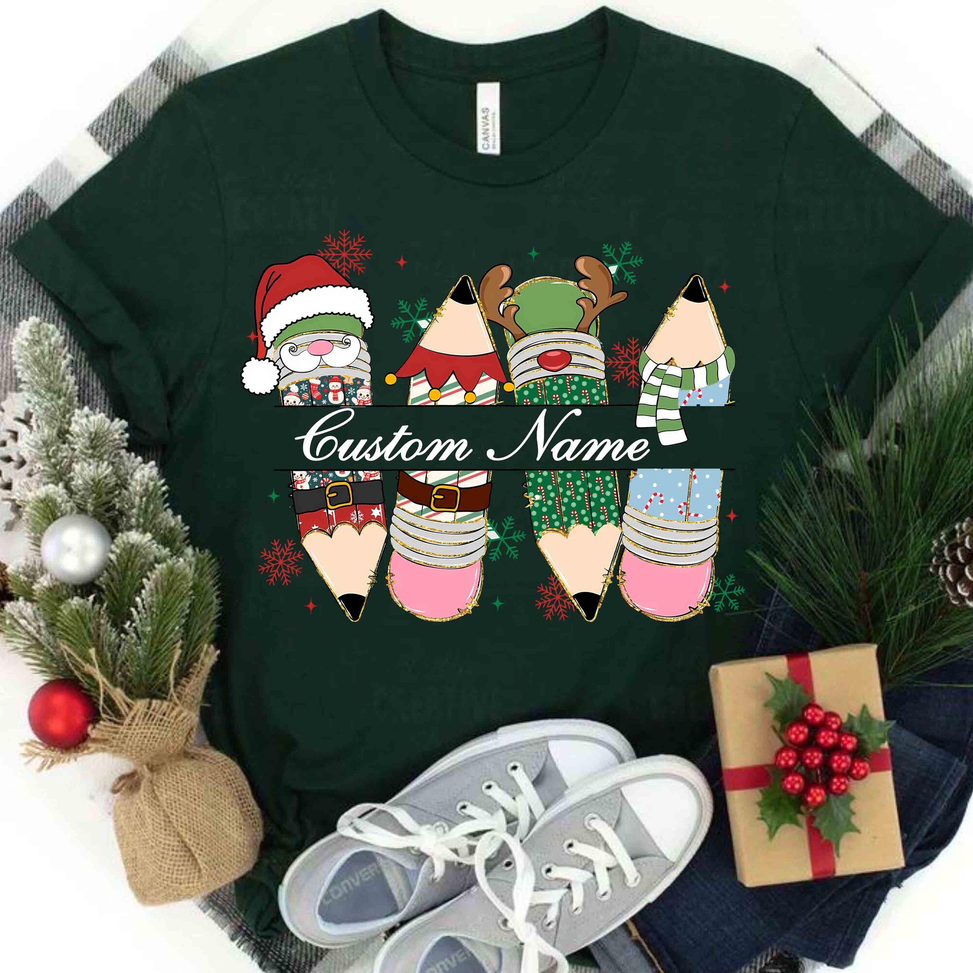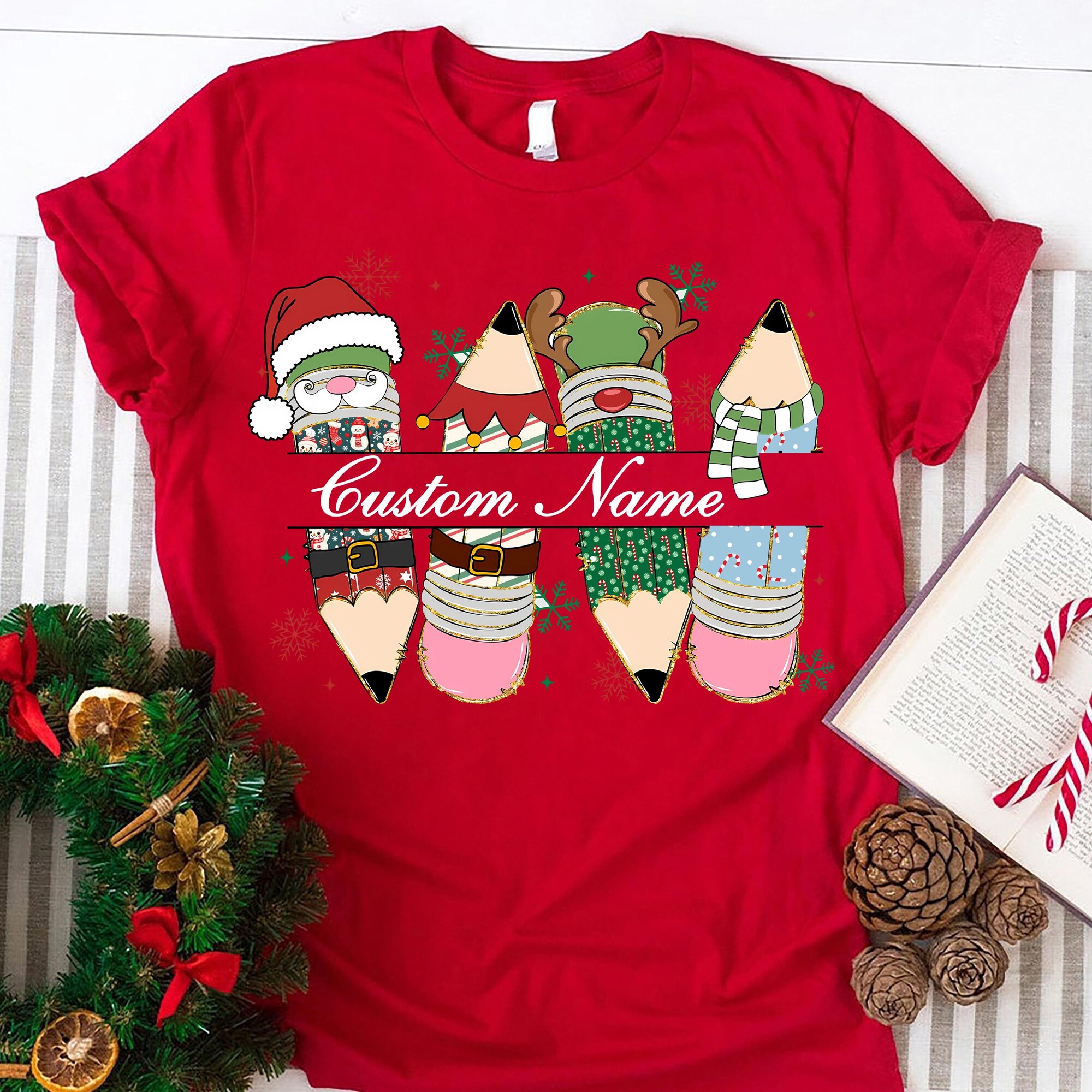 Custom Christmas Teacher Shirt, Christmas Gift For Teacher, Teaching Pencil, Teachers Day, Teachers Life Shirt, Teacher Bookish Christmas