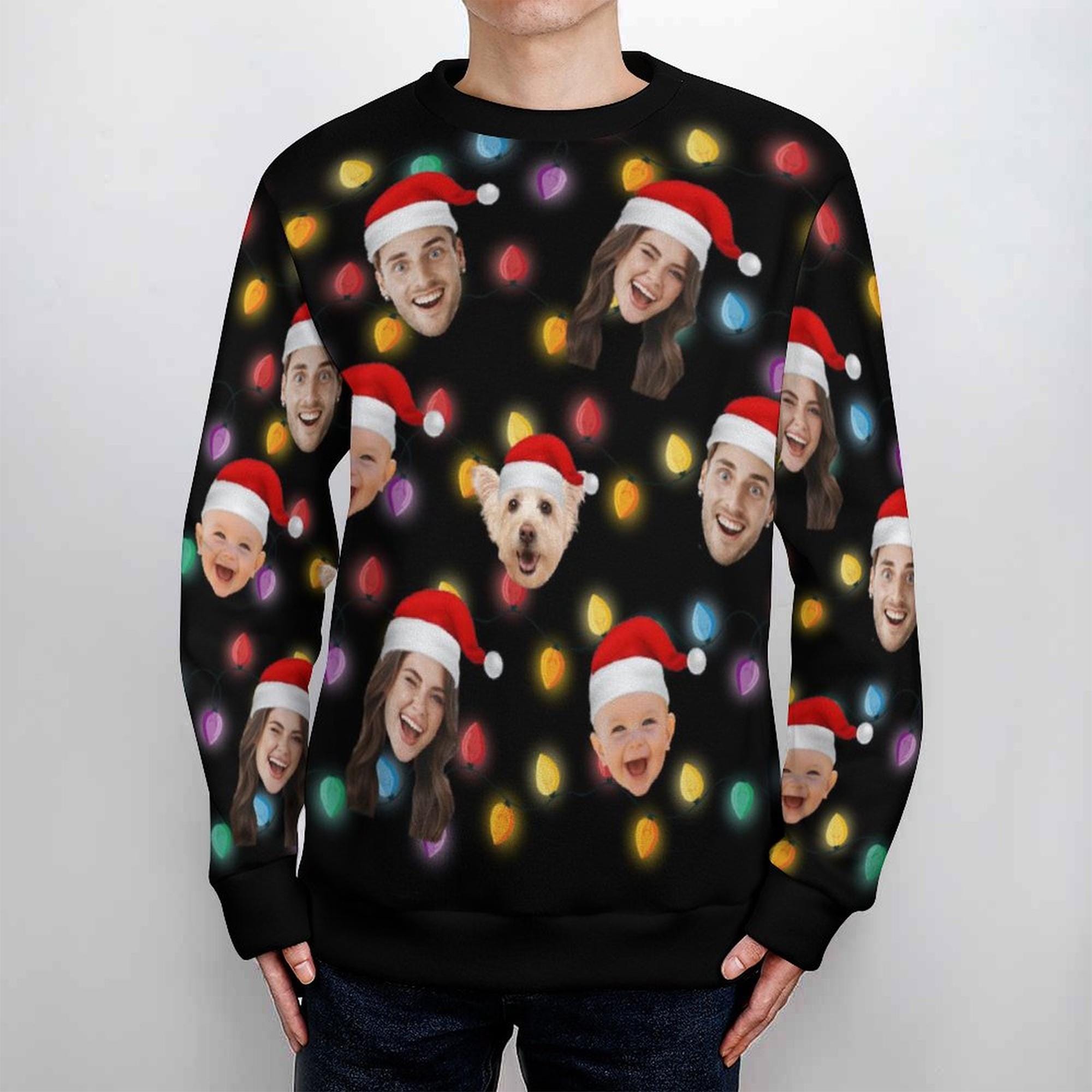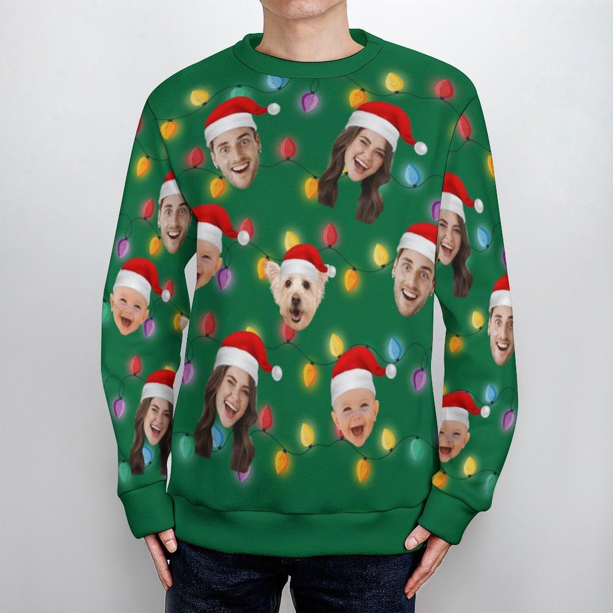 Custom Christmas Ugly Sweater,Personazlied Xmas Family Led Sweater,Custom Woman Man Photos Crewneck Sweater,Custom Fun Christmas Party Gifts