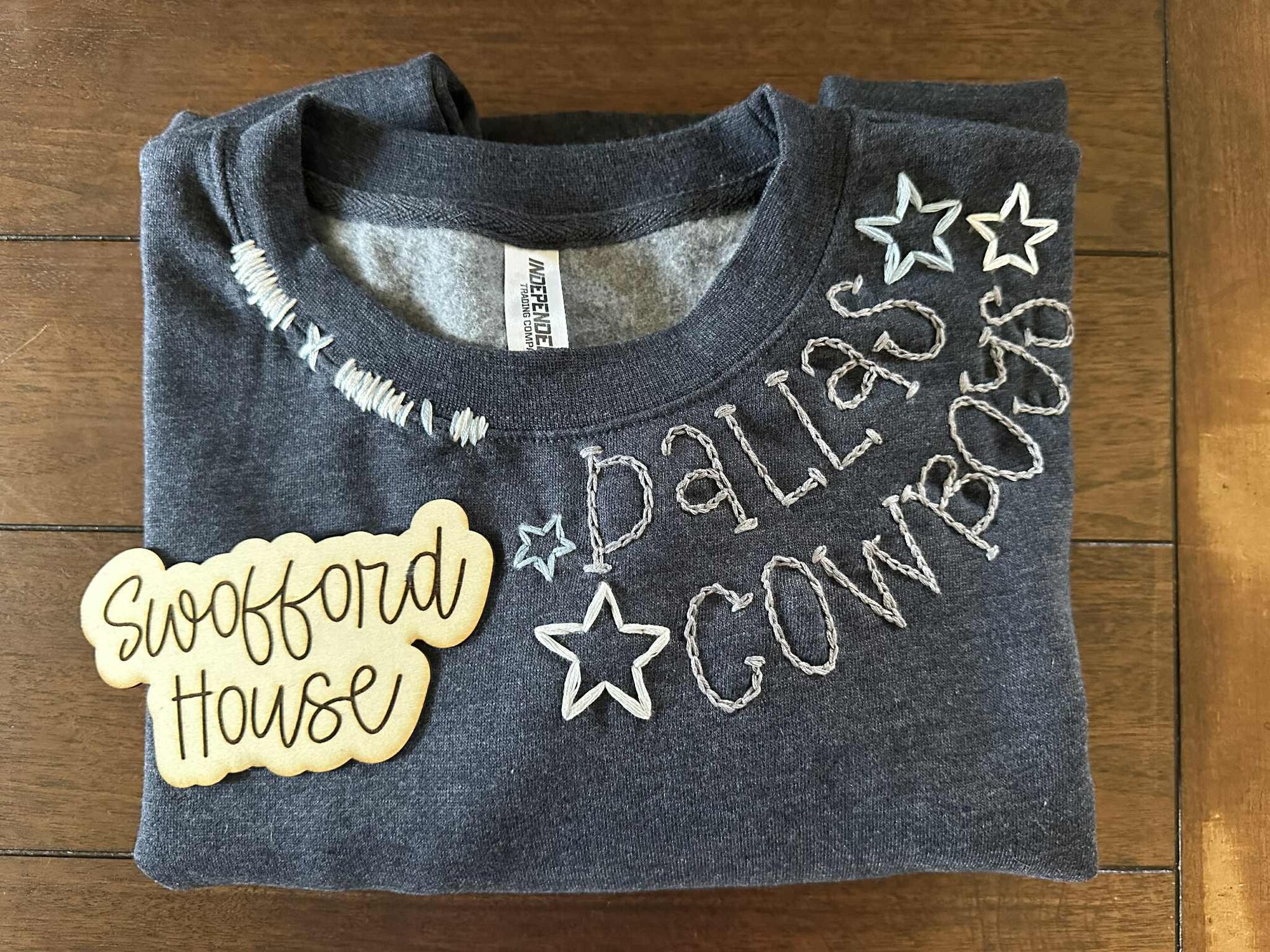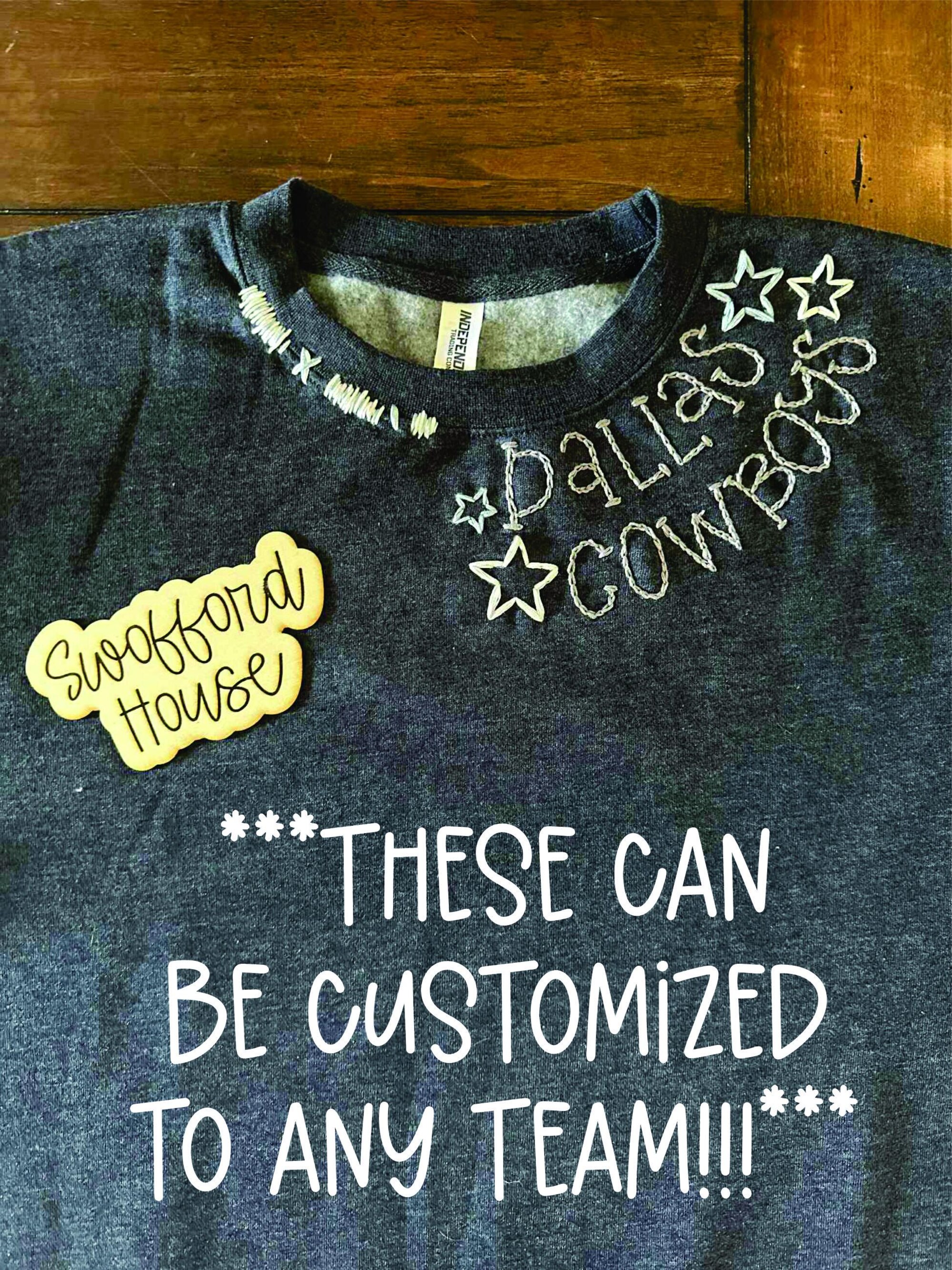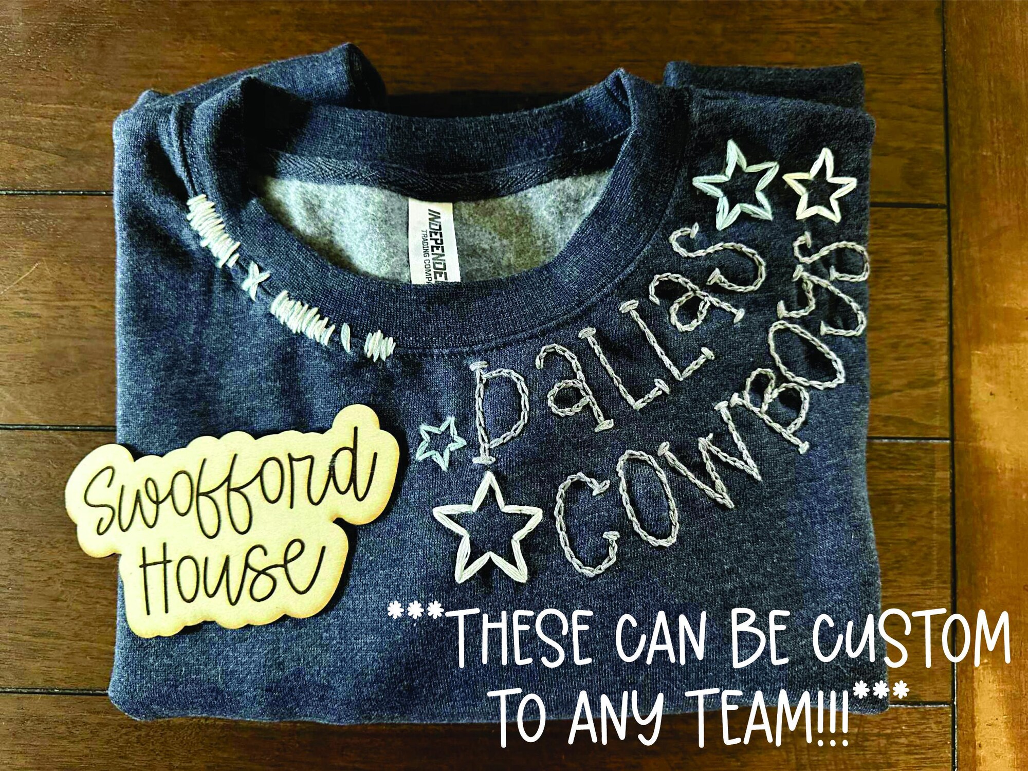 CUSTOM Dallas Cowboys Team Hand Embroidered Neckline Sweatshirt, College, Pro, Football, NFL Team Mascot Sweatshirt