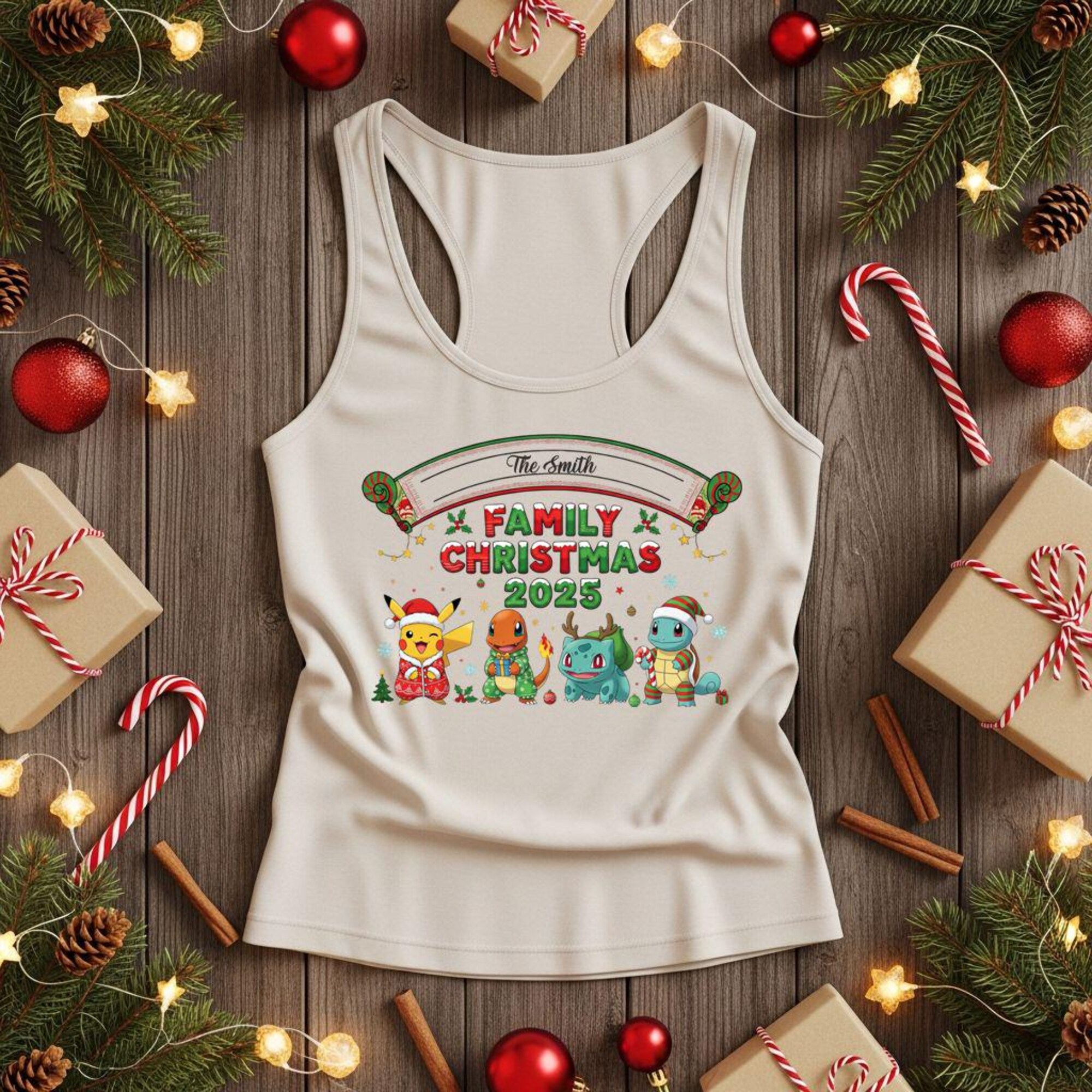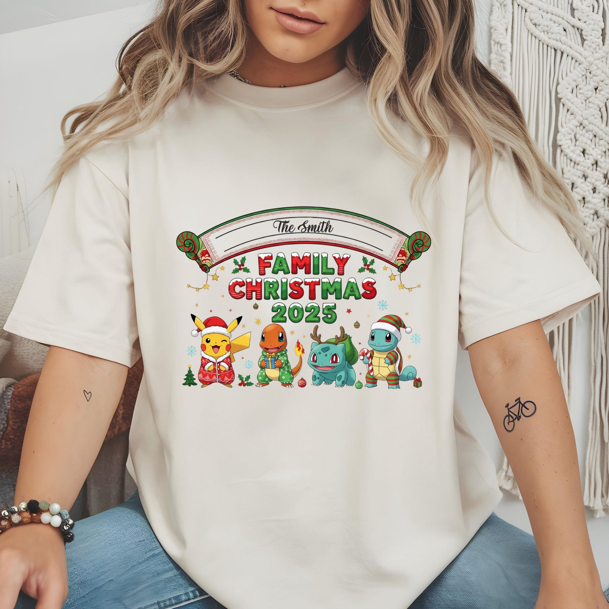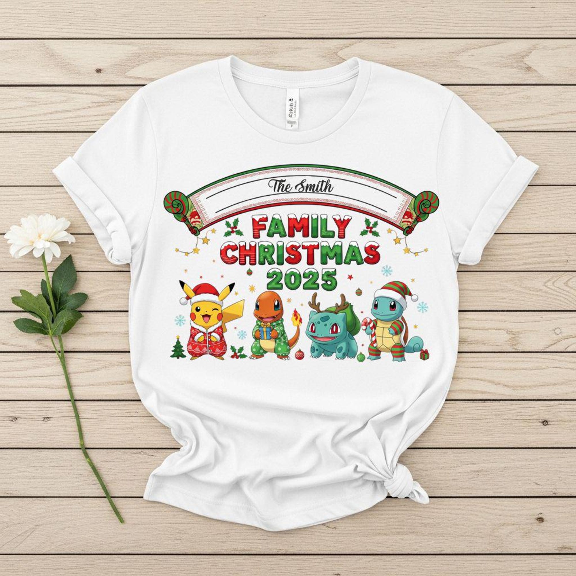 Custom Family Christmas Anime Characters Shirts, Matching Family Christmas Tshirts, Christmas Pajamas, Personalized Name Xmas Tees