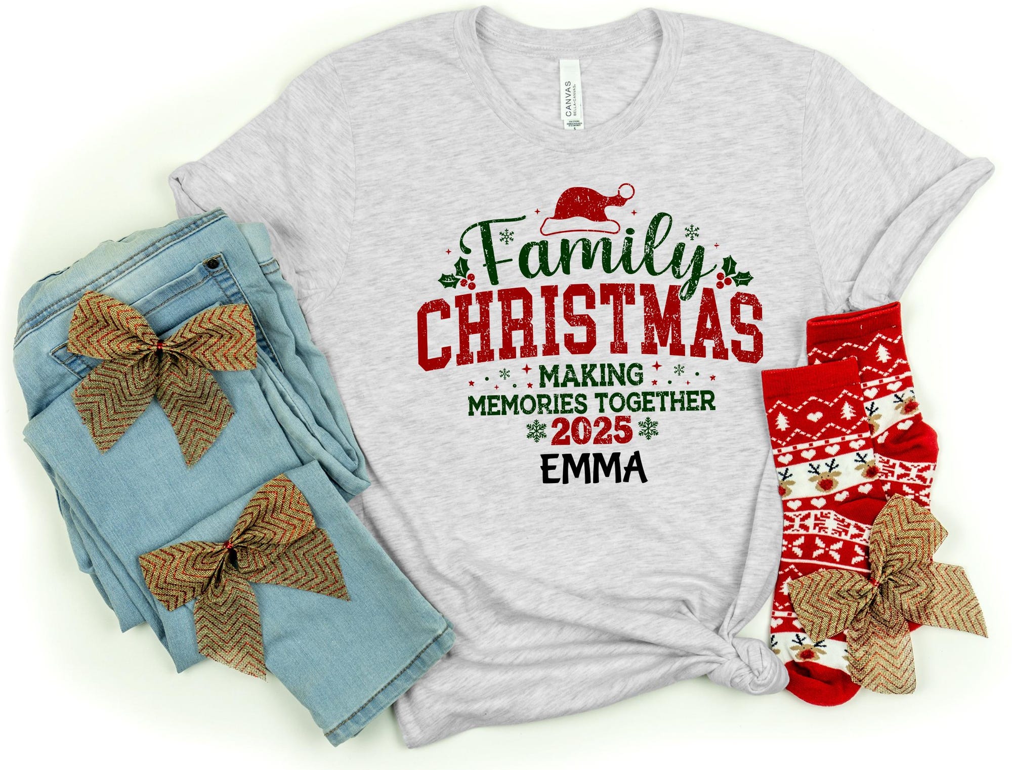 Custom Family Christmas Group T-Shirts: Holiday Familia Pajamas Tees, Family Crew 2025 Shirts