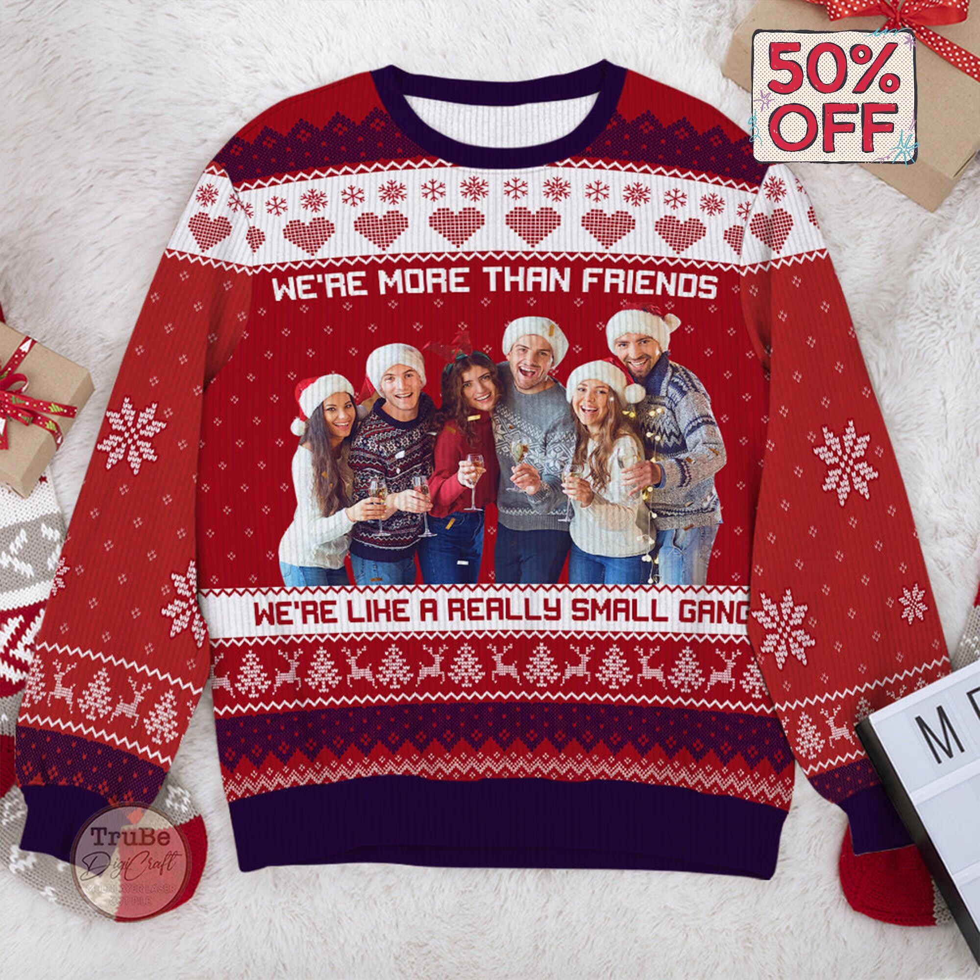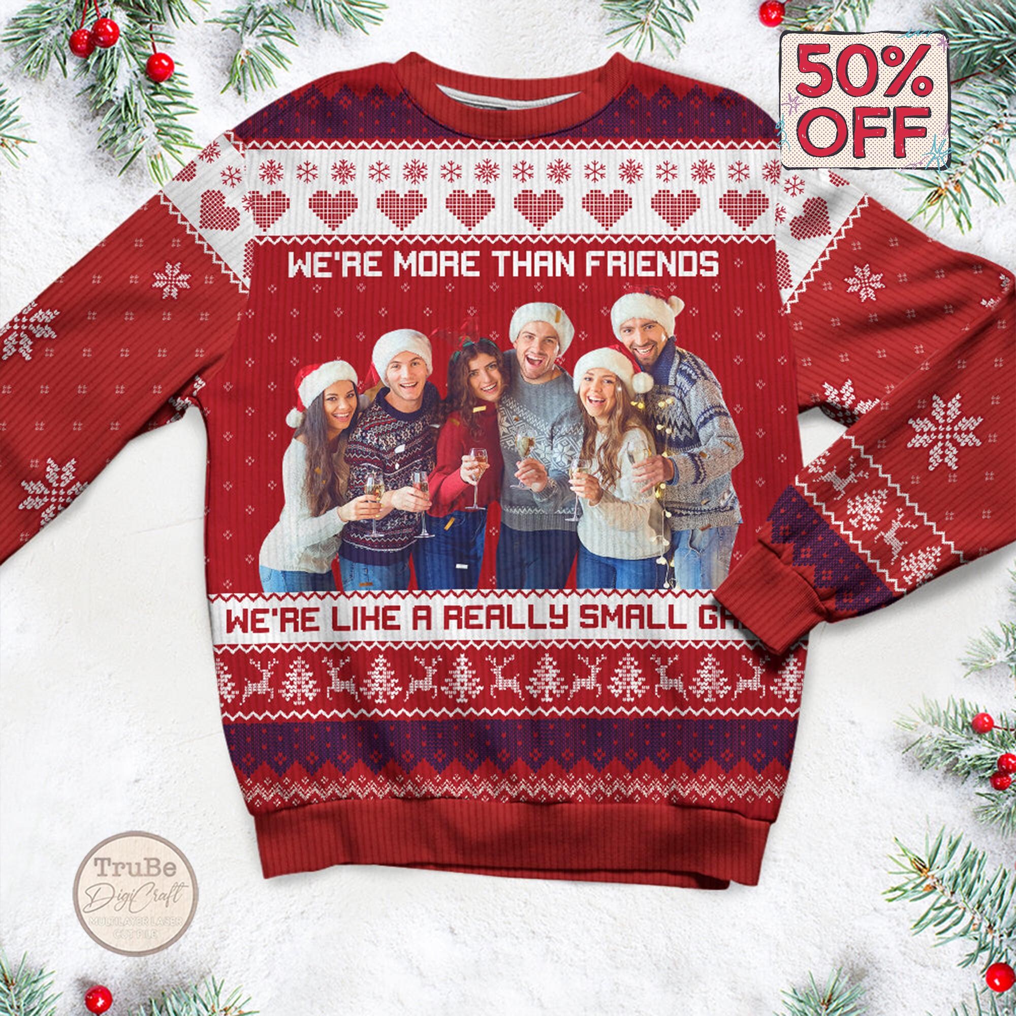 Custom Friends Photo Ugly Christmas Sweater, Personalized Image Christmas Sweater, Christmas Party Gift for Friends, Holiday Eve Outfit