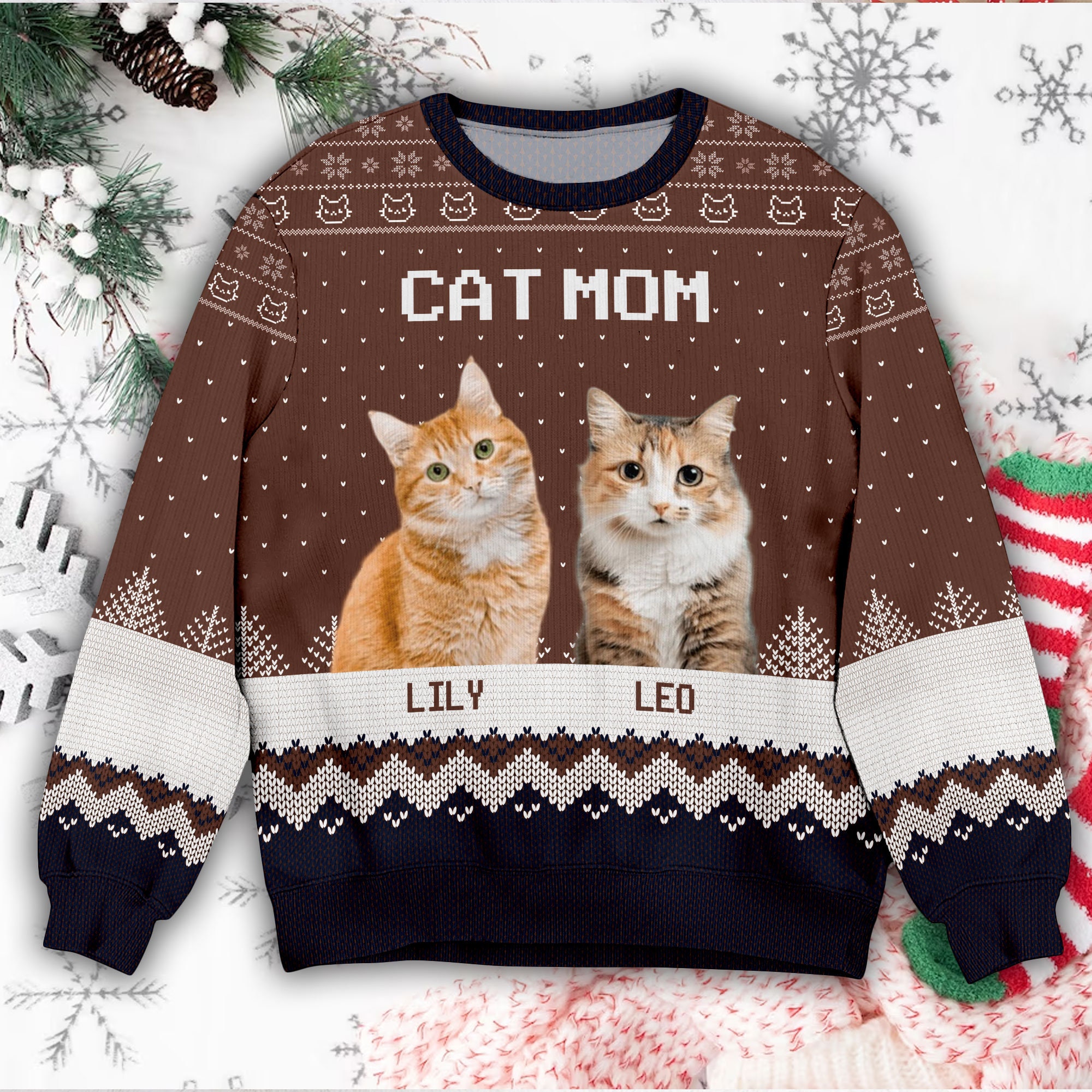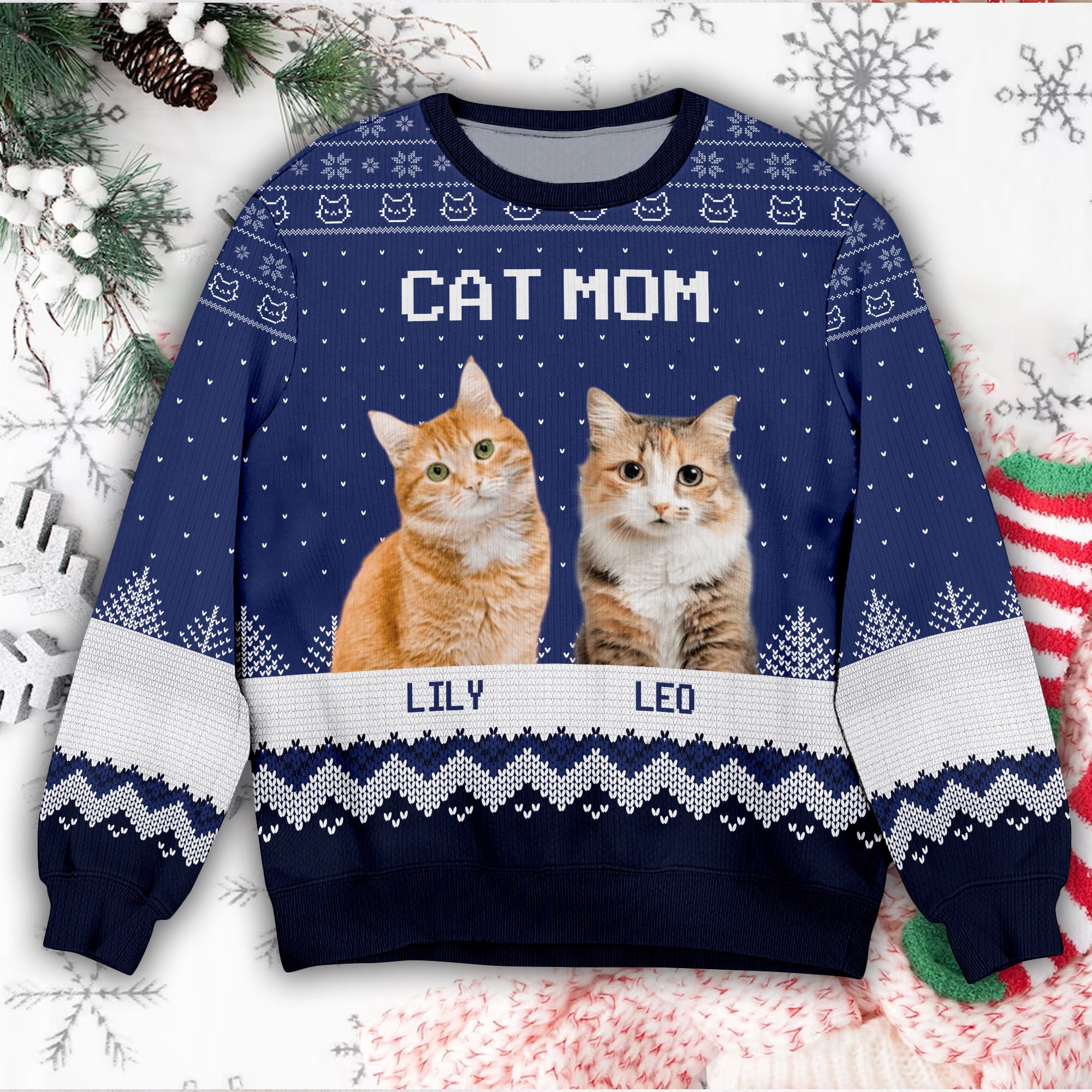 Custom Photo Christmas Ugly Sweater: Cat Mom, Cat Dad, Thanksgiving Gifts, Christmas Gift, Present For Cat Lovers