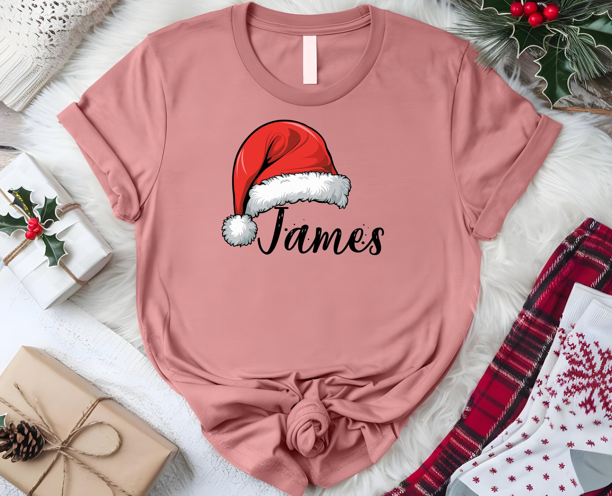 Custom Santa Hat Shirt, Christmas Family Matching Shirt, Personalized Name Christmas Family Shirts, Custom 2025 Christmas Family Shirt
