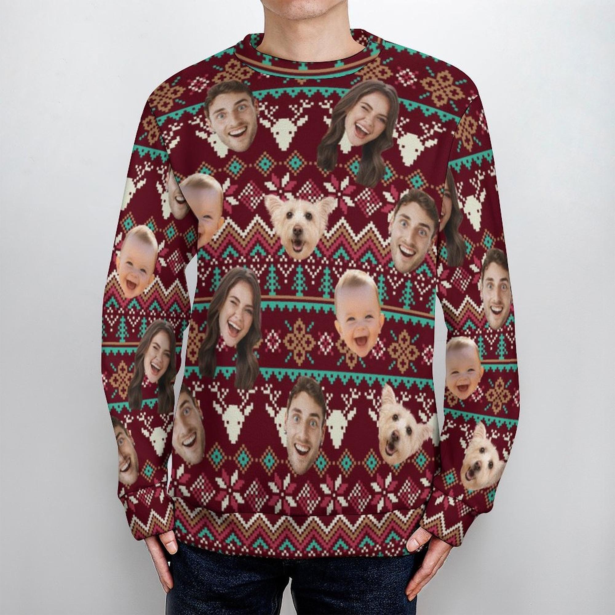 Custom Ugly Christmas Sweaters,Personazlied Christmas Jumper,Custom Xmas Family Photos Sweater,Custom Woman Man Funny Faces Christmas Jumper