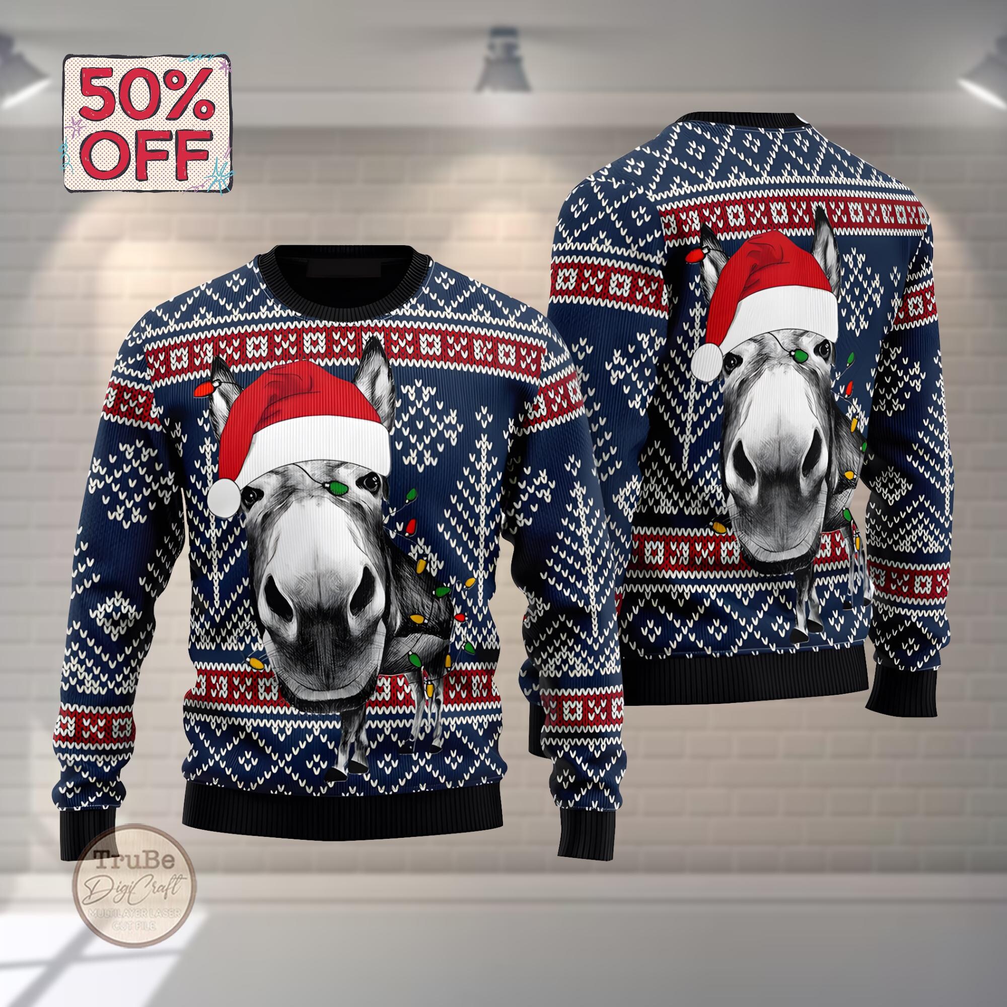 Cute Donkey Santa Hat Christmas Sweater, Funny Donkey Meme Ugly Sweater, Donkey Lovers Gift, Holiday Eve Gift, Donkey Xmas Sweater