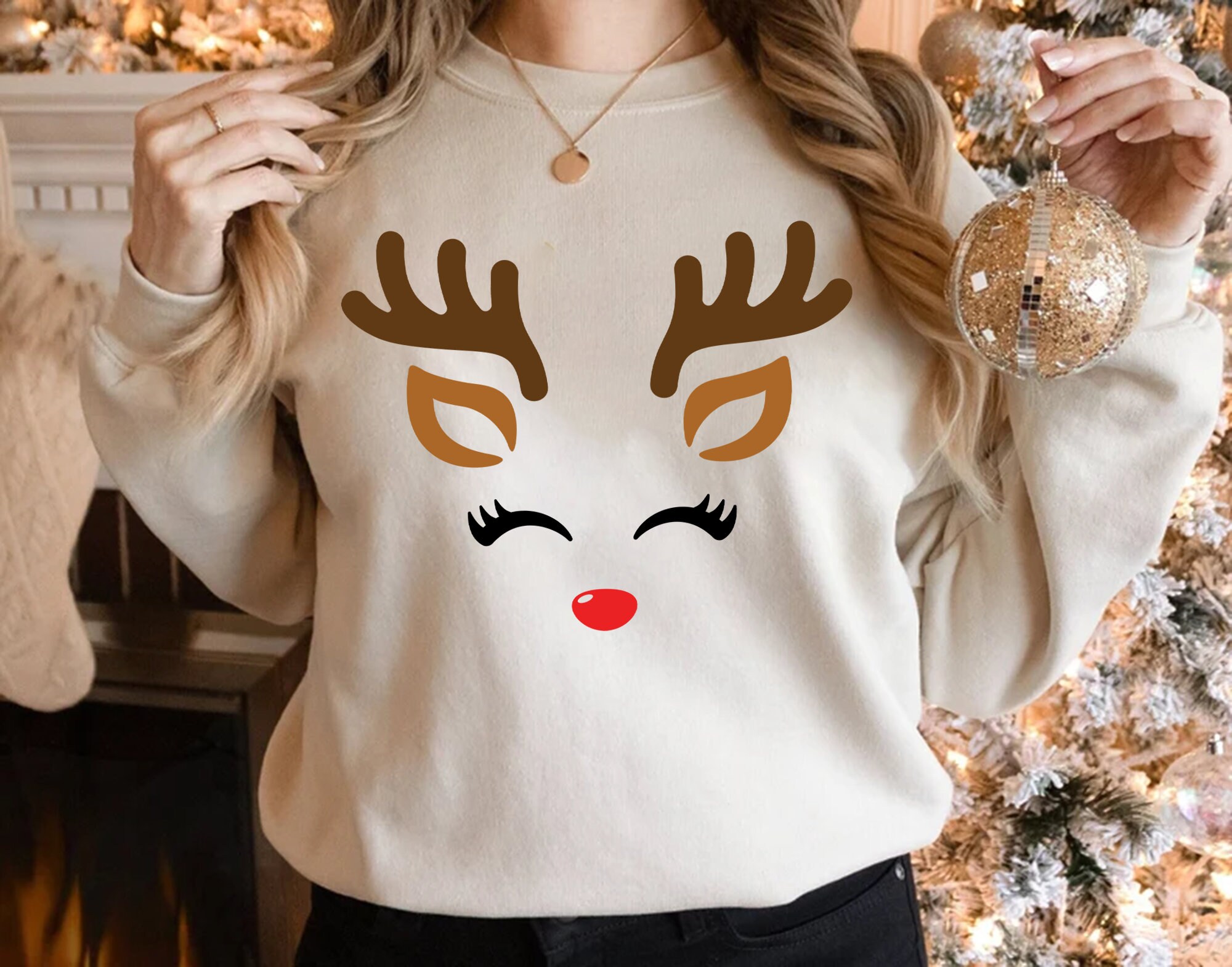 Cute Reindeer Winter Shirt, Christmas Family Matching Shirt, Christmas Group Shirts, Deer Face Shirt, Funny Christmas Shirts, Winter Women