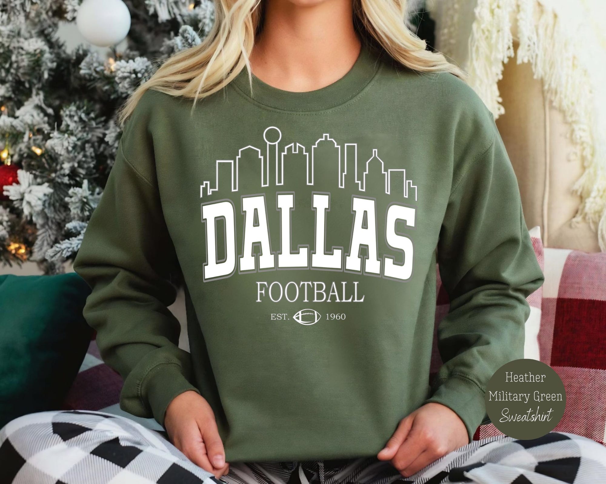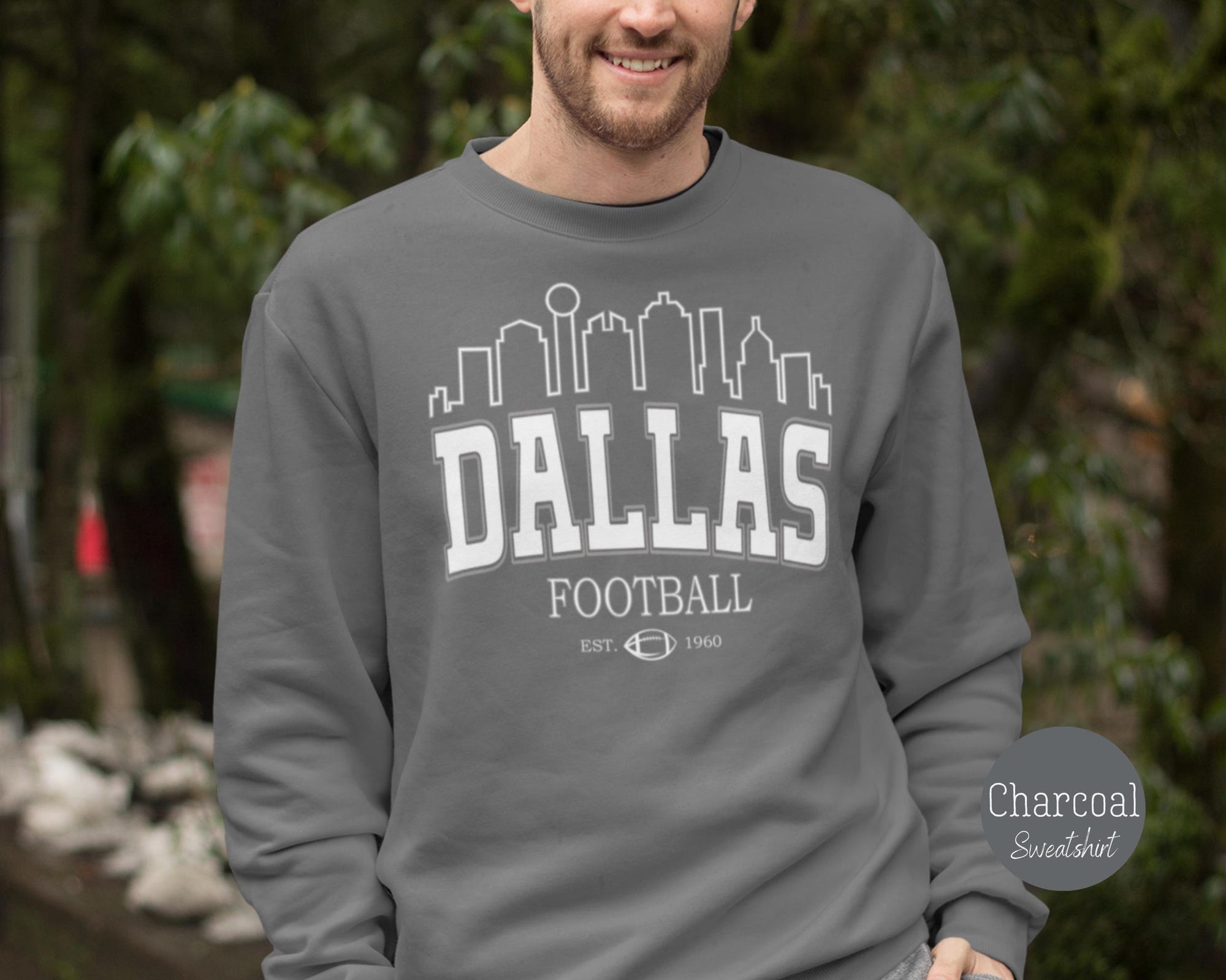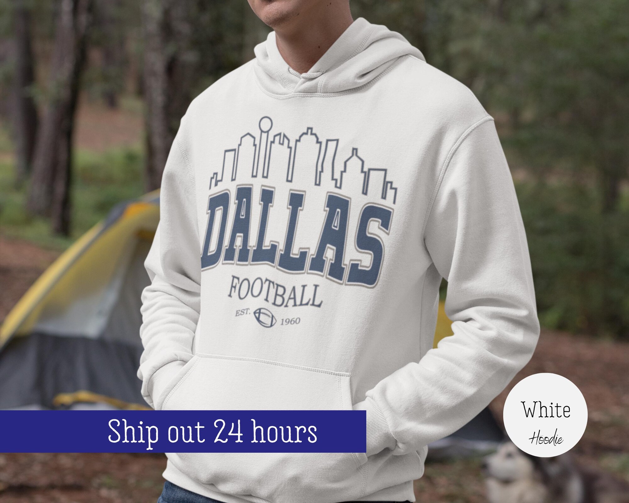 Dallas Skyline Football Hoodie, Dallas Game Day Sweatshirt, Trendy Dallas Football Fan Gift, Vintage Retro 80s Style, Dallas Football Shirt