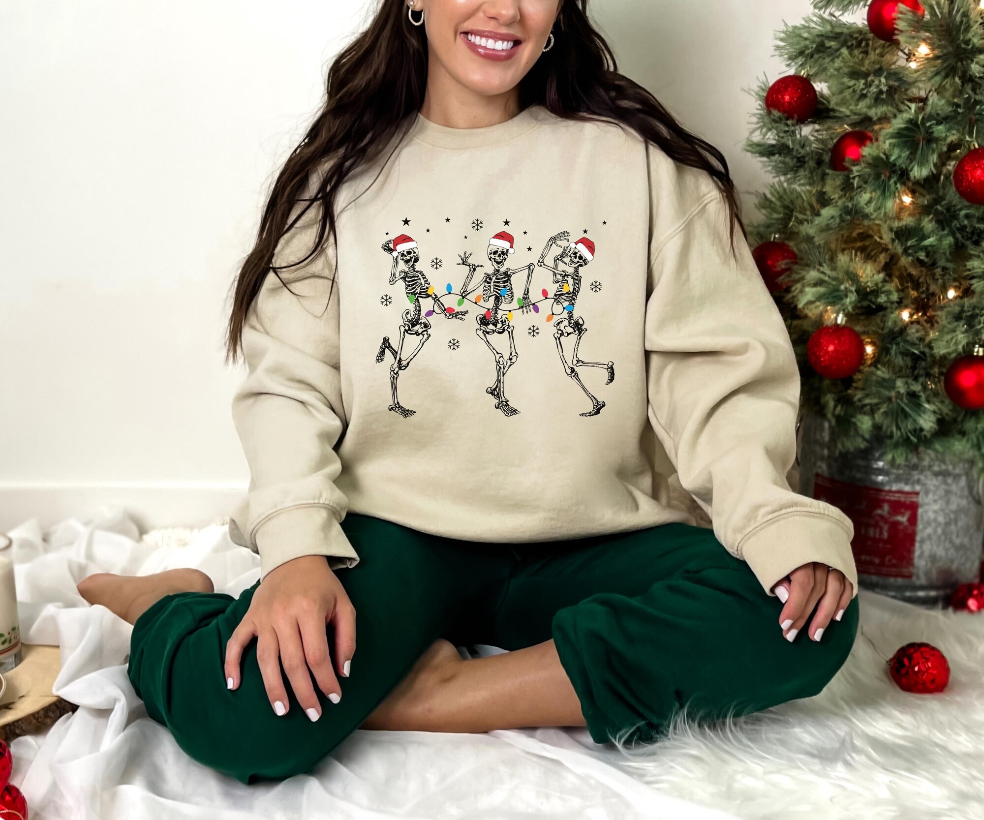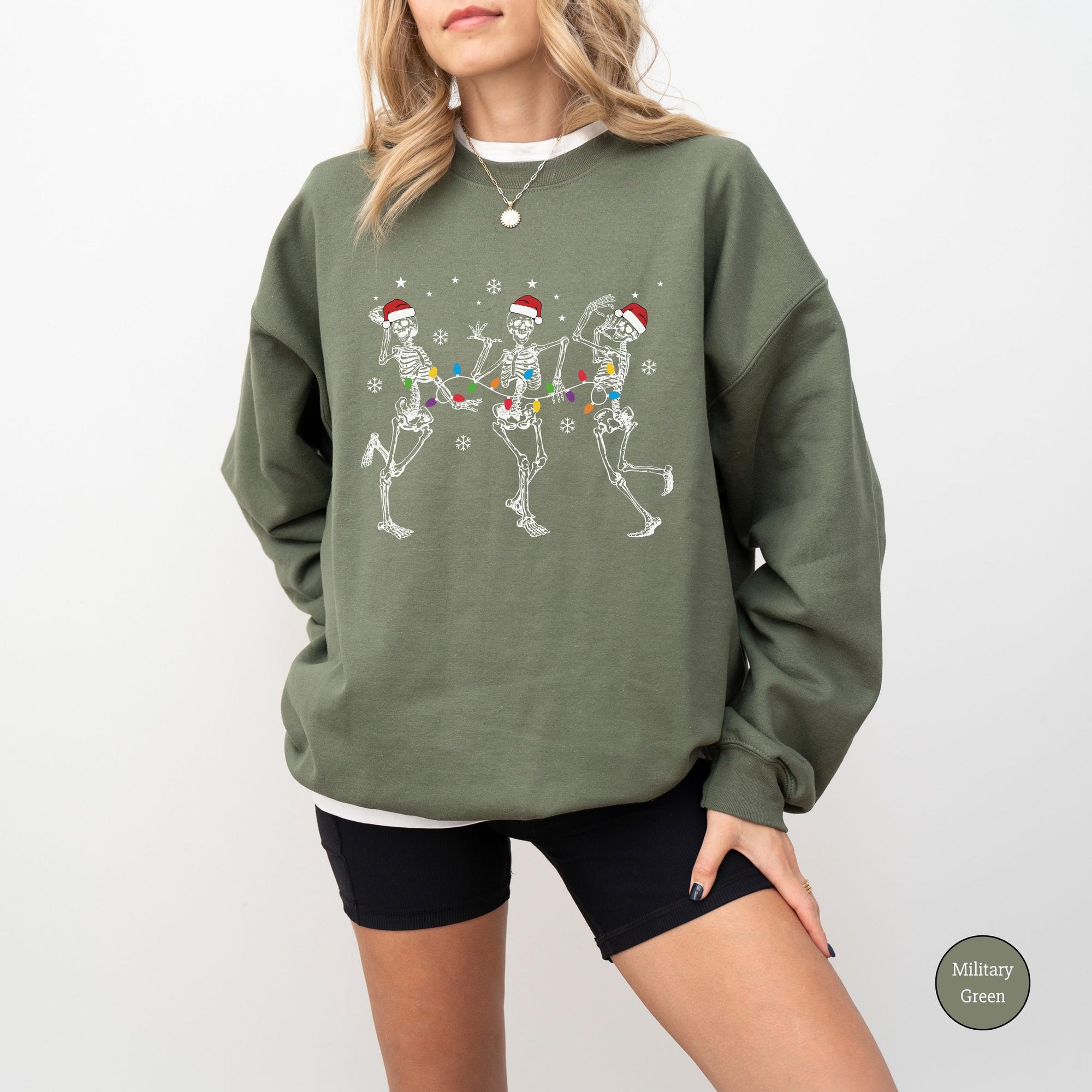 Dancing Skeleton Christmas Sweatshirt, Funny Christmas Sweatshirt, Christmast Lights Shirt, New Year Sweatshirt, Funny Holiday Shirts