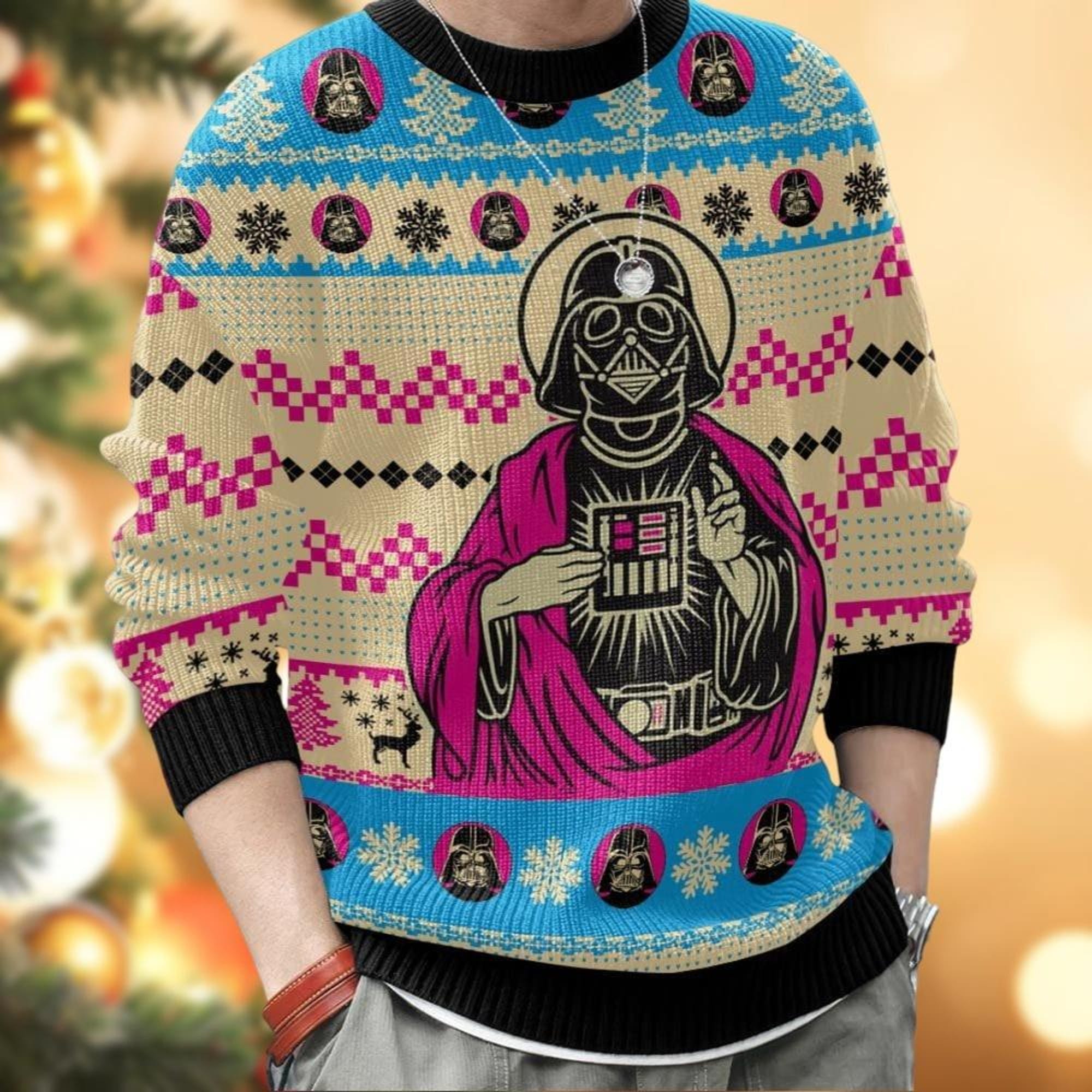 Darth Vader Jesus Christmas Ugly Sweater, Star Wars Characters Sweater, Disney Movie Xmas Sweater, Holiday Sweater For Women Men Kid
