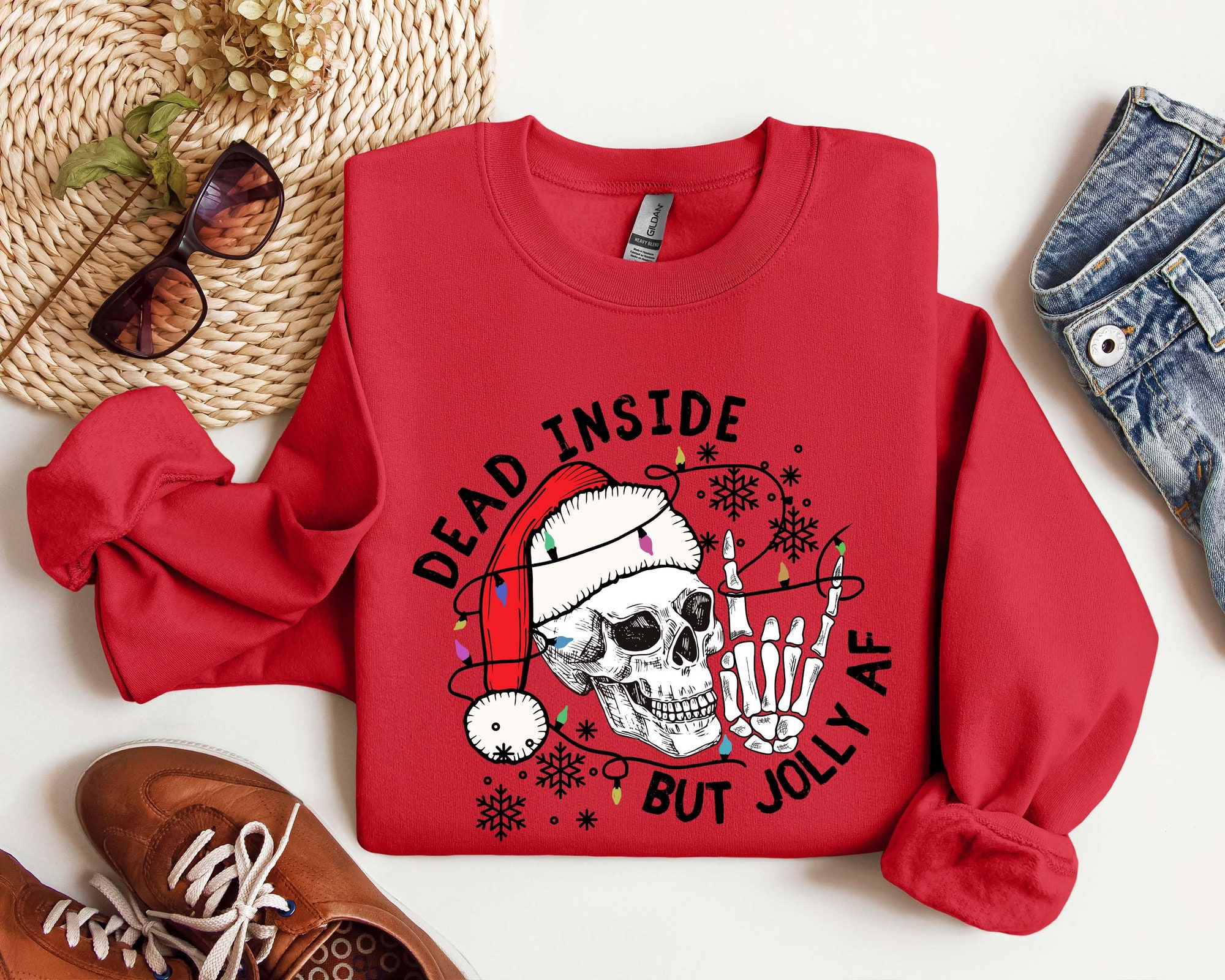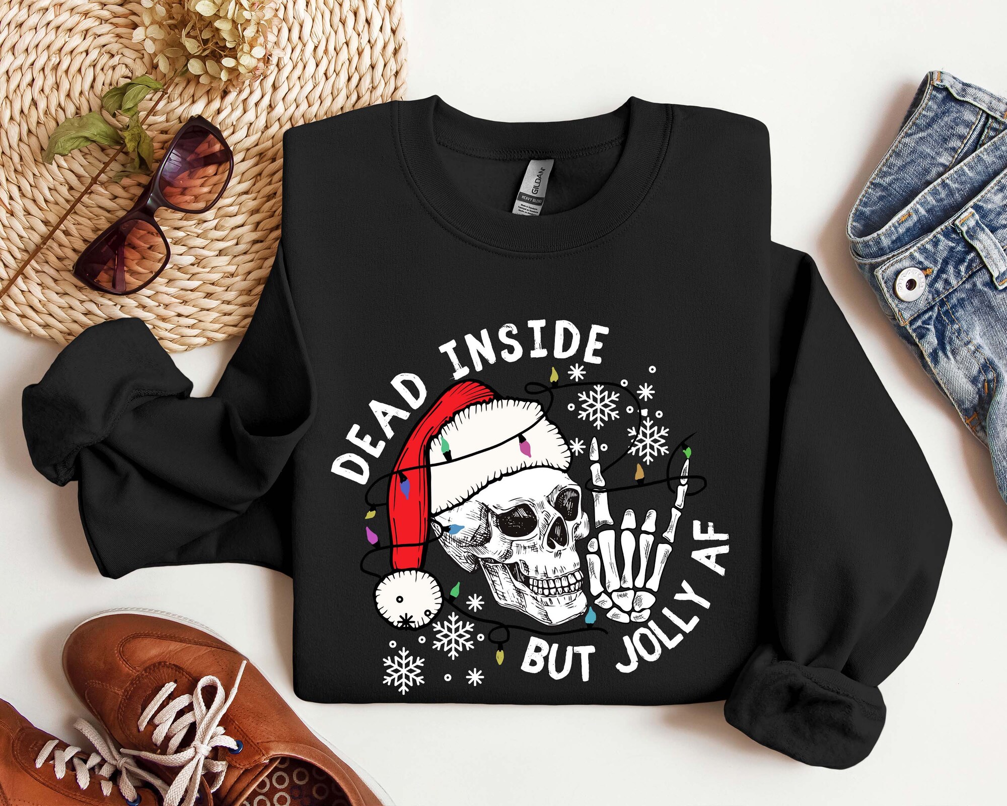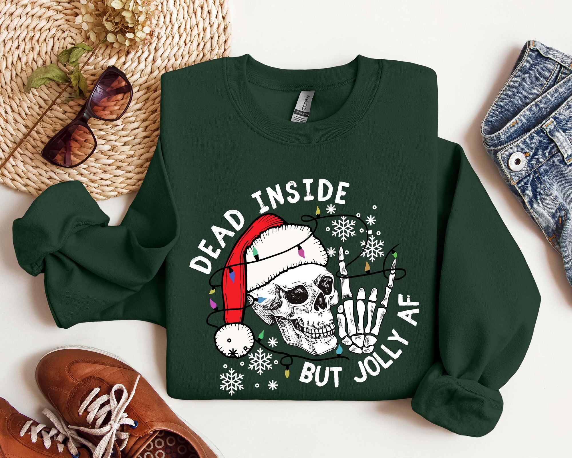 Dead Inside But Jolly AF Sweatshirt,Christmas Skeleton Shirt,Christmas Gift,Dead Inside Skeleton,Funny Christmas Tees,Christmas Holly Spirit