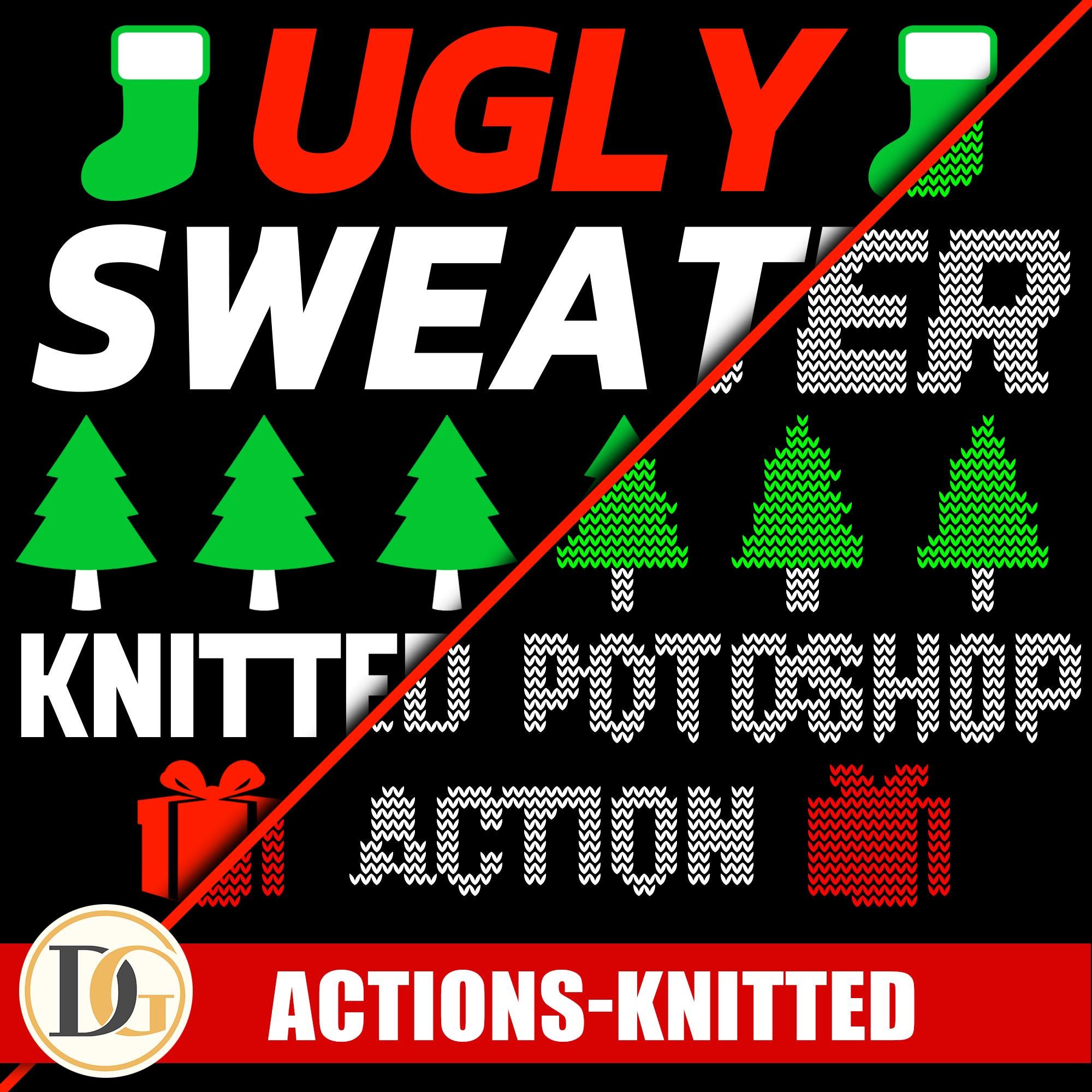 Design sweater, wool pattern with Photoshop Action, Ugly Christmas Sweater Photoshop Action. Christmas Ugly Sweater Knitted Photoshop Action