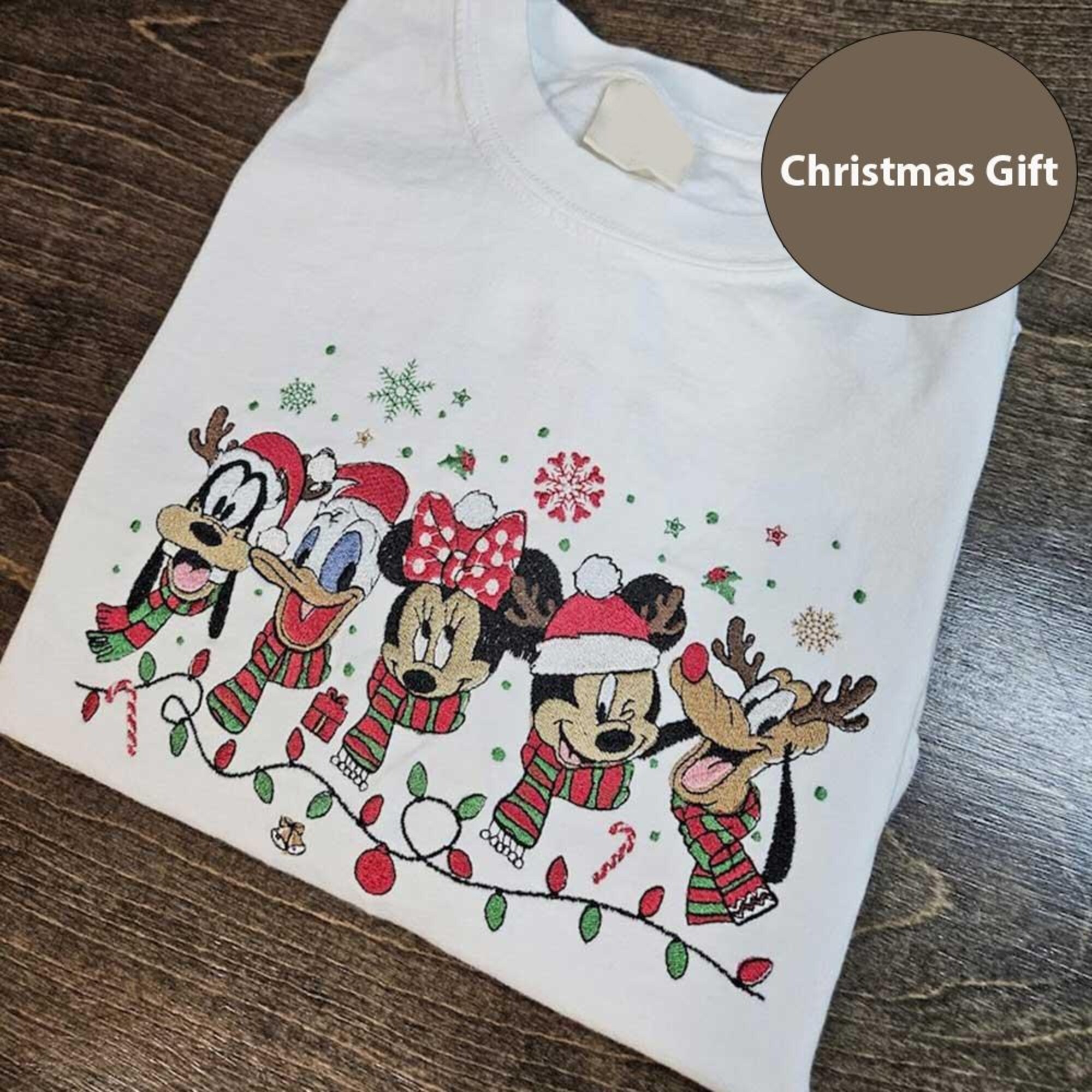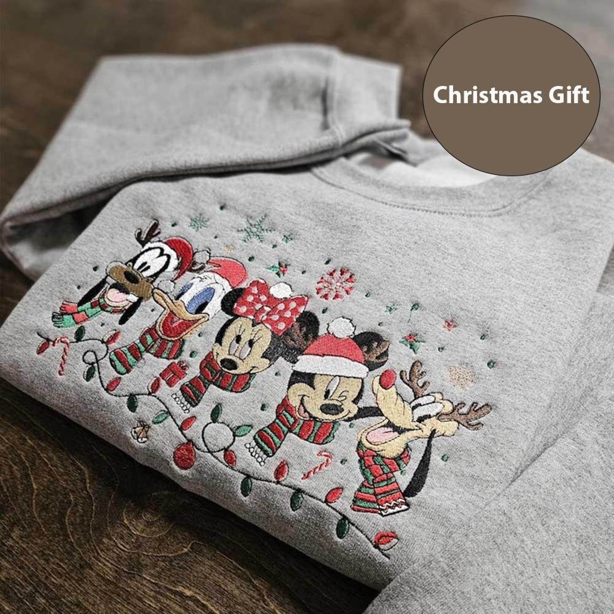 Disney Mickey And Friends Christmas Embroidered Sweatshirt, Mickey Minnie Donald Daisy Goofy Pluto Shirt, Embroidery Hoodie, Xmas Gift